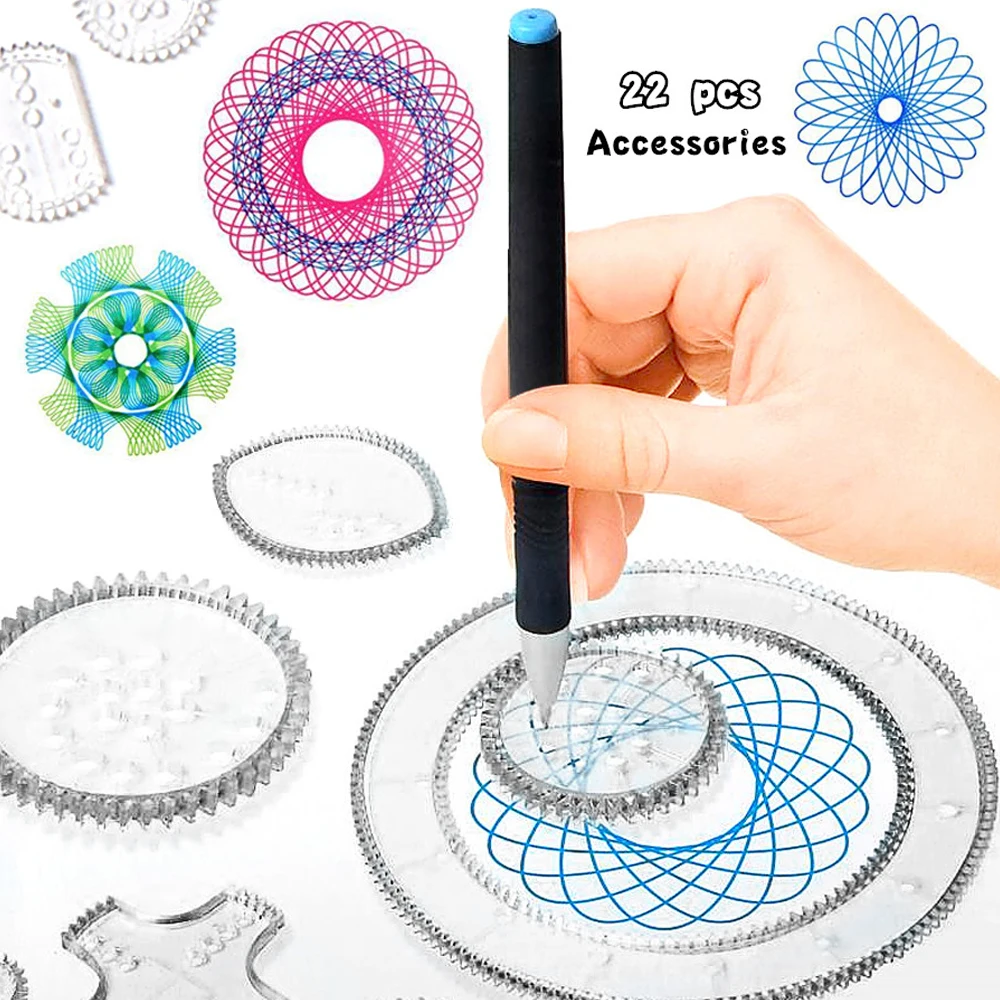22pcs Spirograph Drawing Toys Set Interlocking Gears & Wheels Geometric Ruler Drawing Accessories Creative Educational Kids Toy