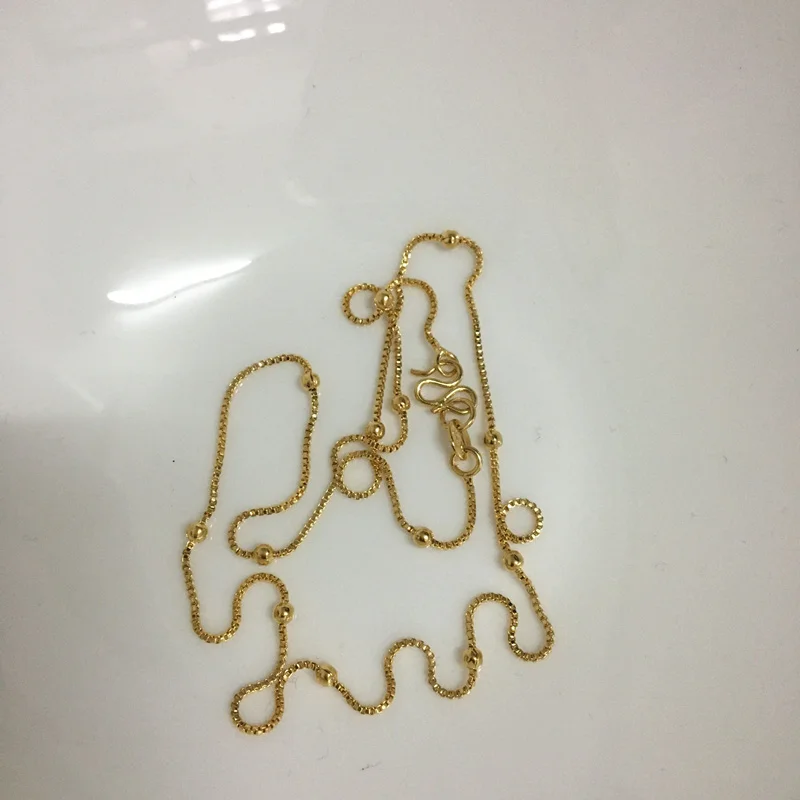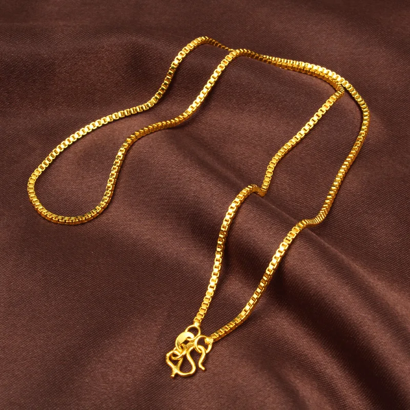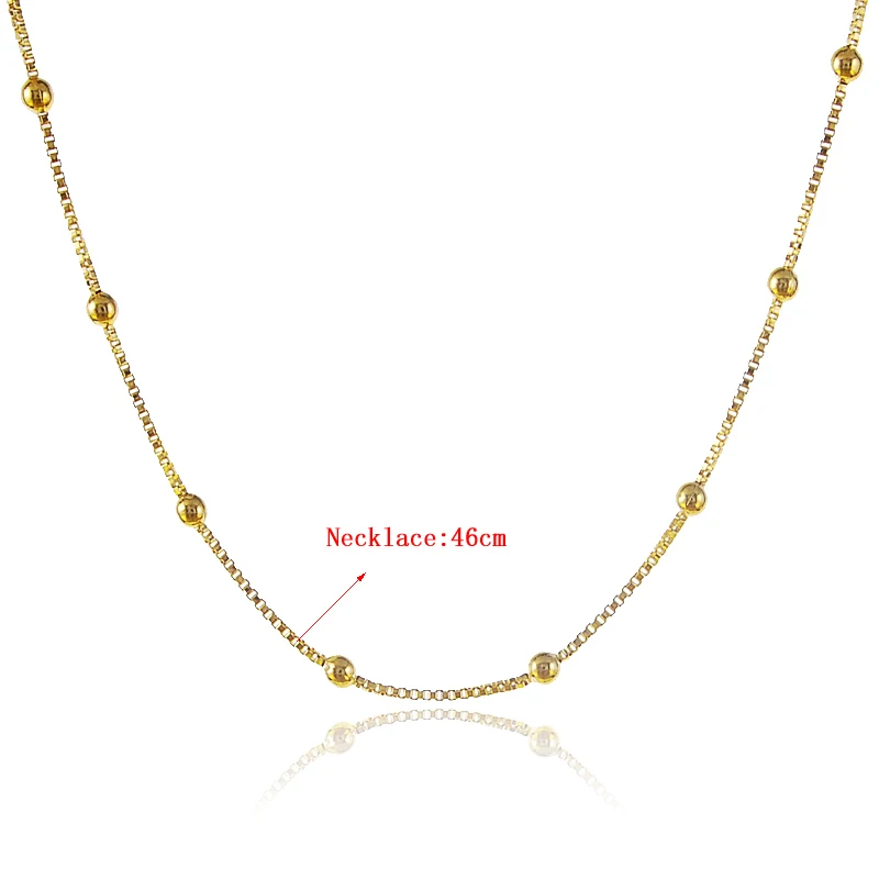 24K Gold Color Necklace For Women 2MM Beads Box Chain 18inch Neckalce Fashion Jewelry For Wedding Engagemenet Gift Easy Hook