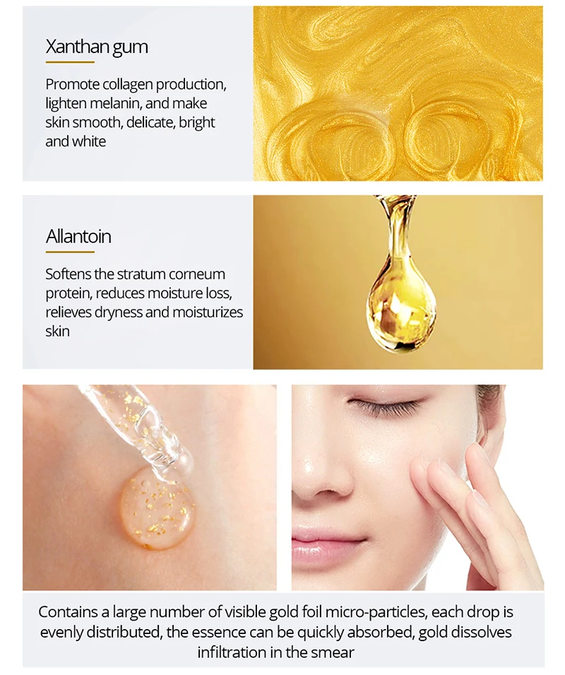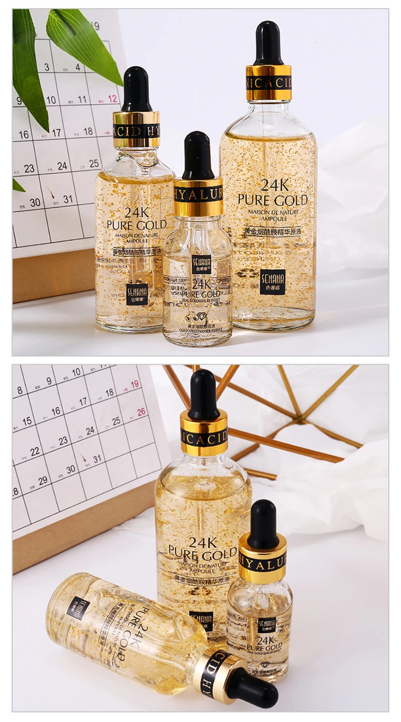24K Gold Hyaluronic Acid Nicotinamide Face Serum Replenishment Moisturize Shrink Pore Brighten Skin Care Firming Facial Essence
