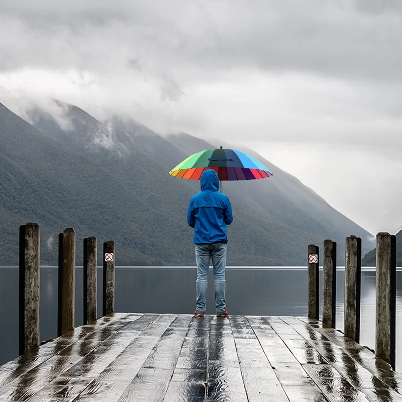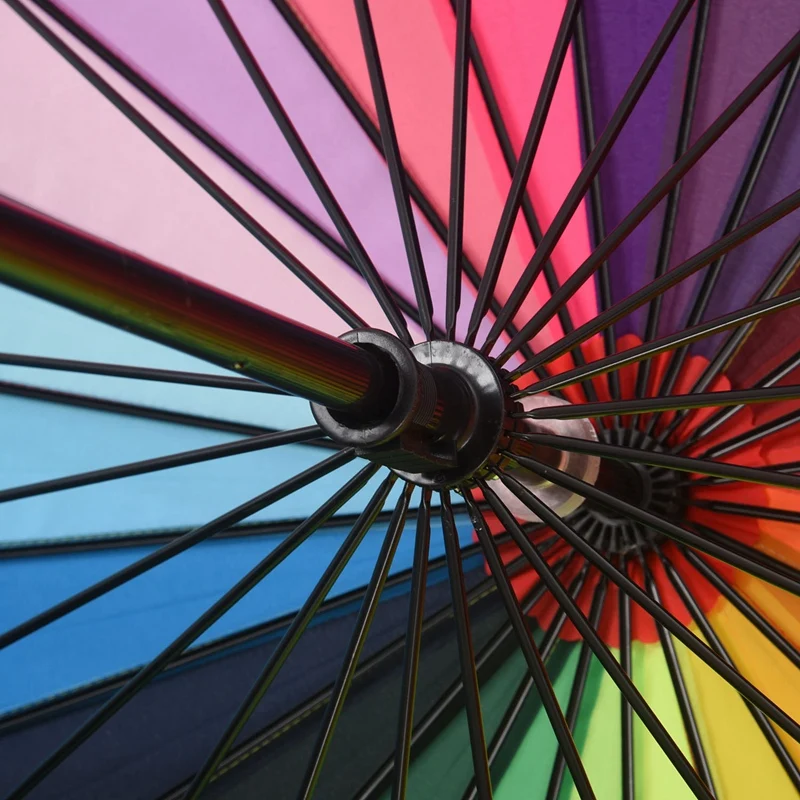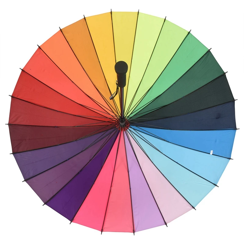 24K Rib Color Rainbow Fashion Long Handle Straight Anti-Uv Sun/Rain Stick Umbrella Manual Big Parasol