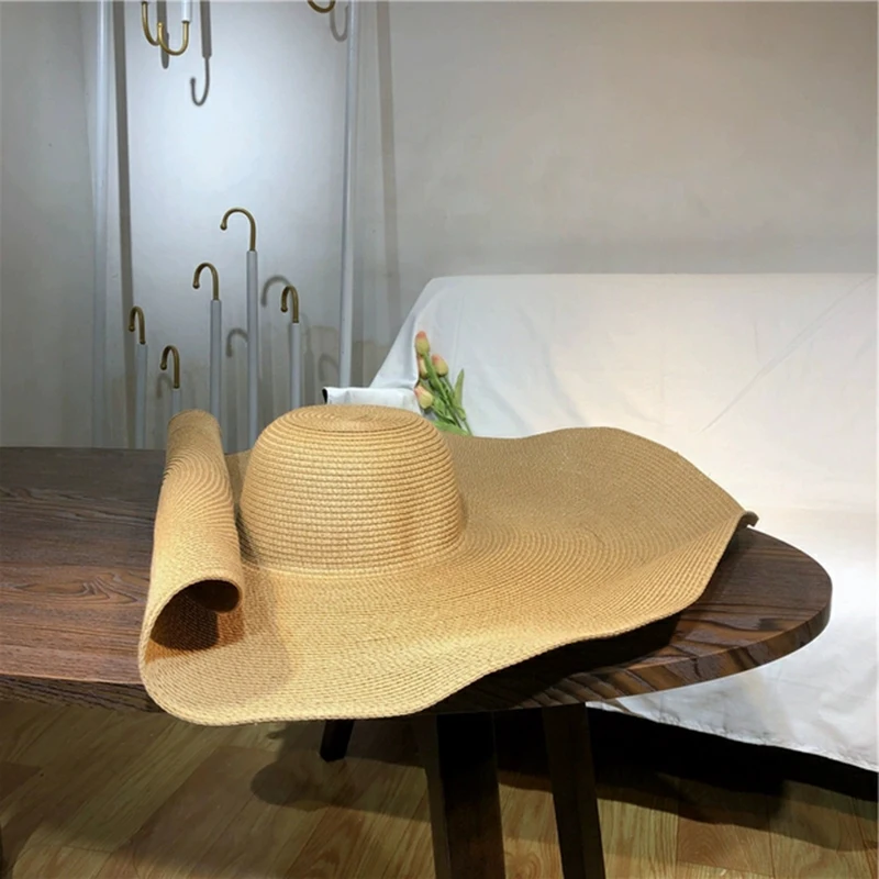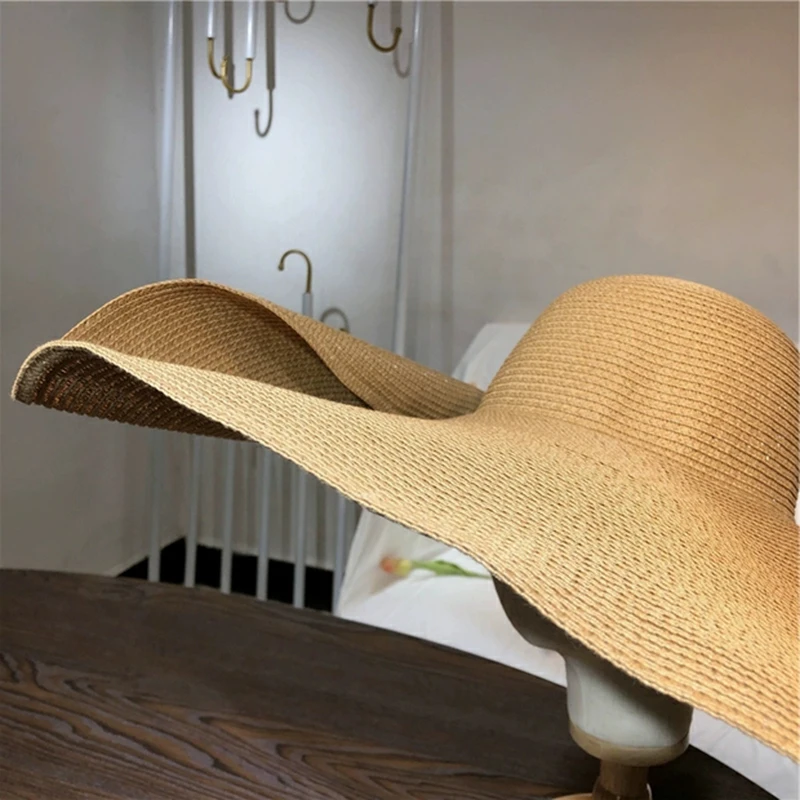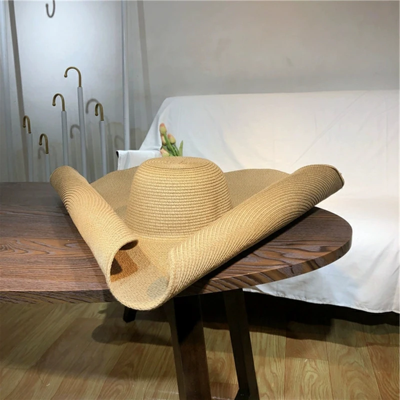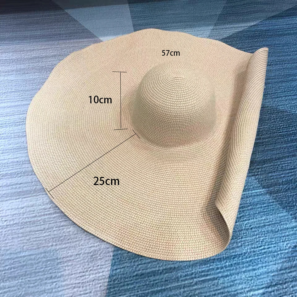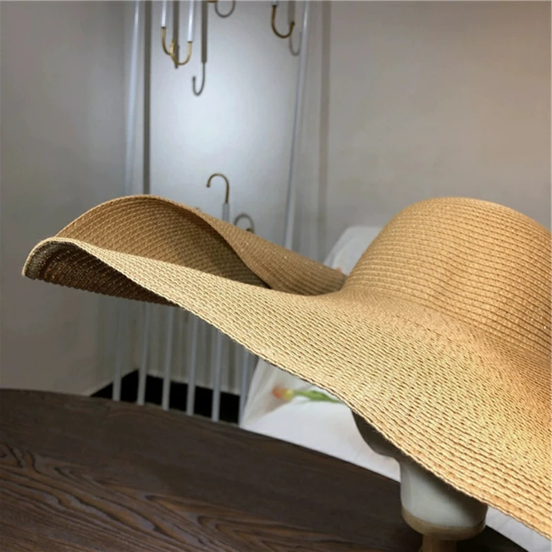 25CMWide Brim Oversized Beach Hats For Women Large Straw casual vacation Panama Hat UV Protection Foldable Sun Shade Hat