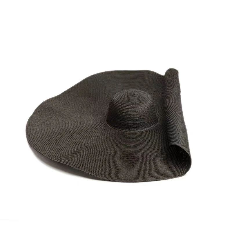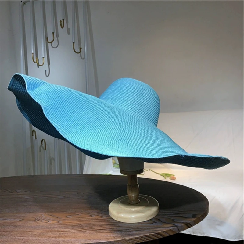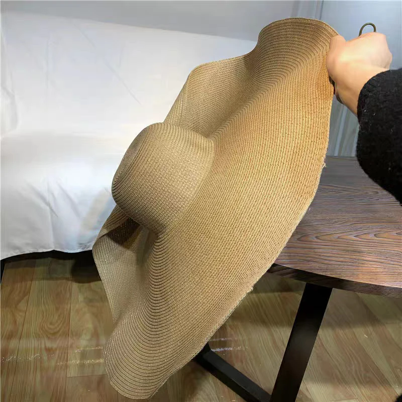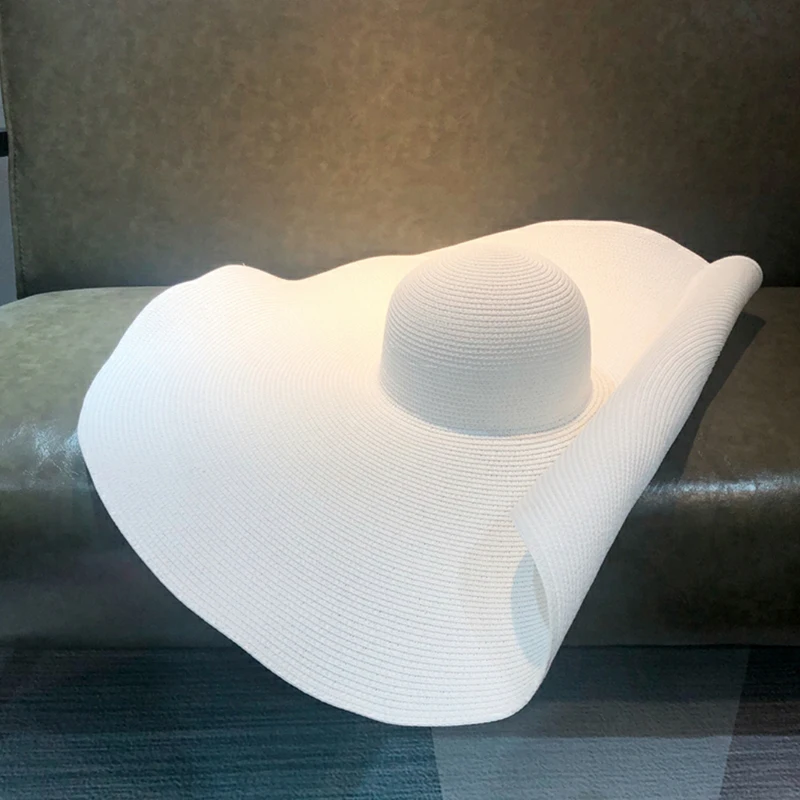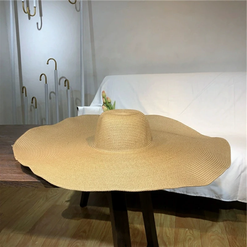 25CMWide Brim Oversized Beach Hats For Women Large Straw casual vacation Panama Hat UV Protection Foldable Sun Shade Hat