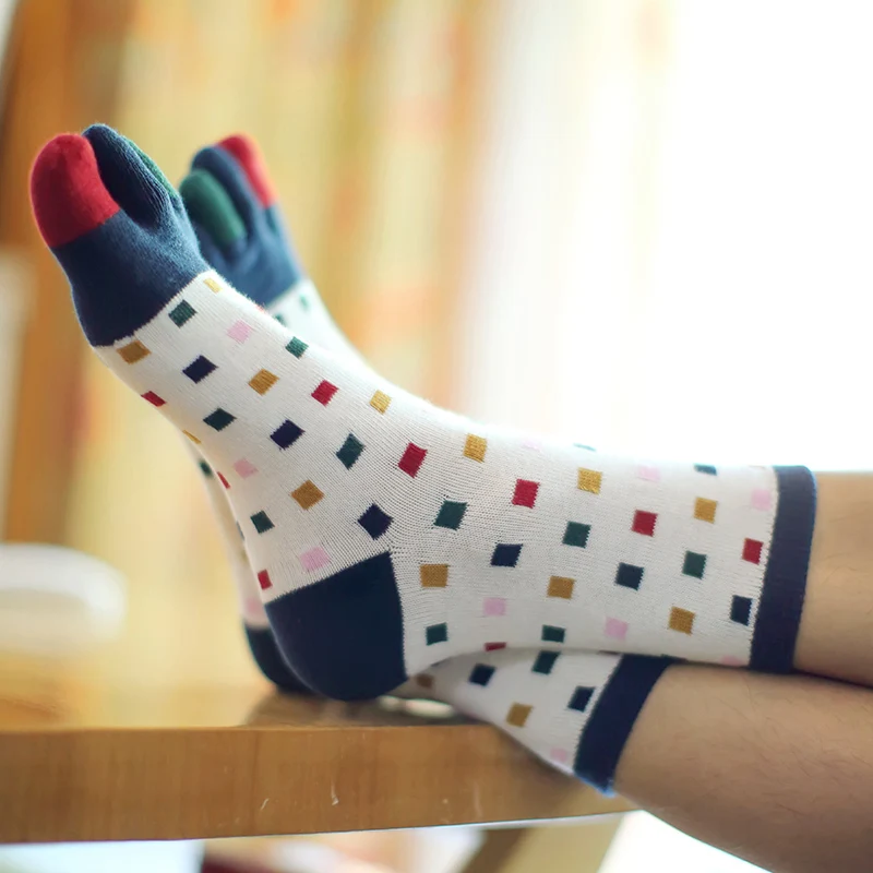 3 Pairs Five Finger Socks Cotton Men Toe Socks Colorful Crew Tube Sandal Socks For Male