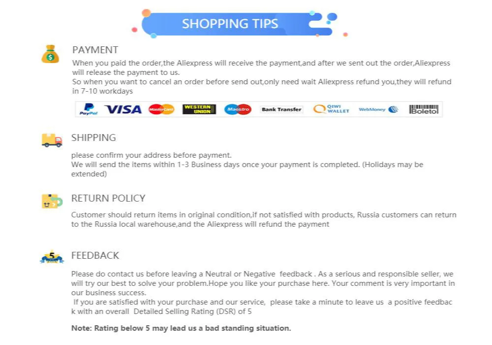 If the products you received was damaged or wrong styles, please don't leave any negative feedbacks first,kindly please contact us,we will deal with it and work out the best solutions,Your satisfication is our motion to do better.