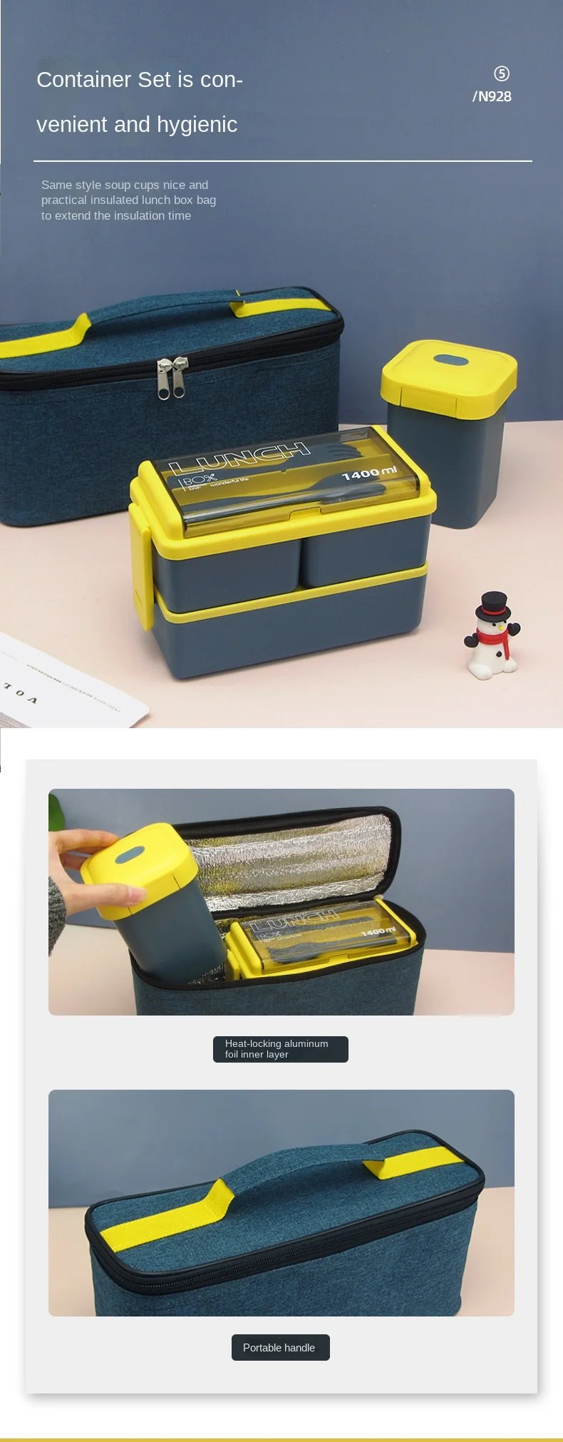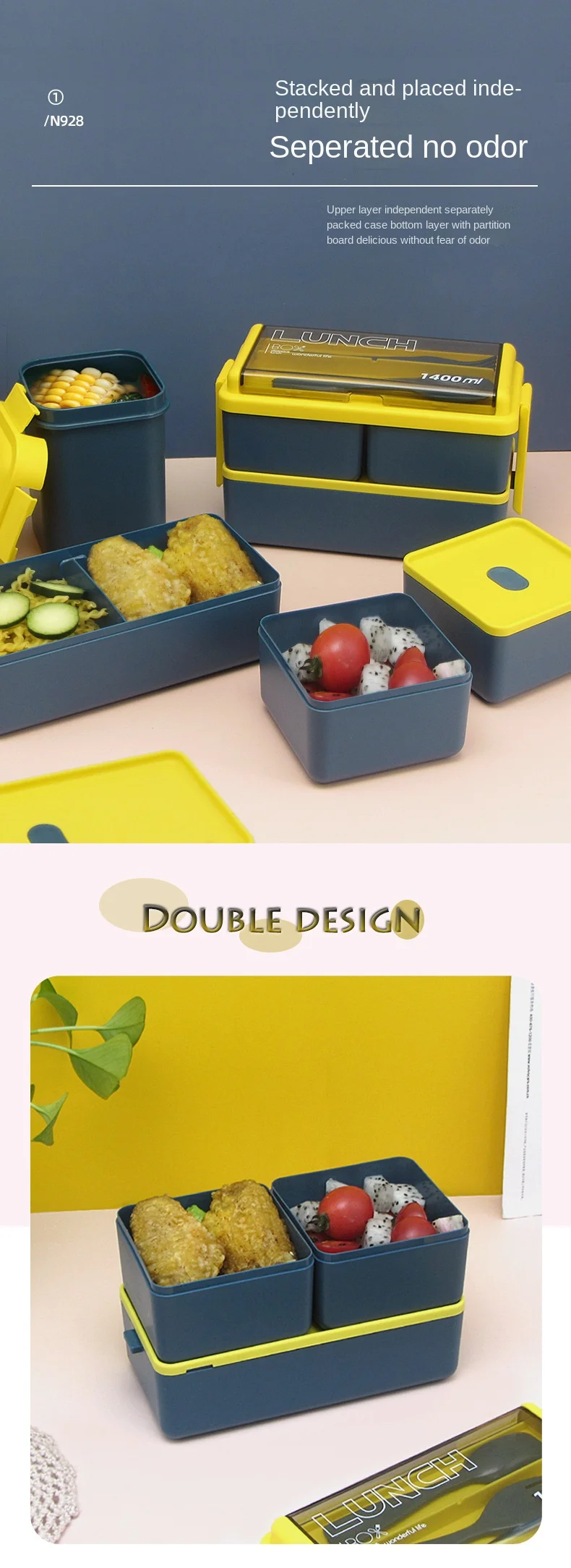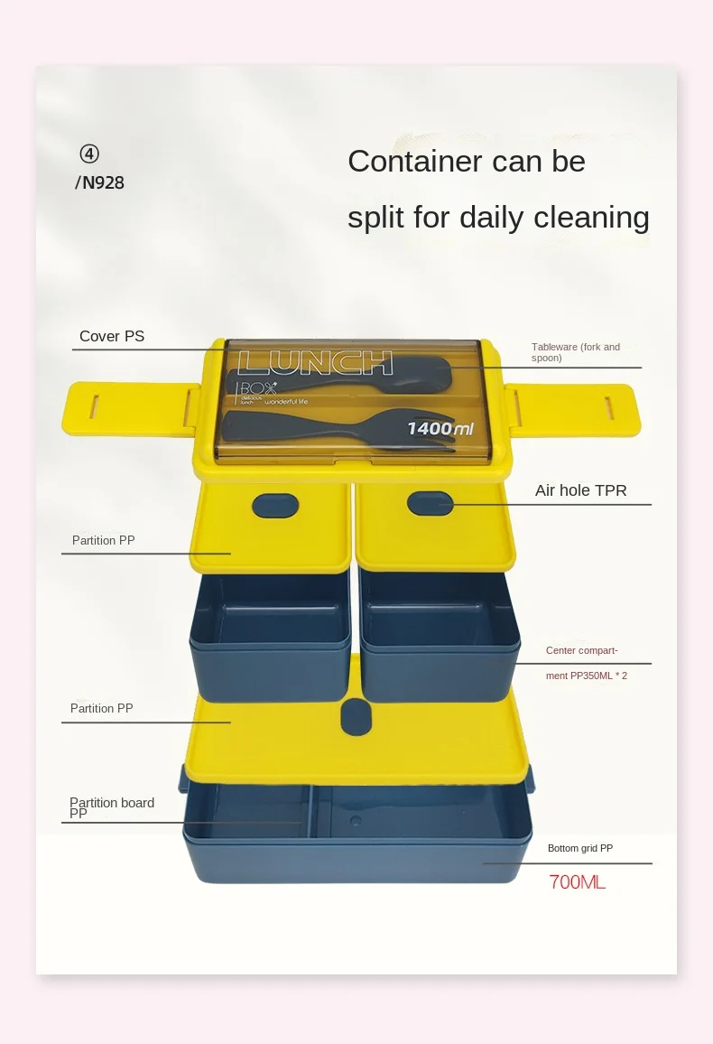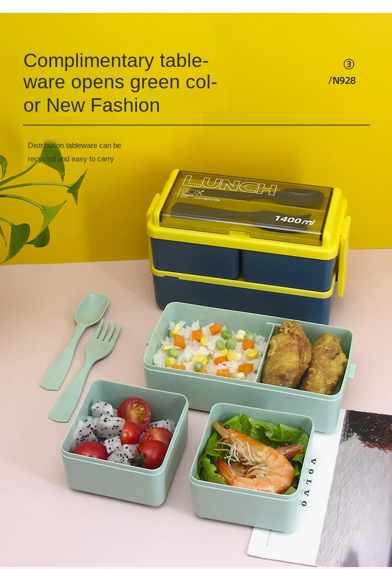 Item Features 2:Breakfast and lunch, one package to solve, 1400ml large-capacity lunch box, which can meet most people's lunch appetite.