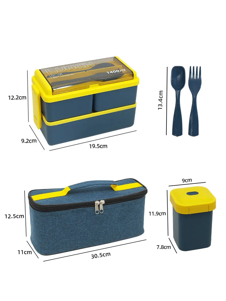 3Pcs/lot Japanese Lunch Box Lunch Bag Complete Kit Insulated Microwaveable Bento Box 2 Layers for Kids Student Adult Women Man