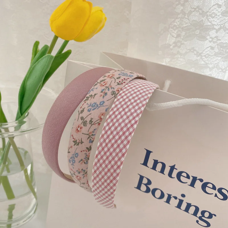 3pcs Vintage Floral Wide Headbands Solid Flower Plaids Hairbands Set for Women Head Wrap Girls Tiara Elegant Headwear