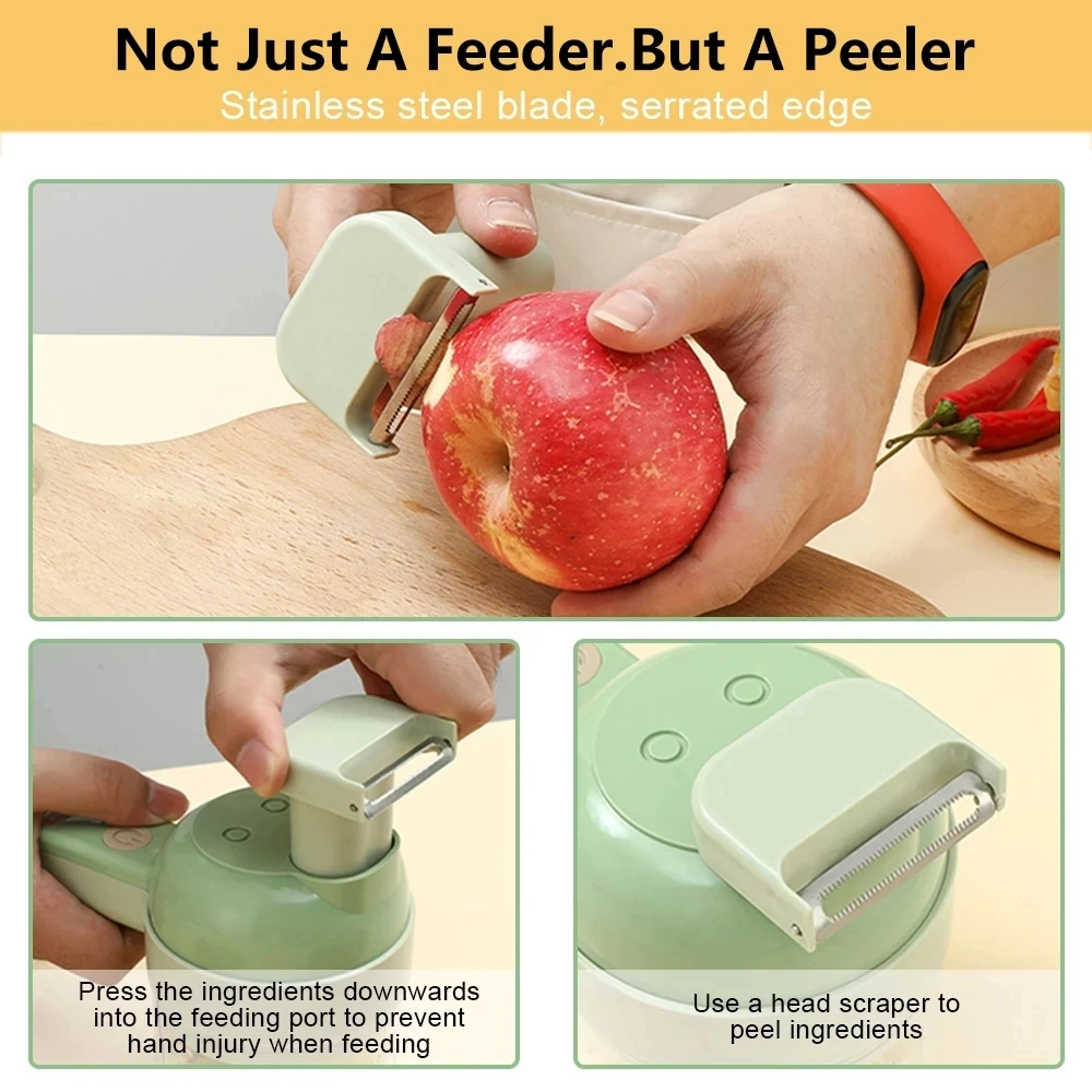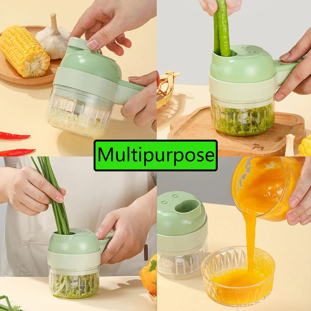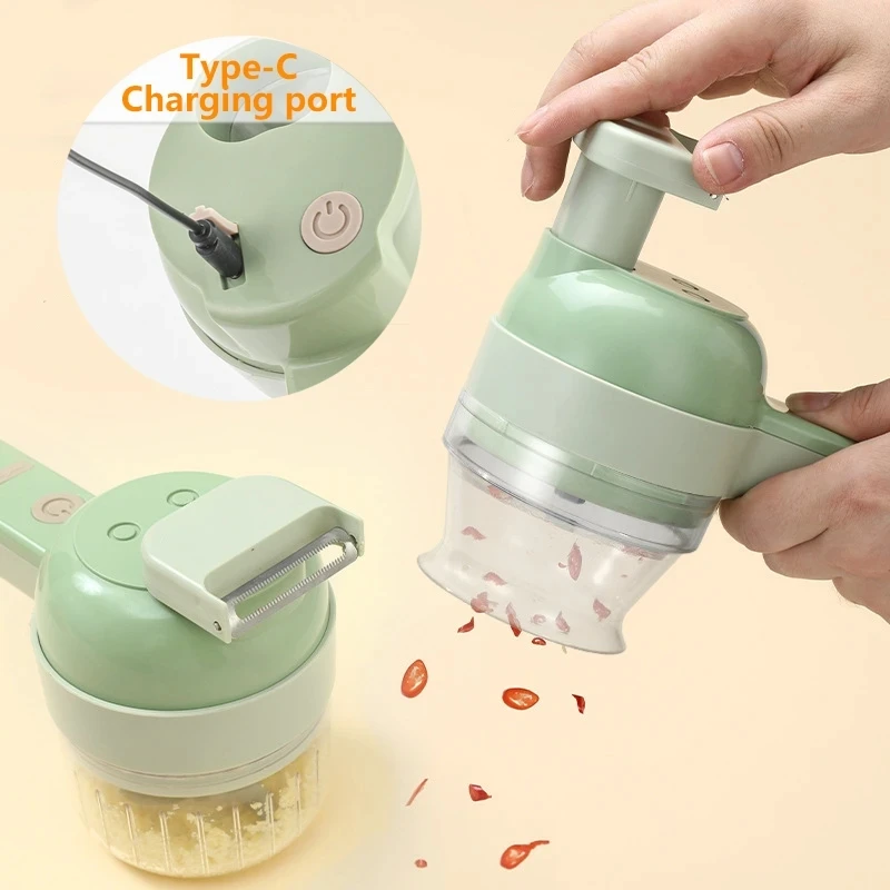 4 In 1 Electric Vegetable Cutter Set Handheld Wireless Electric Garlic Masher Food Chopper Meat Grinder Machine Food Peel Slice