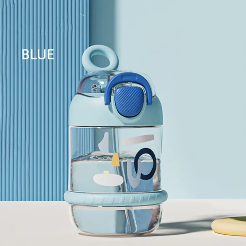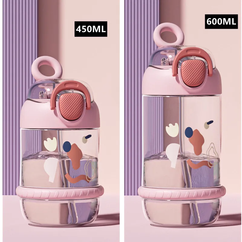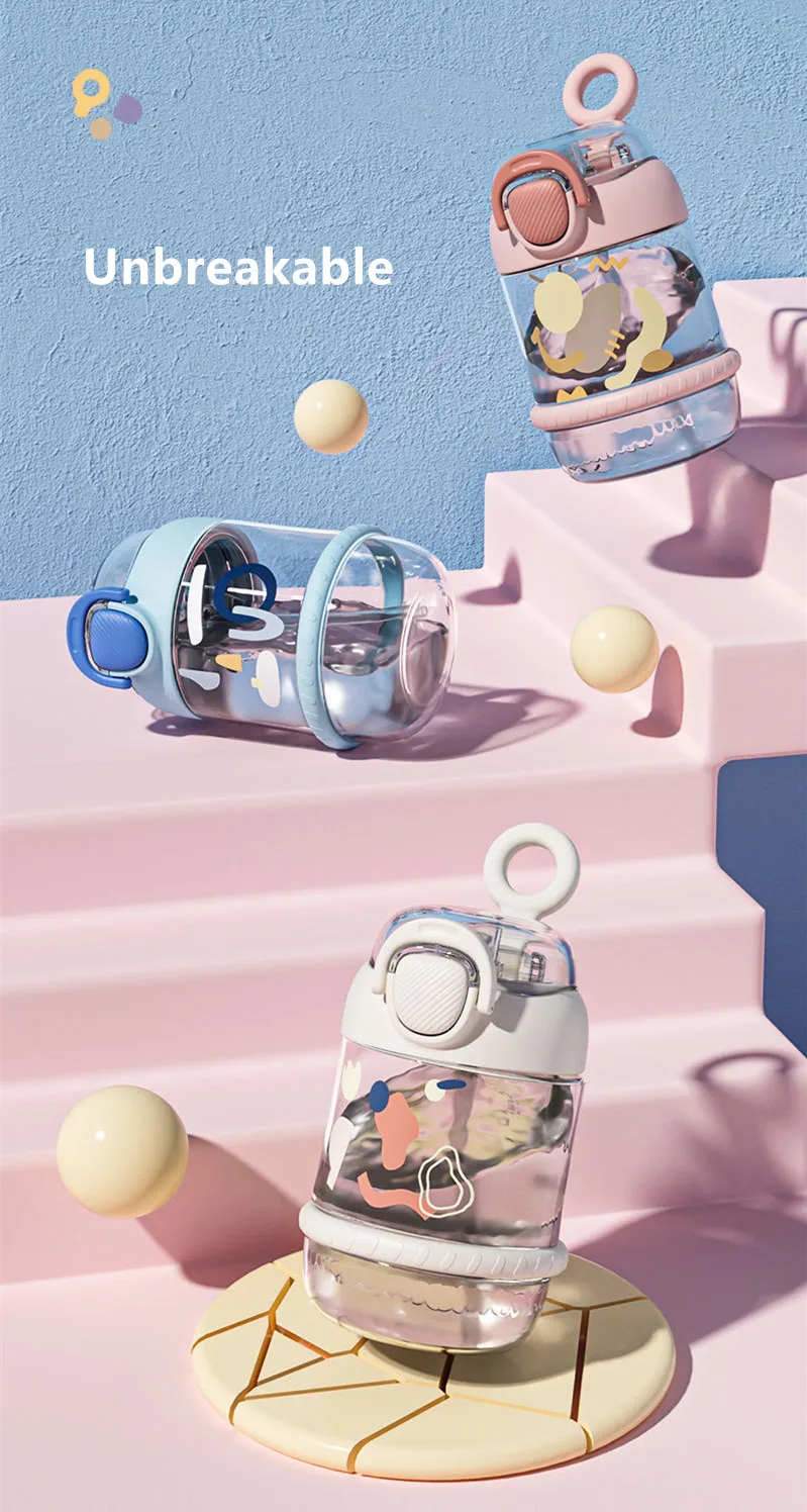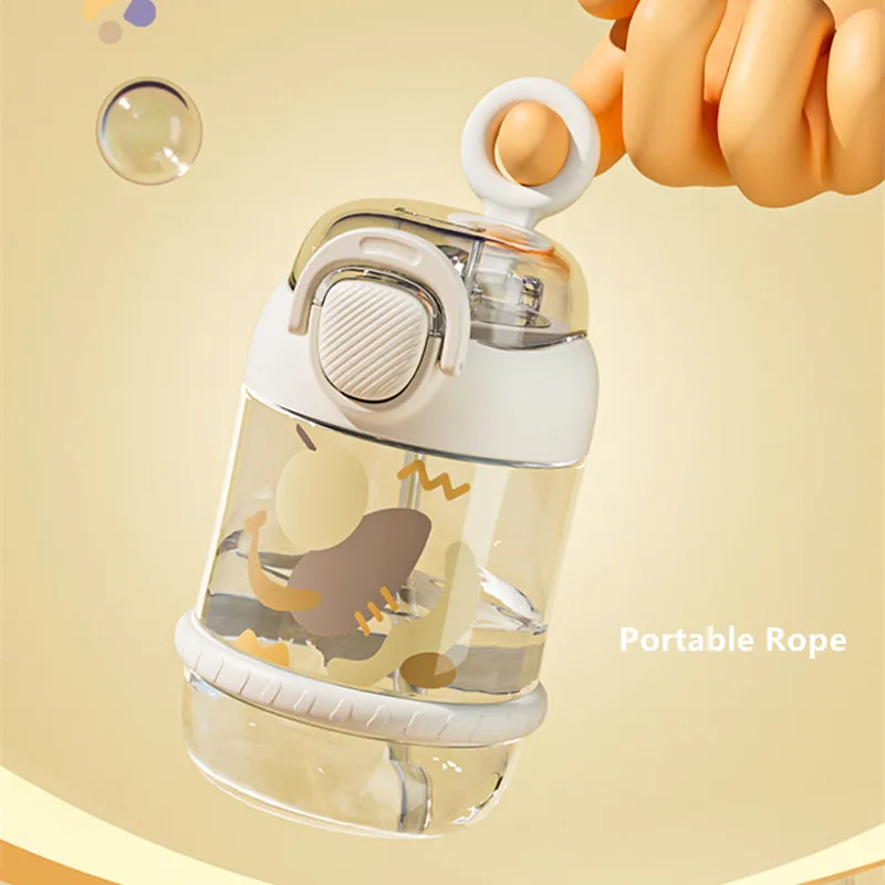 450ml/630ml Healthy Material Kids Water Bottle With Straw Leak-Proof BPA Free Cute Durable Plastic Drinking Bottle With Rope