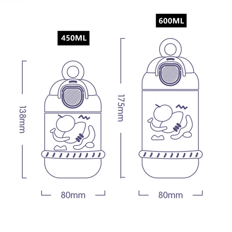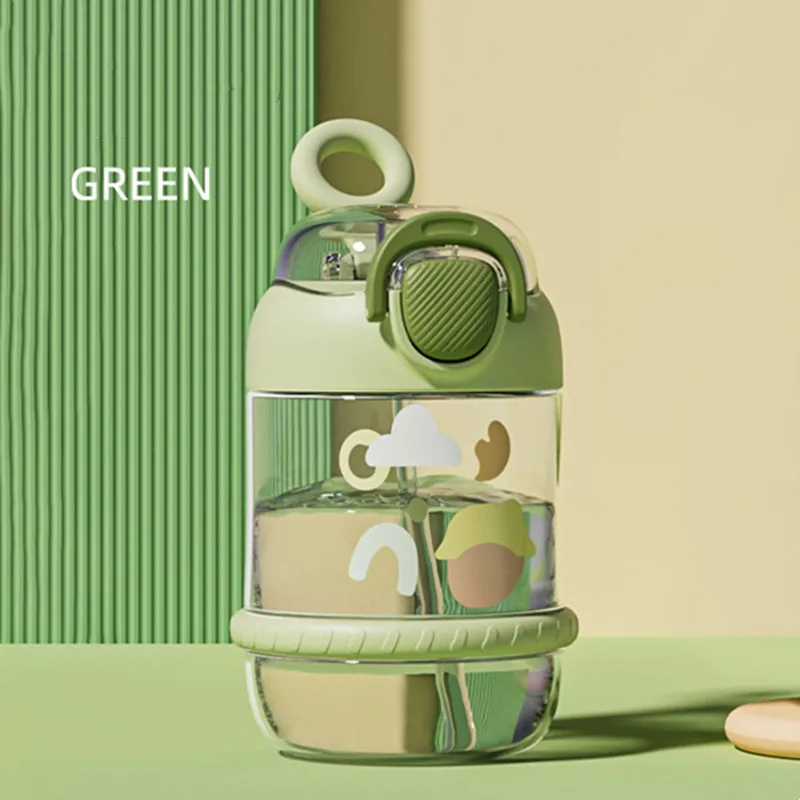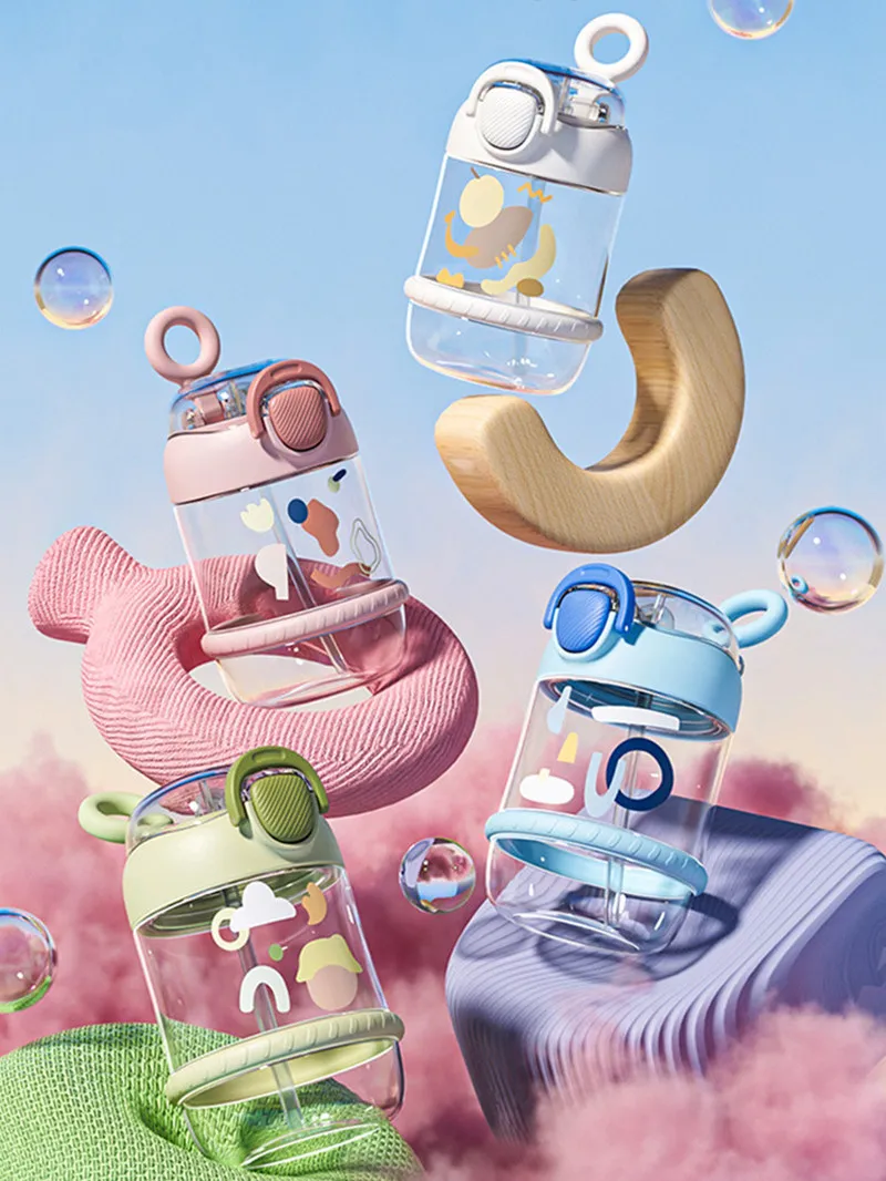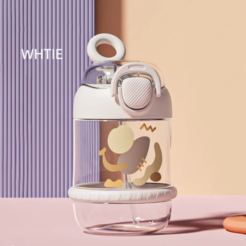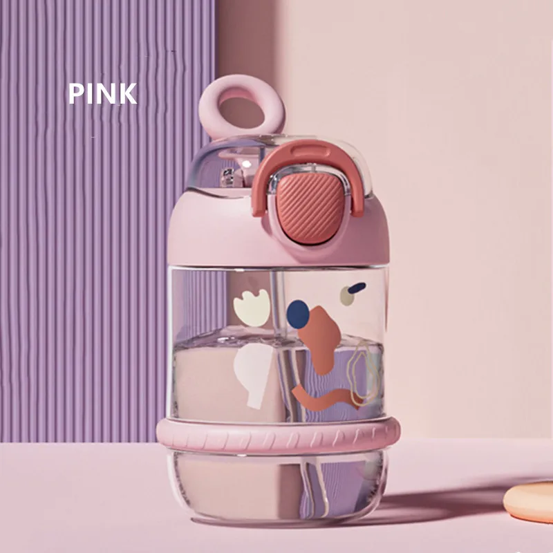 450ml/630ml Healthy Material Kids Water Bottle With Straw Leak-Proof BPA Free Cute Durable Plastic Drinking Bottle With Rope