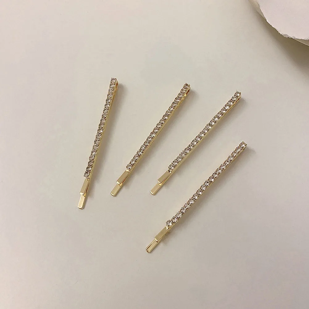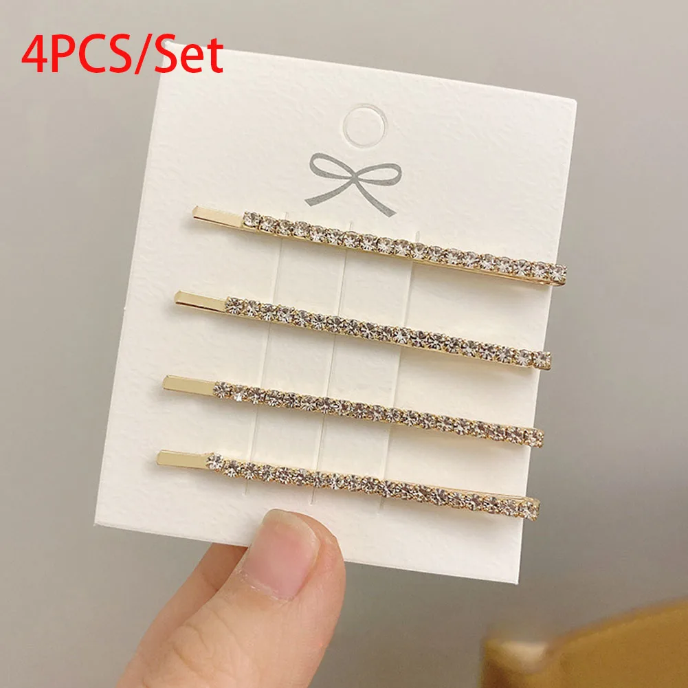 4PC Bling Bling Crystal Rhinestones Hair Clips Metal Hairpins Barrettes Ornament Hair Styling Tools Accessories for Women Girls