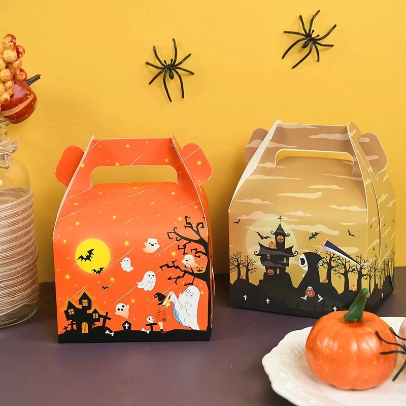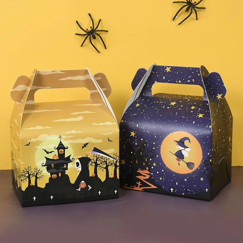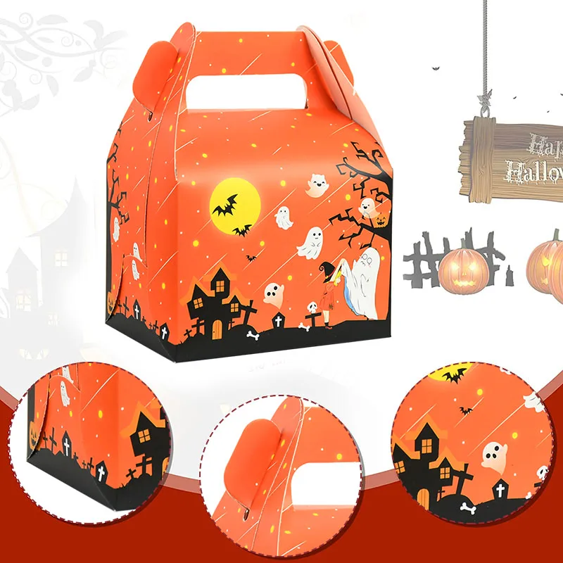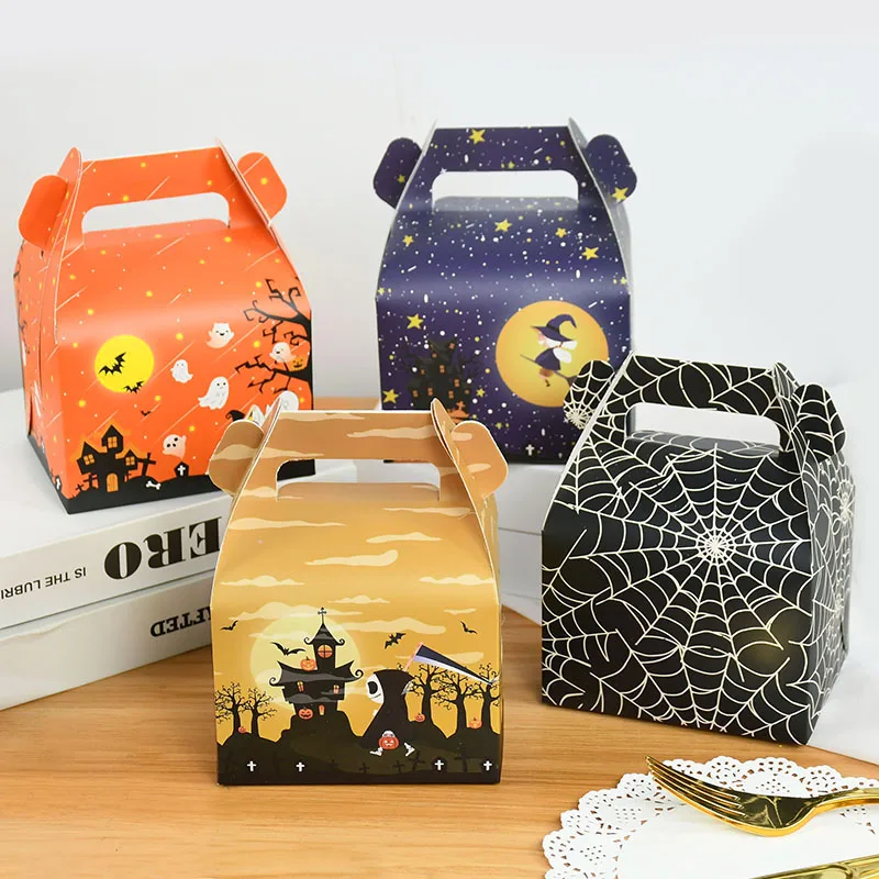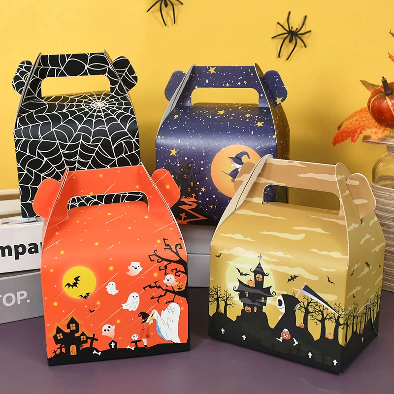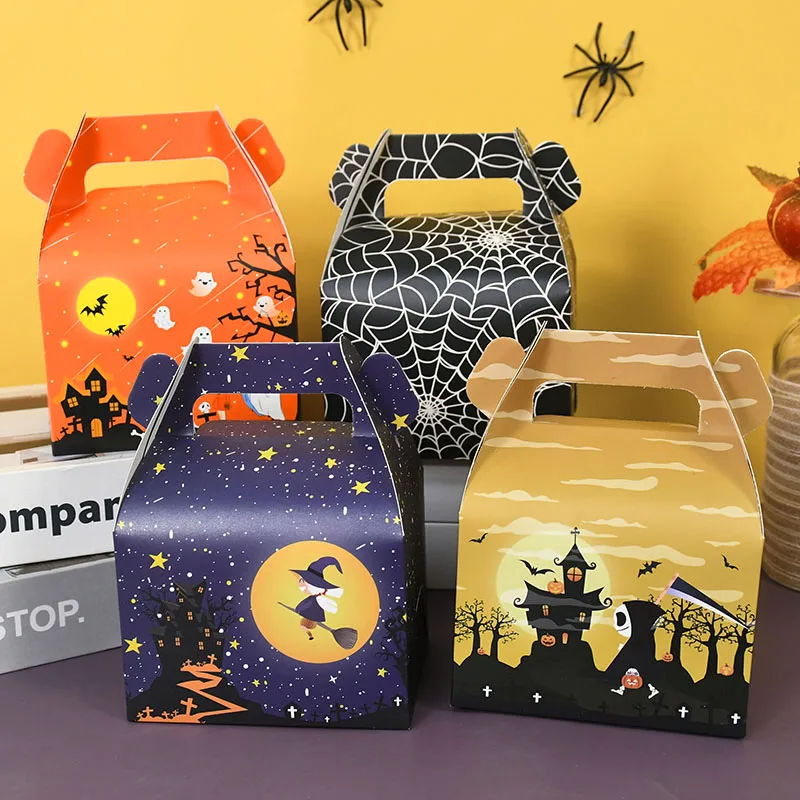 4Pcs Halloween Candy Gift Box Cookie Snack Cake Packaging Boxes Bag Halloween Party Decoration Supplies Trick or Treat Kids Gift