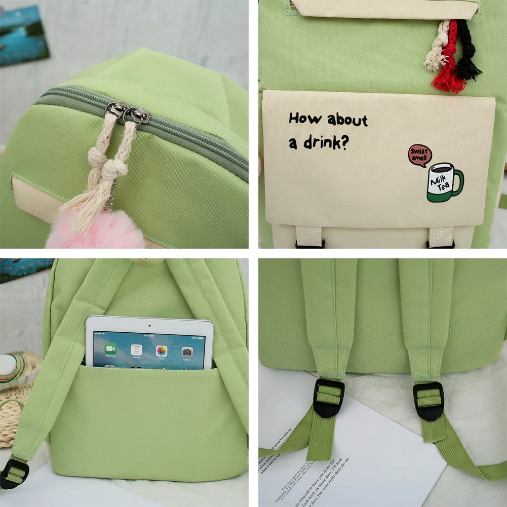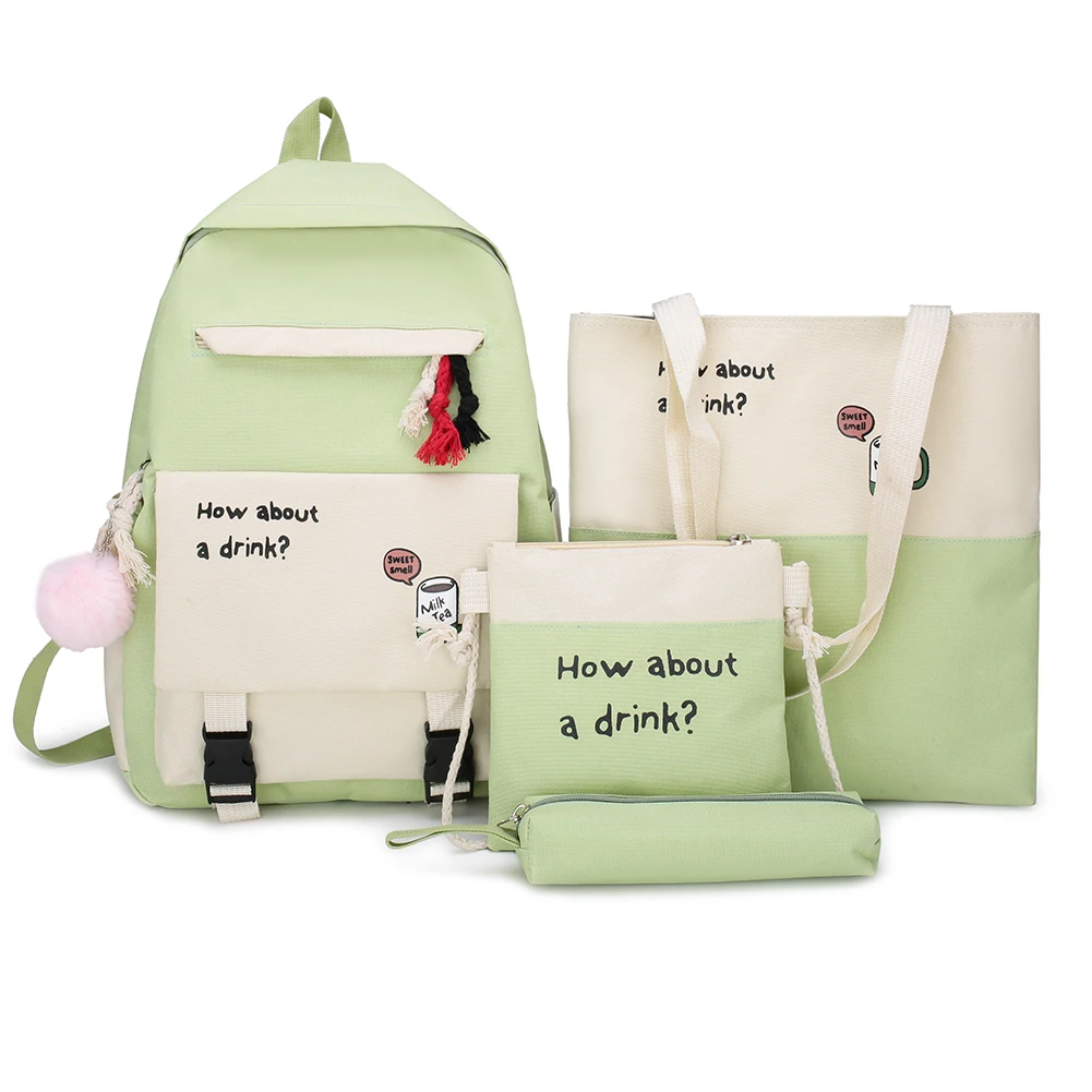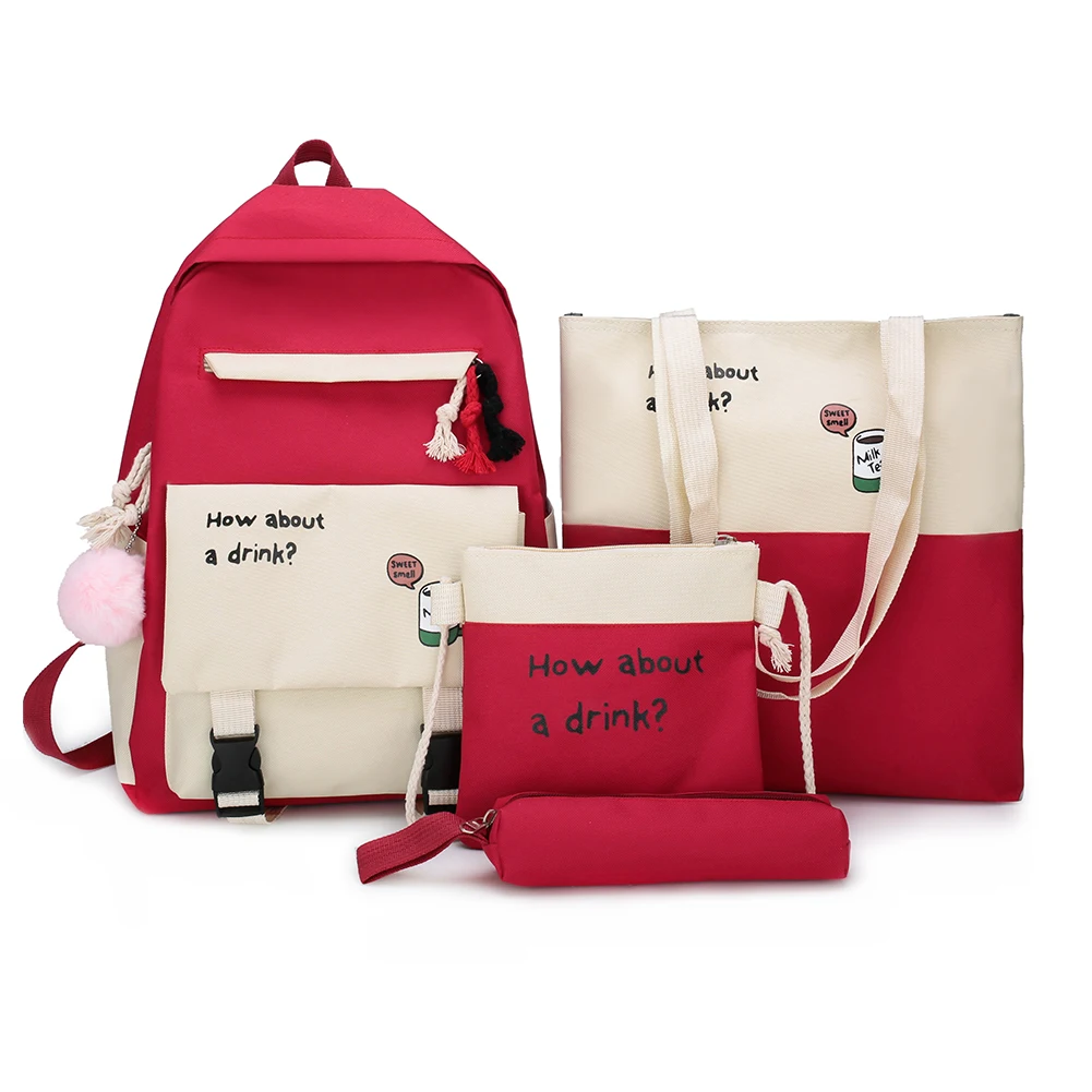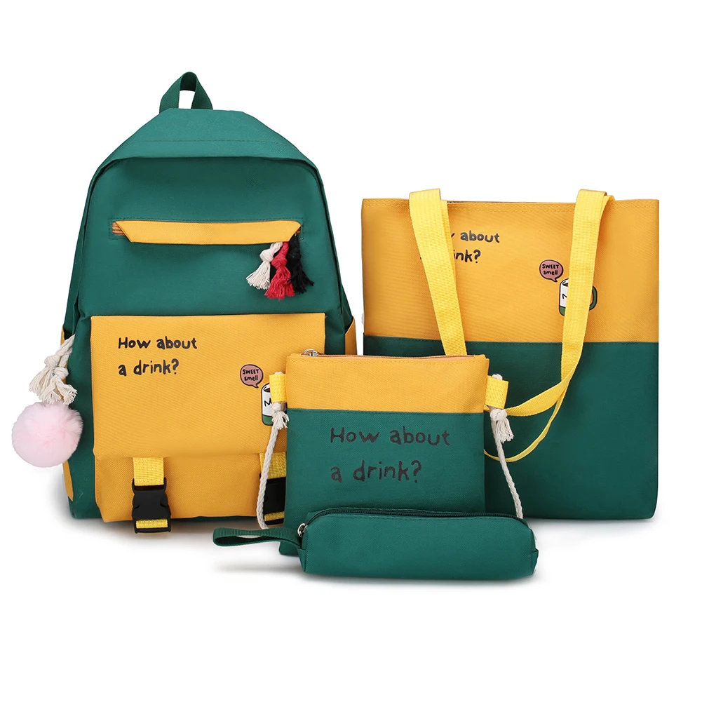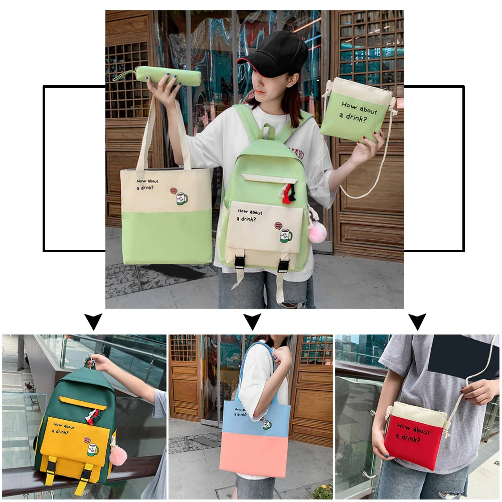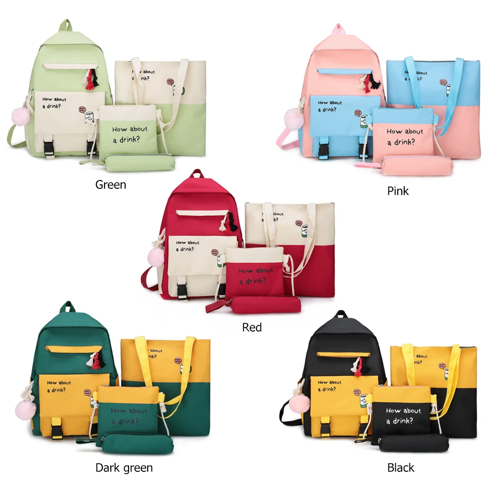 4pcs/set Letters Hit Color Women Backpack Canvas Shoulder Messenger Bags Student School Pen Clutch Case Feature: Casual letters hit color,travel backpack. Canvas material, durable. Specification: Main material: Canvas Size: Backpack 400 * 290 * 130mm/15.74*11.41*5.12in Top-handle bag 340 * 290 * 30mm/13.4*11.41*1.18in Messenger bag 190 * 190mm/7.48*7.48in Color: Green, Pink, Red, Dark Green, Black Usage: Shoulder bag, Messenger bag, Backpack, Top-handle bag, Totes Applicable: Women Occasions: Casual, Daily, Shopping, Travel, School Tips: Shoulder strap adjustable. Note: 1. Due to the different monitor and light effect, the actual color of the item might be slightly different from the color showed on the pictures. Thank you! 2. Please allow 1-3cm measuring deviation due to manual measurement. 1 X Women Backpack 1 X Top-handle Bag 1 X Messenger Bag 1 X Pen Case ![]() ![]() ![]() ![]() ![]() ![]() ![]() ![]() ![]() ![]() ![]() ![]() ![]() ![]() ![]() ![]() ![]() ![]() ![]() ![]() ![]() ![]() ![]() ![]() ![]() ![]() ![]() ![]() ![]() ![]() ![]()