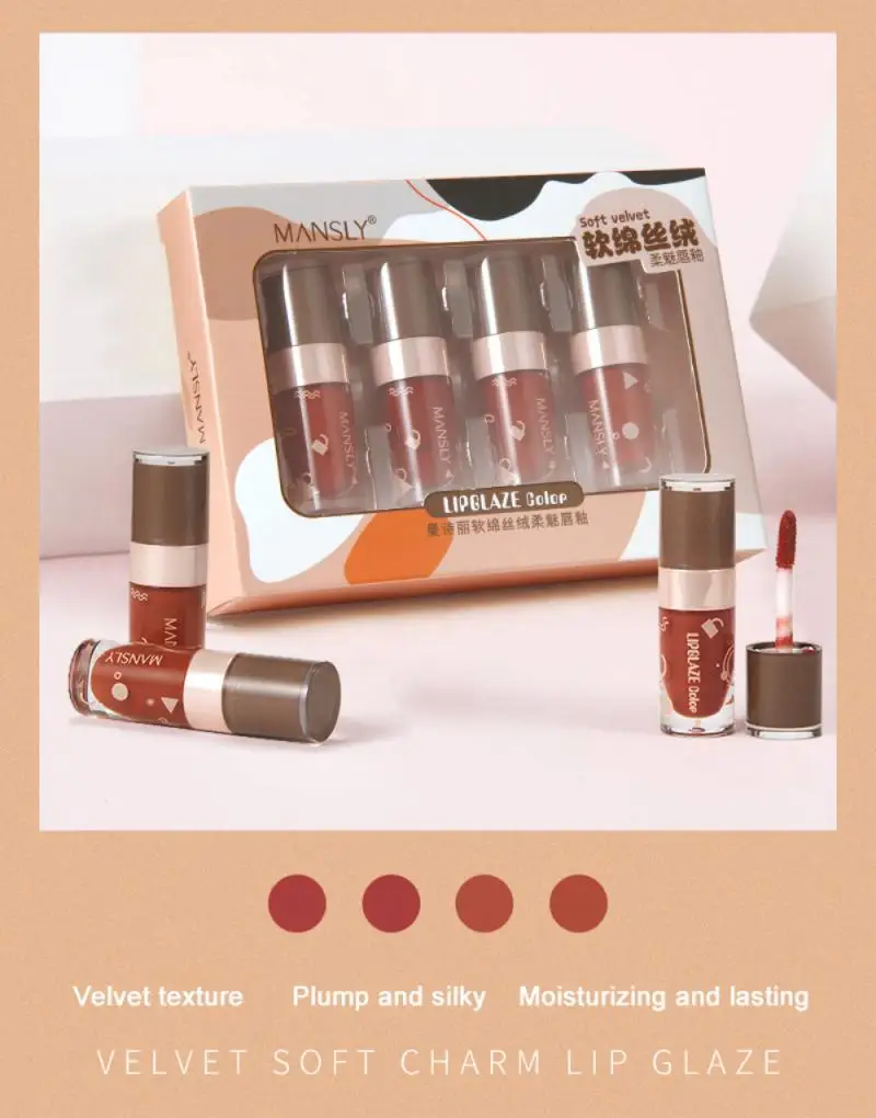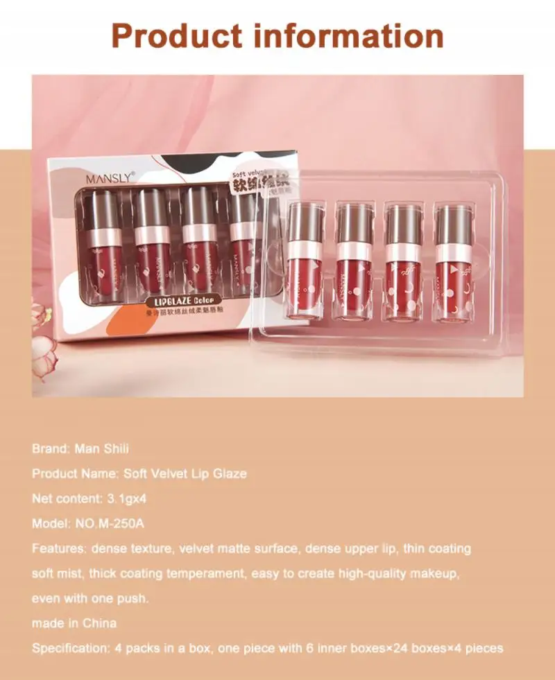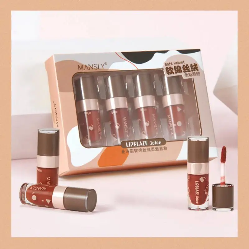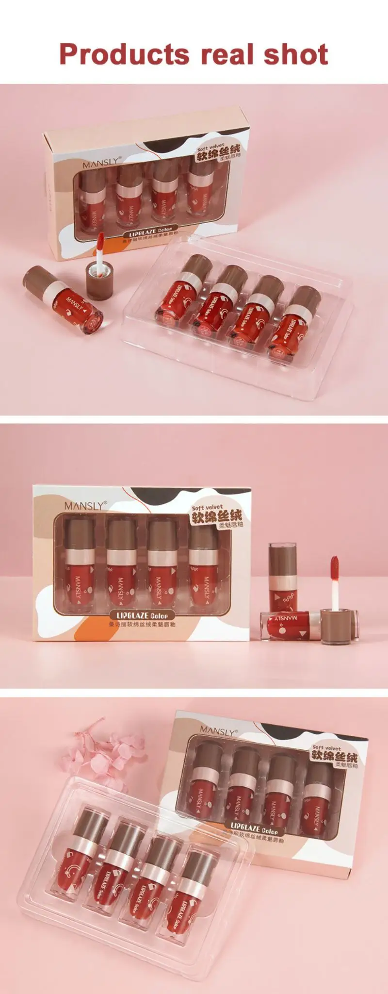 4pcs Velvet Air Lip Glaze Set Matte Lip Gloss Waterproof Sweatproof Nonstick Cup Lipstick Long-lasting Not Fade Makeup TSLM1
