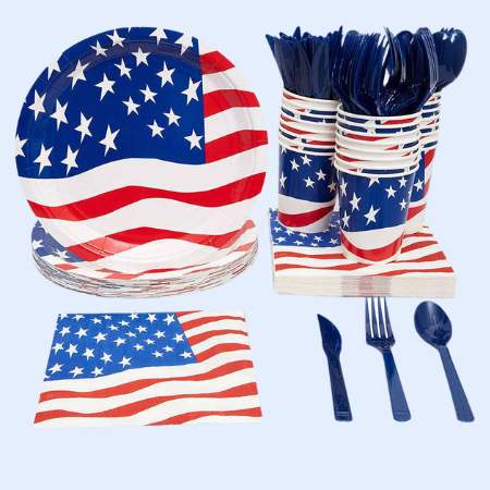118PCS 4th Of July Independence Day Theme Party Decorations Disposable Plates Cups Banner Party Suppliers