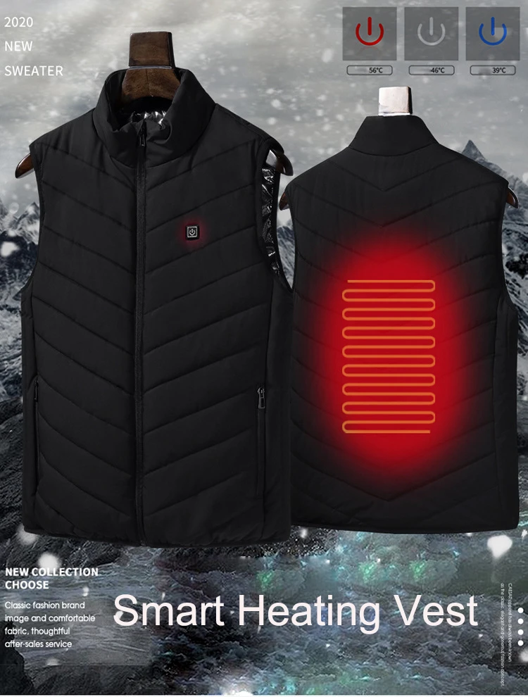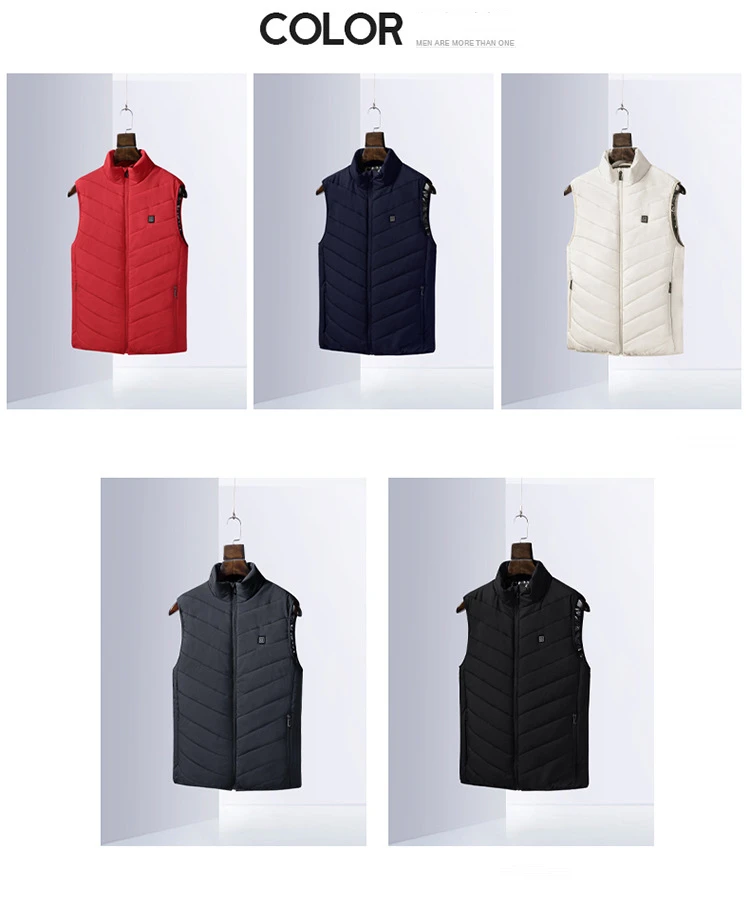 5 Color Outdoor Heated Vest Men Women Sleevless USB Heating Jacket Stand Collar Heating Thermal Waistcoat Hiking Coat