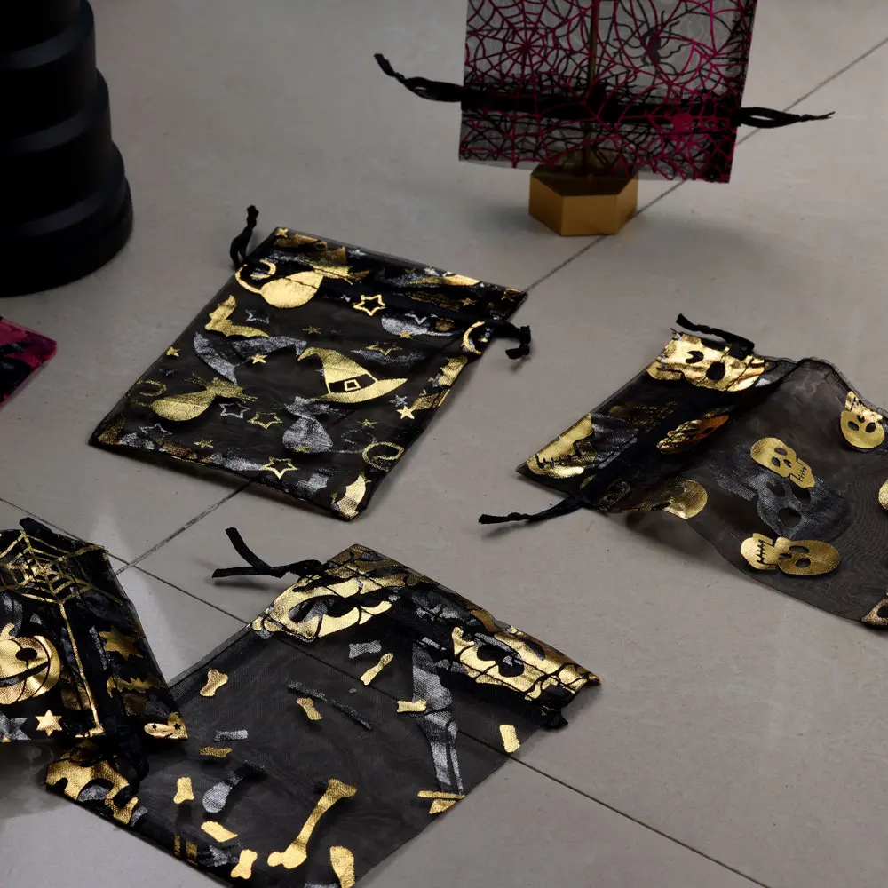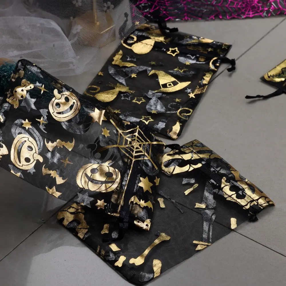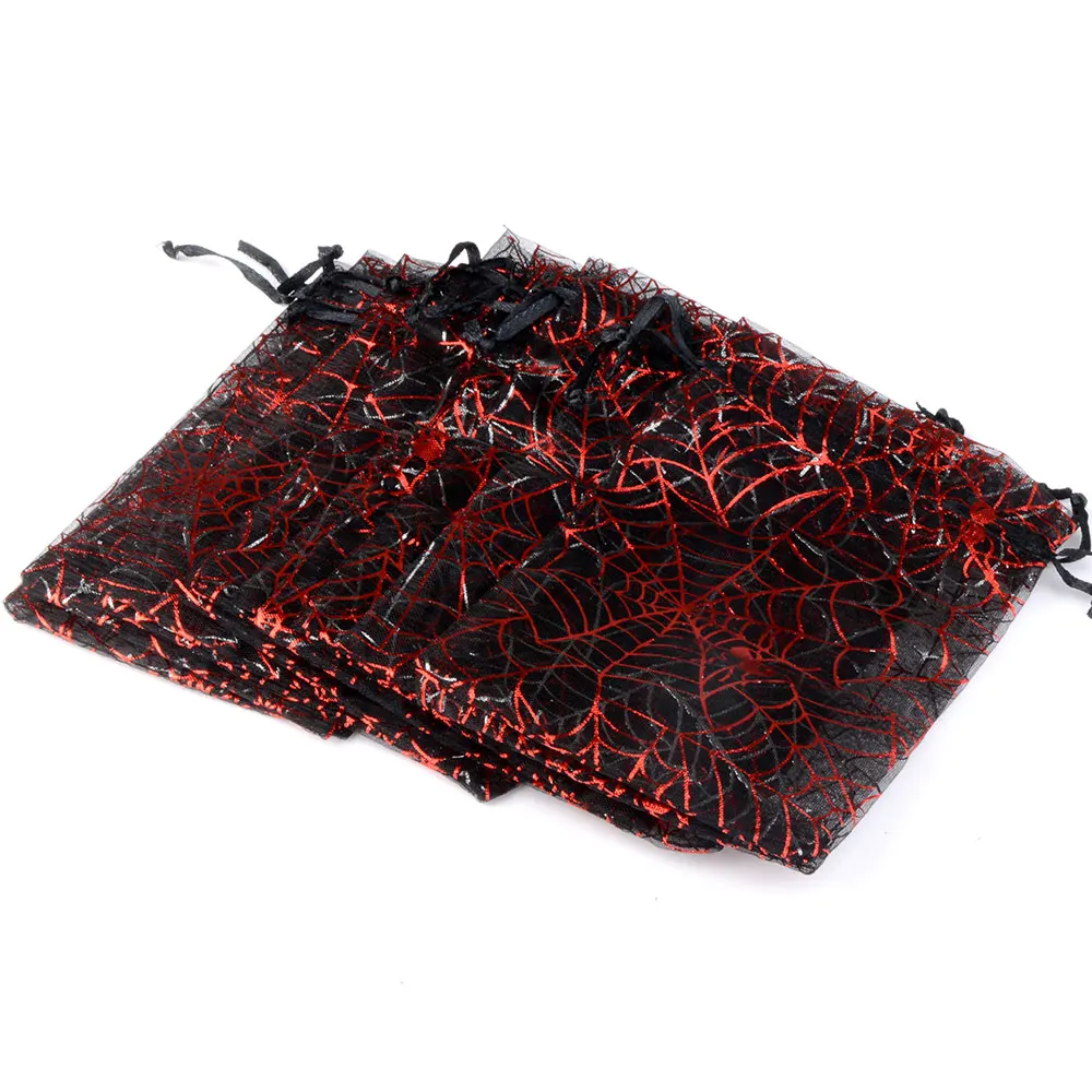 50pcs 10x15cm Organza Halloween Gift Bags Spider Web Shape Jewelry Packaging Bags Wedding Party Present Drawable Packing Bags