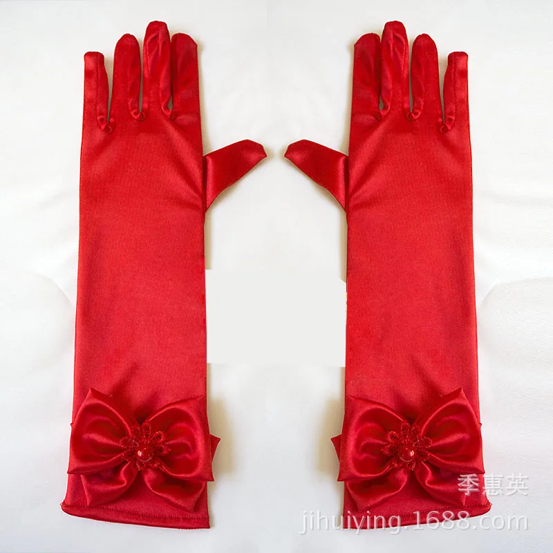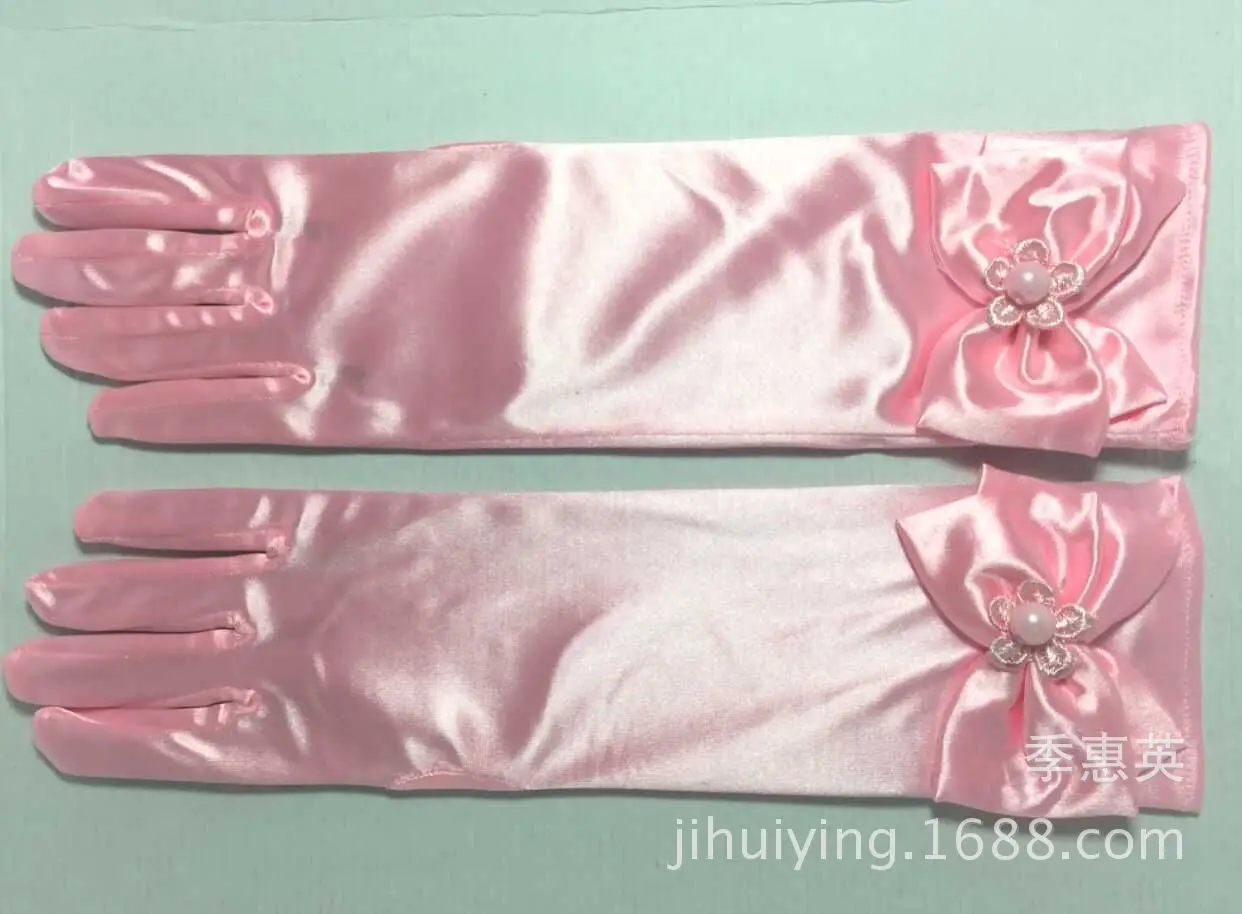 5pair Girl Long Gloves Flower Bow Dress White Pink Children Christmas Party Birthday Present Gift Black Red