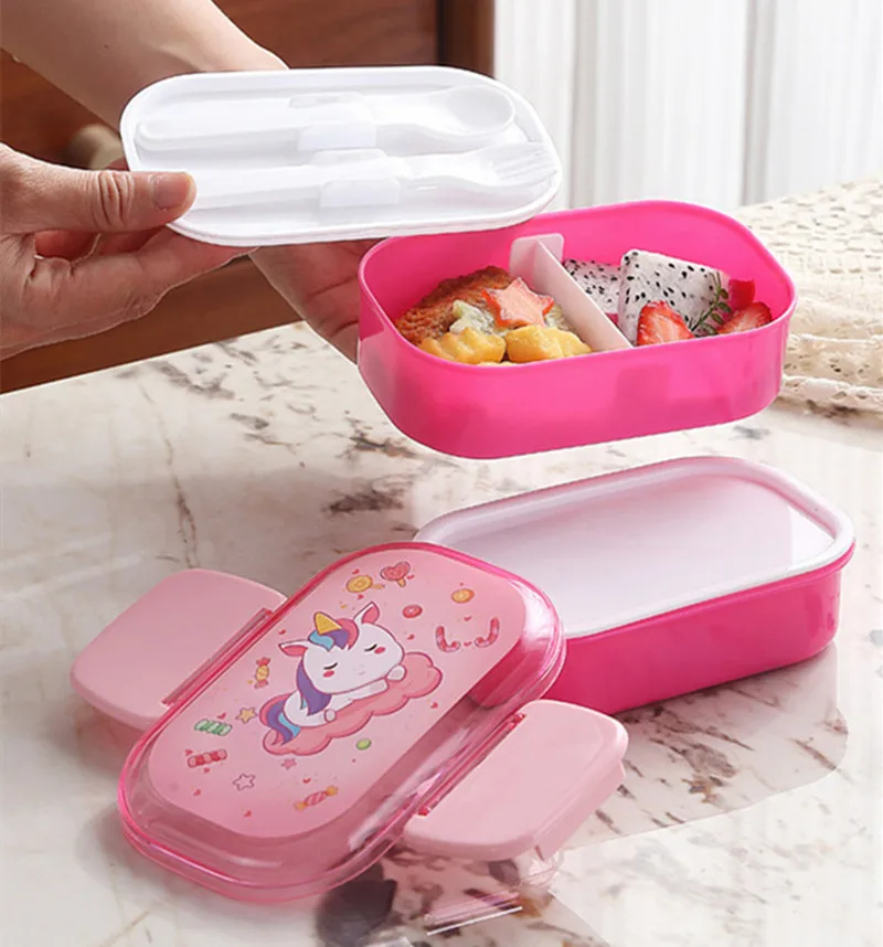 600ml Cartoon Double Layers Lunch Box With Spoon And Fork Leak-Proof Microwave Bento Box Kids Student Food Container BPA Free
