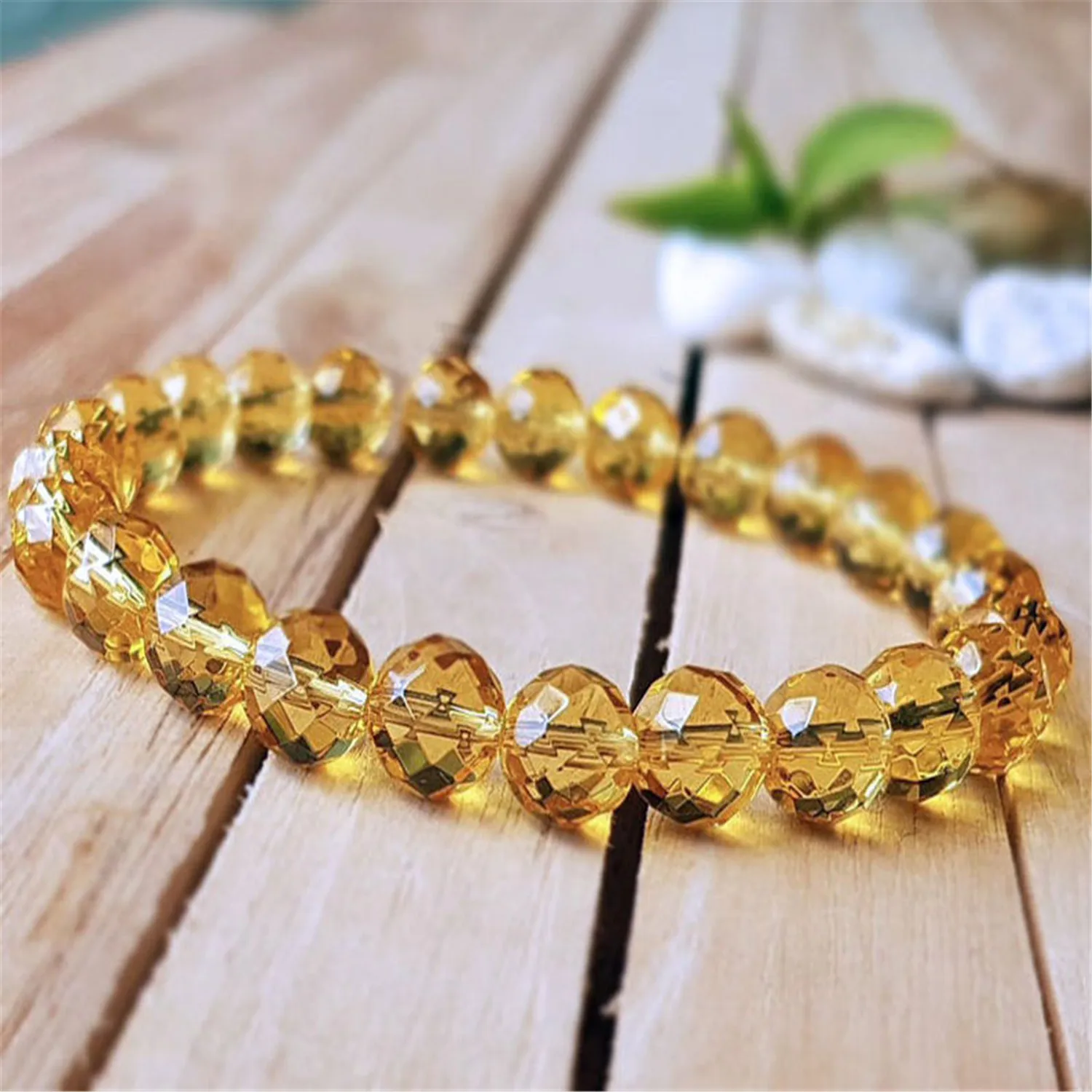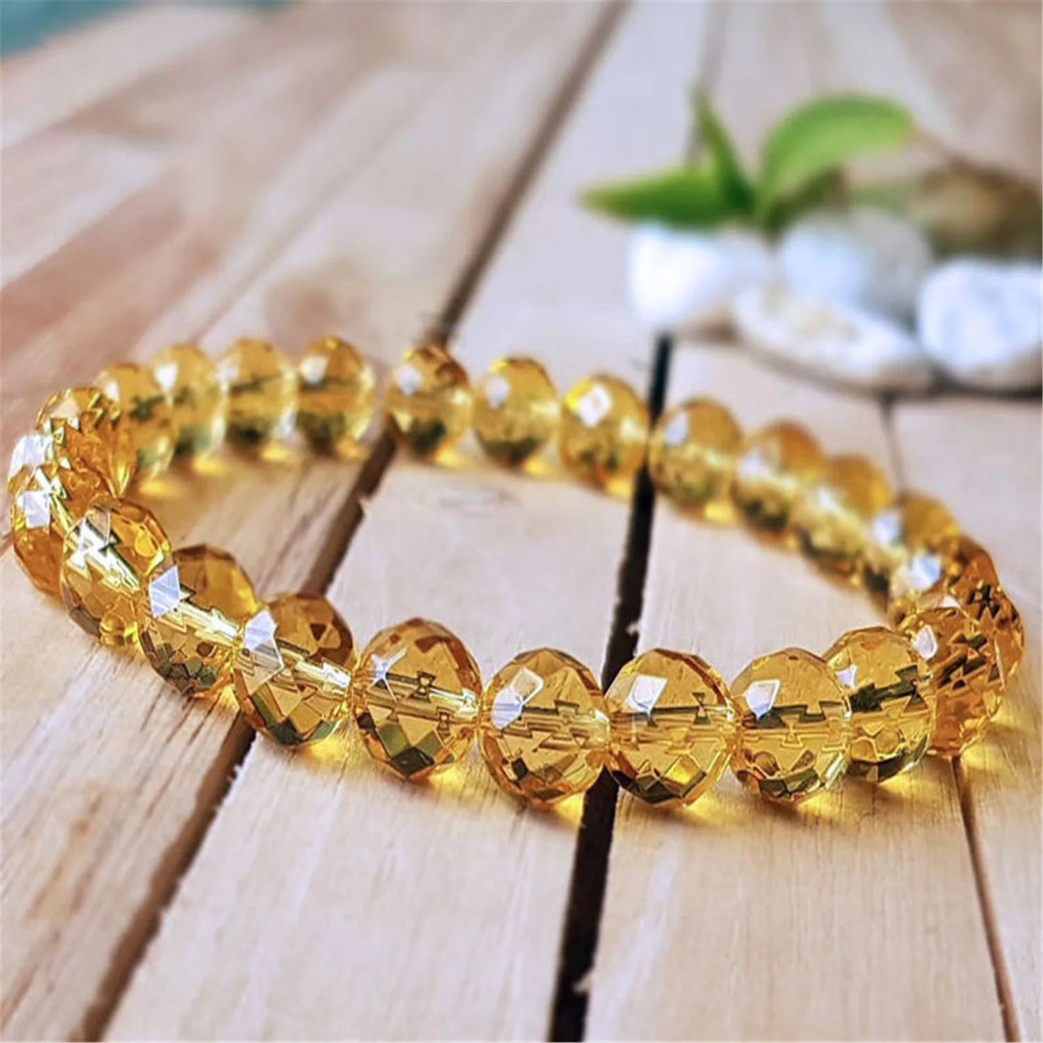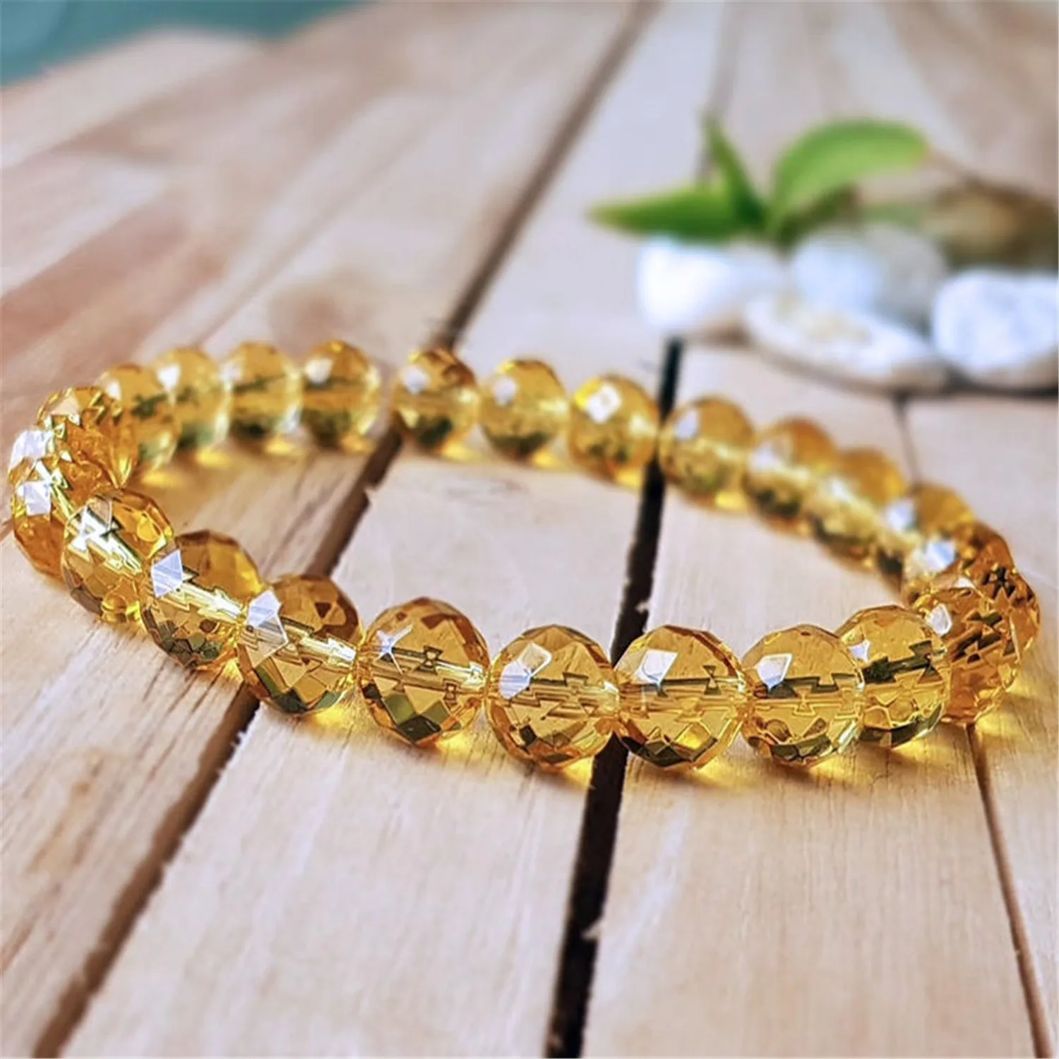 8mm Natural Yellow Citrine Handmade Mala Bracelet Pray Meditation Spirituality Buddhism