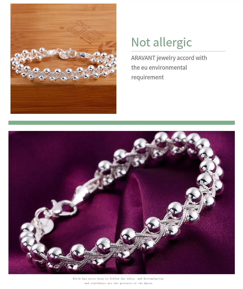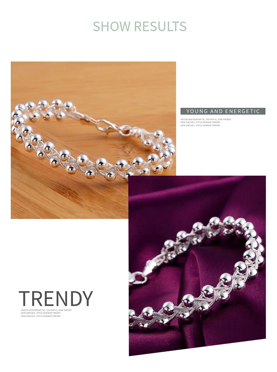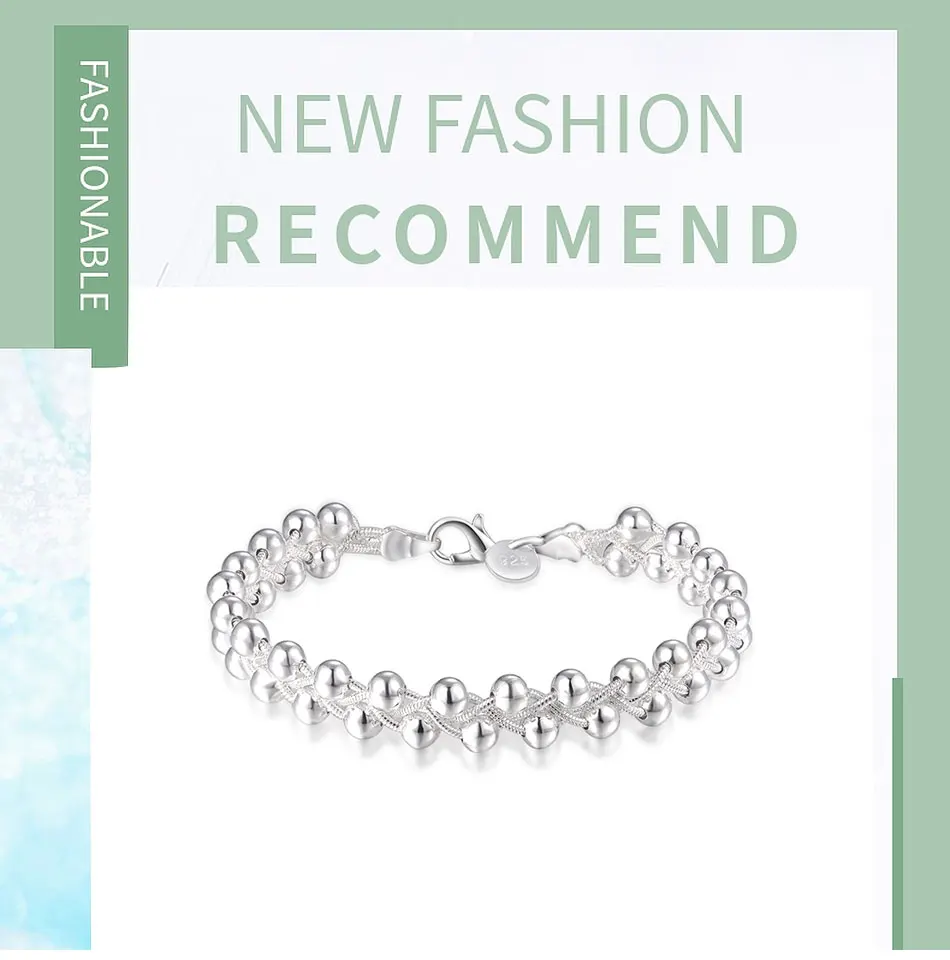 925 Silver Weave Beads Chain Bracelet For Women Wedding Fashion Jewelry Gifts