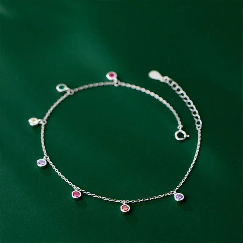 925 Sterling Silver Adjustable Tassel Zircon Round Bead Charm Anklet Bracelet for women Party Beach Jewelry For Women Girls