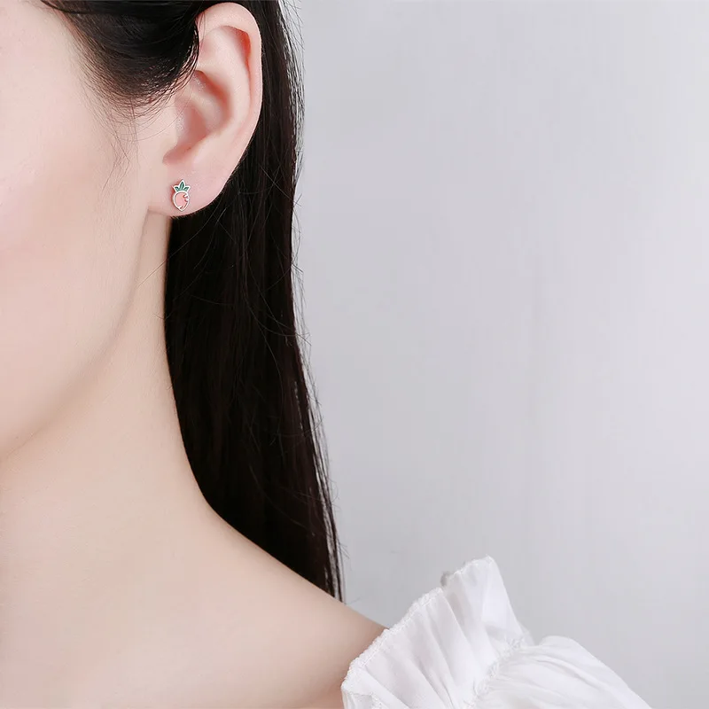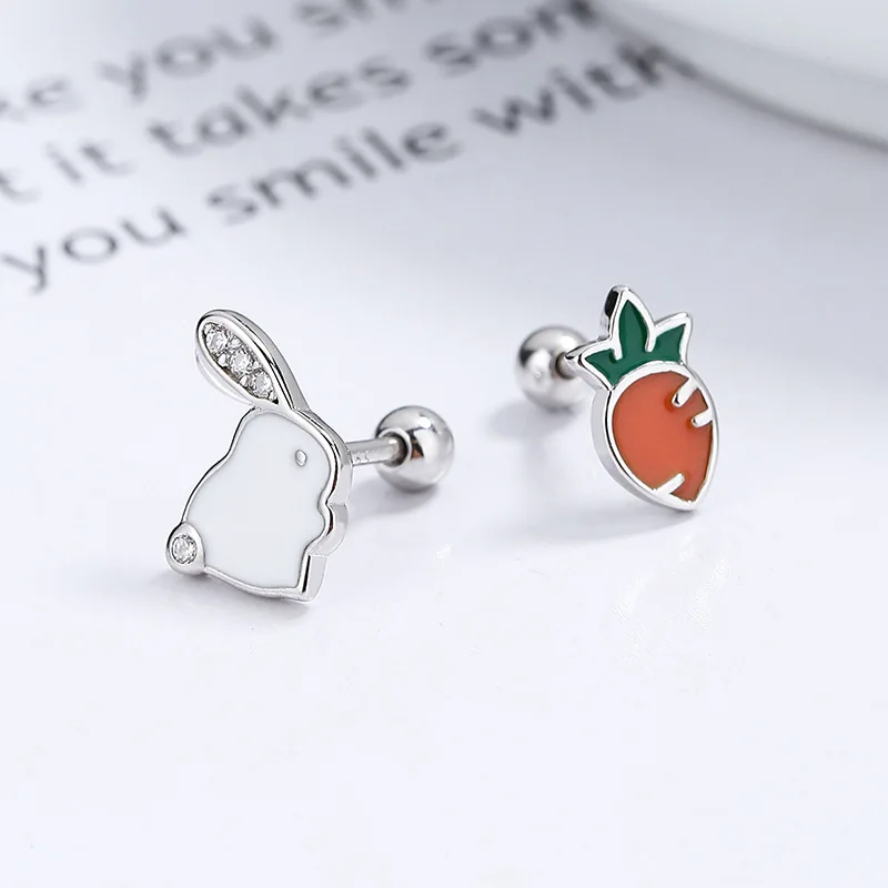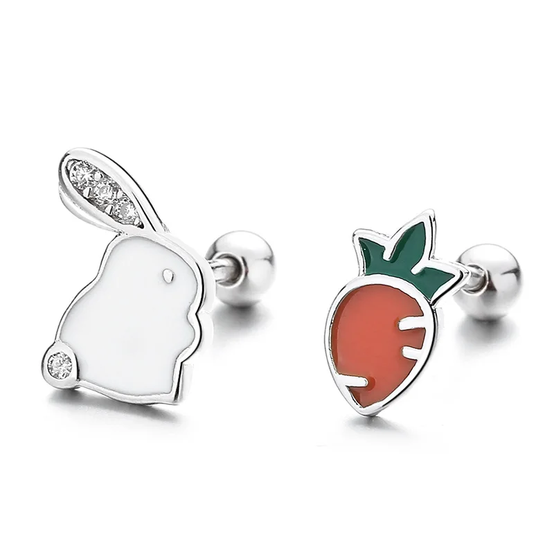 925 Sterling Silver Crystal Rabbit Carrot Asymmetrical Stud Earrings for Women