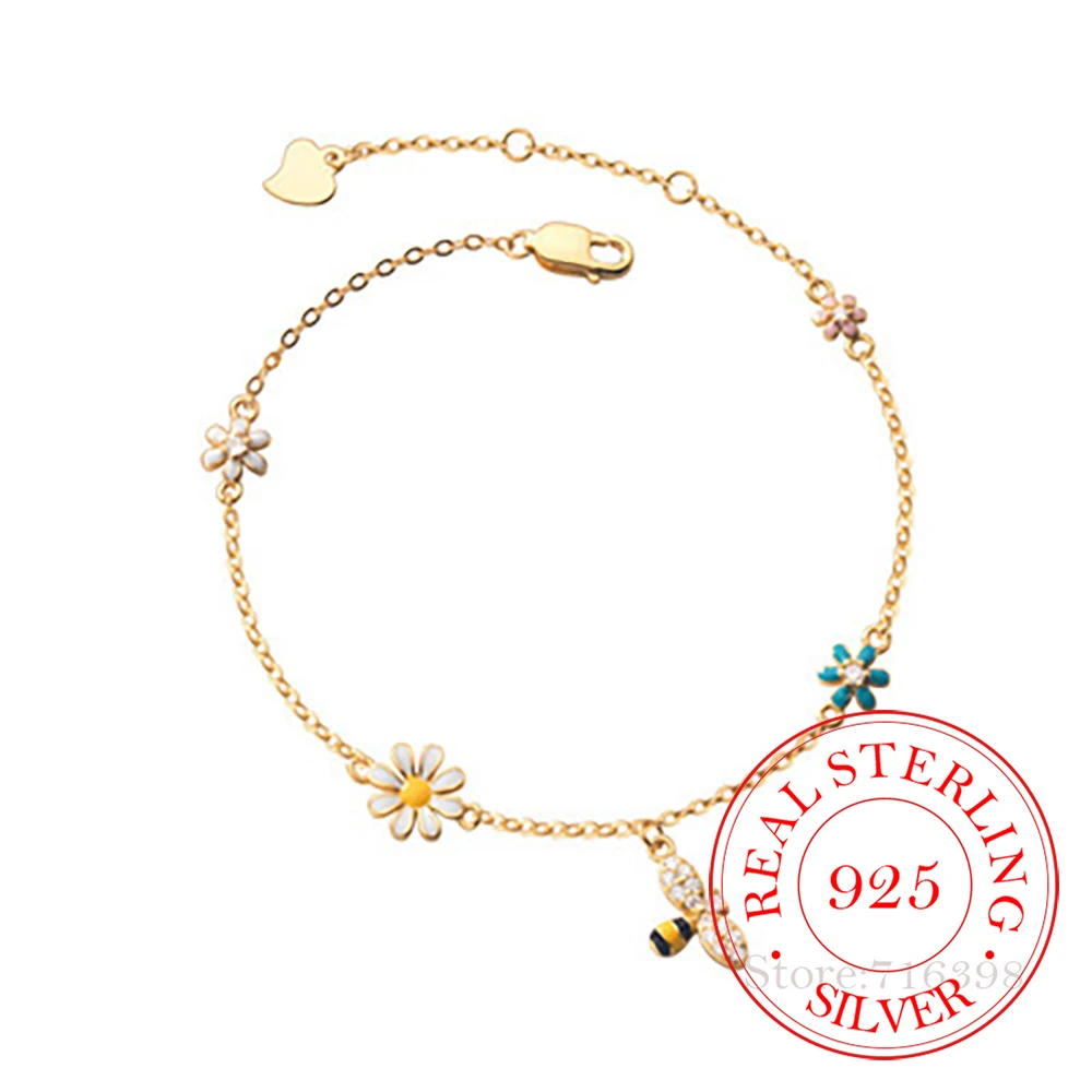 925 Sterling Silver Daisy Bee Charm Bracelet For Women Girls Party Wedding Trendy Bangle Bijoux Luxury Jewelry Accessories
