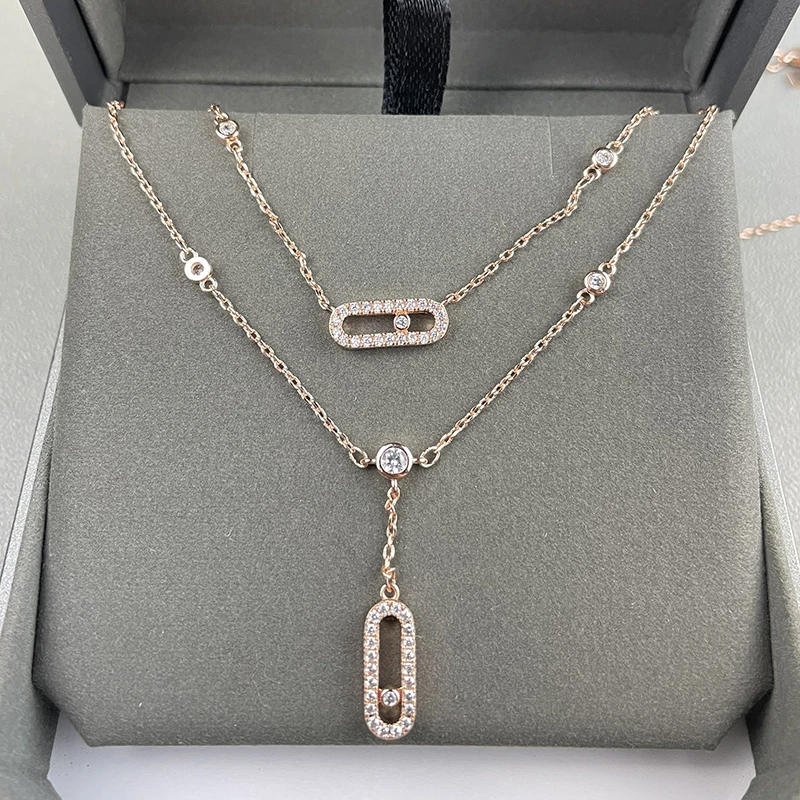 925 Sterling Silver French Three Diamond Mobile Necklace Series Rose Gold Plated Original Brand Exquisite Jewelry Women's Gift