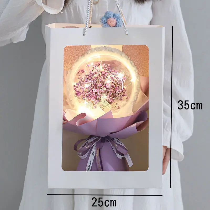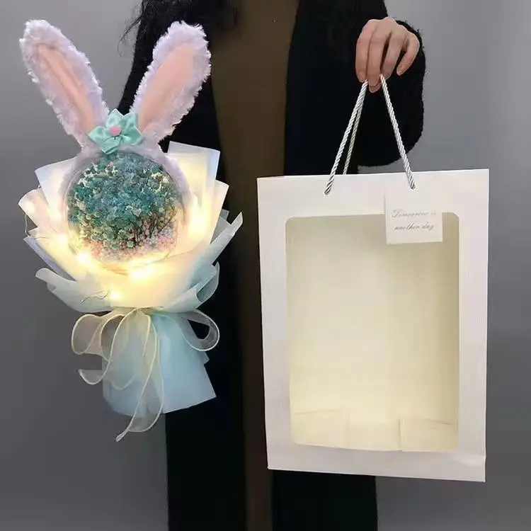 Artificial Flowers Gypsophila Bouquet Rabbit Shape Acrylic Bobo Ball Box for Valentine's Day Birthday Gift