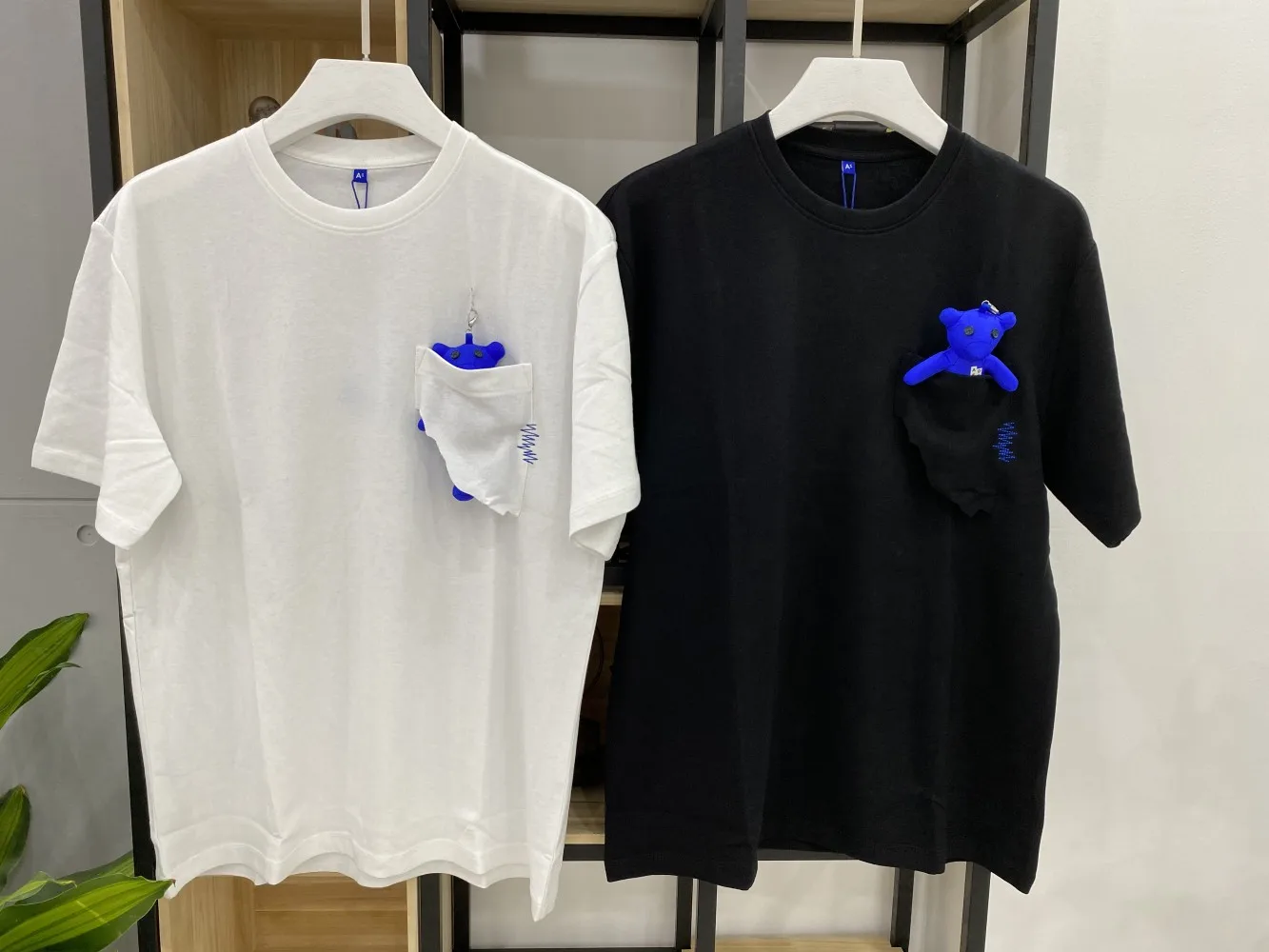 ADER ERROR T-shirt 2021 Men Women Diagonal Cracked Pocket Adererror Tee Portability Little Blue Bear Logo Tops Short Sleeve
