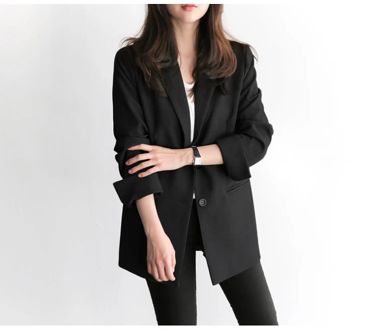 Aelegantmis Elegant Long Sleeve Slim Blazer Jacket Women Casual Black Outwear Spring Autumn Lady Office Suit Blazer Plus Size
