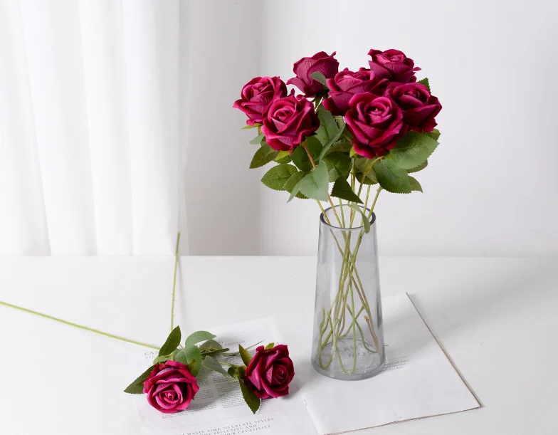 Artificial Single Flannel Rose for DIY Fake Bouquet Arrangement Valentine's Day Gift