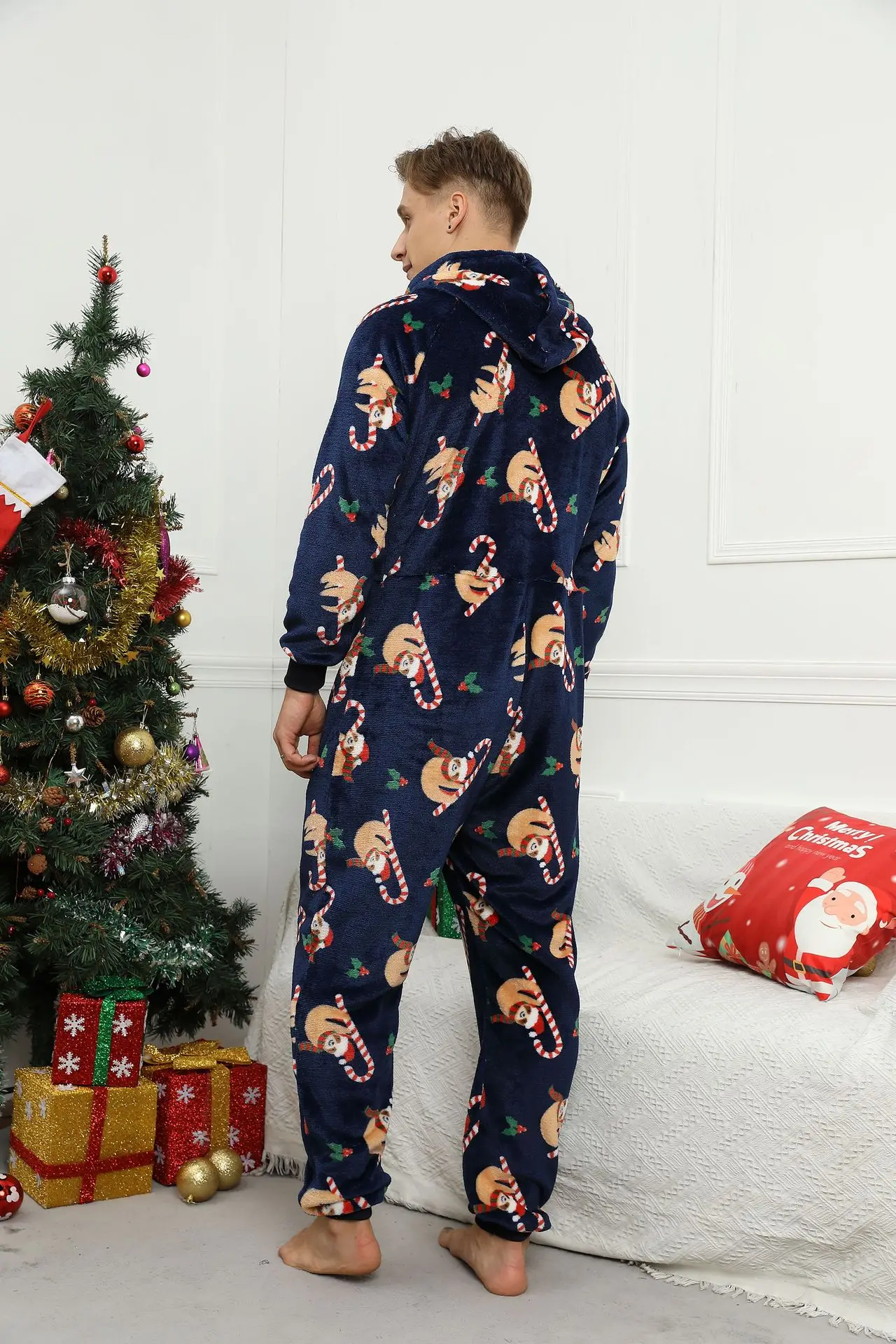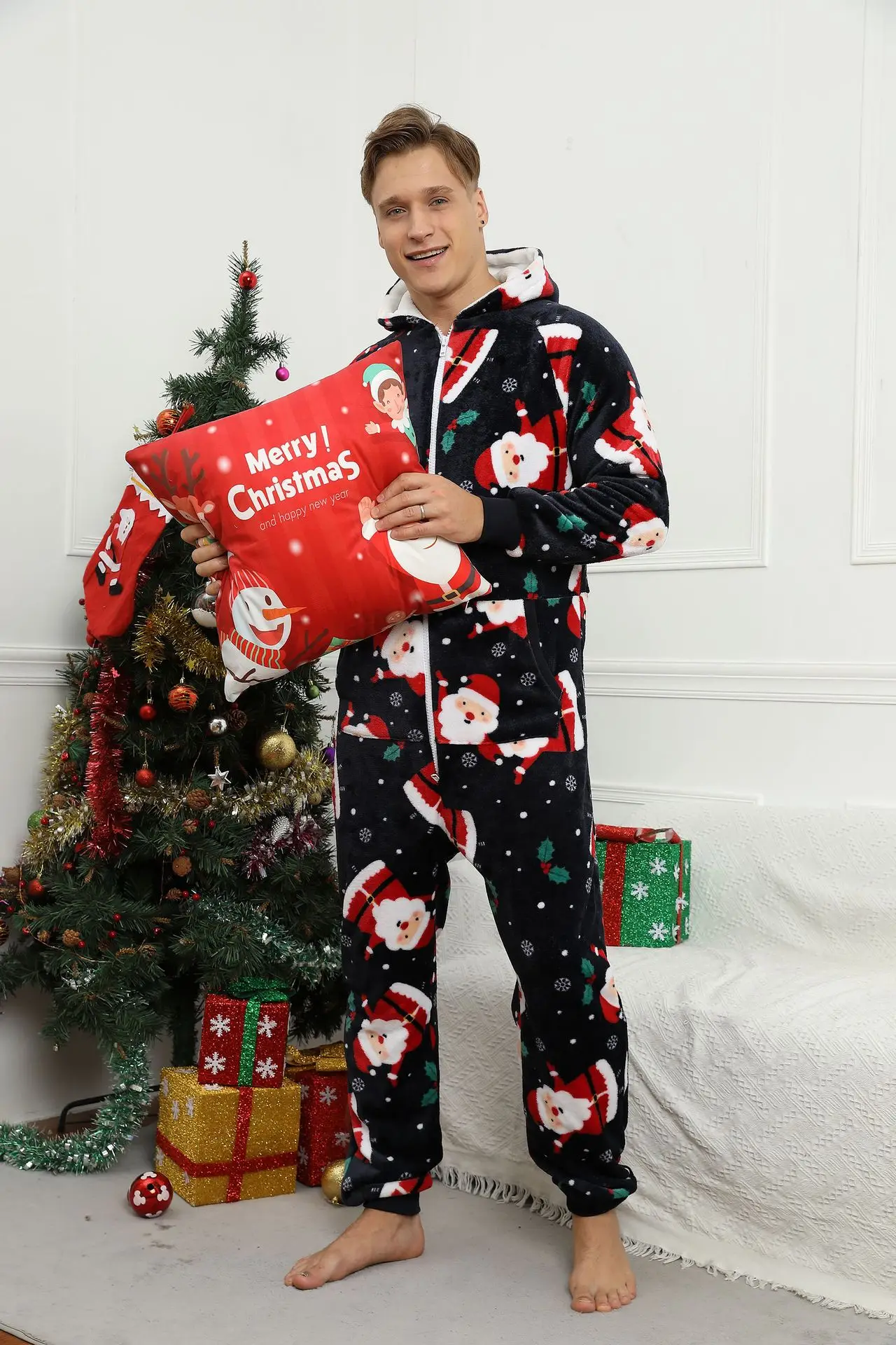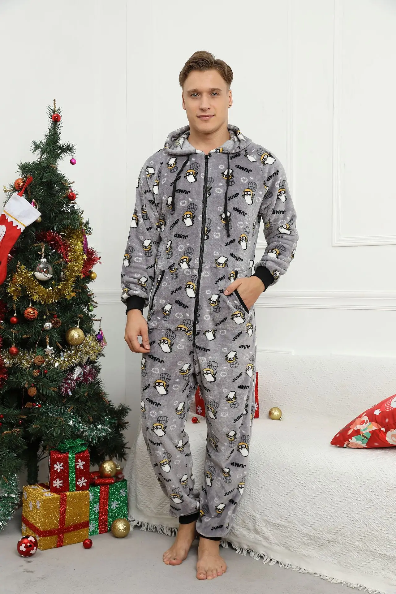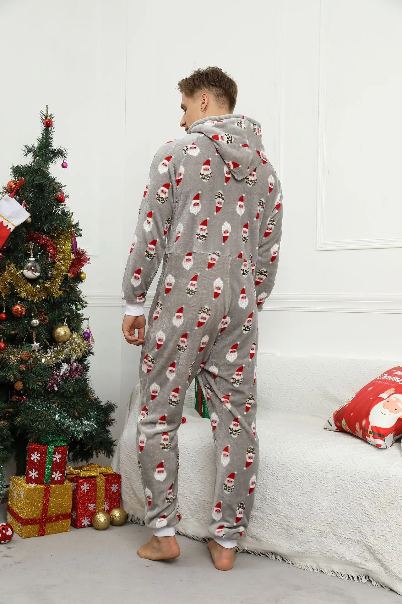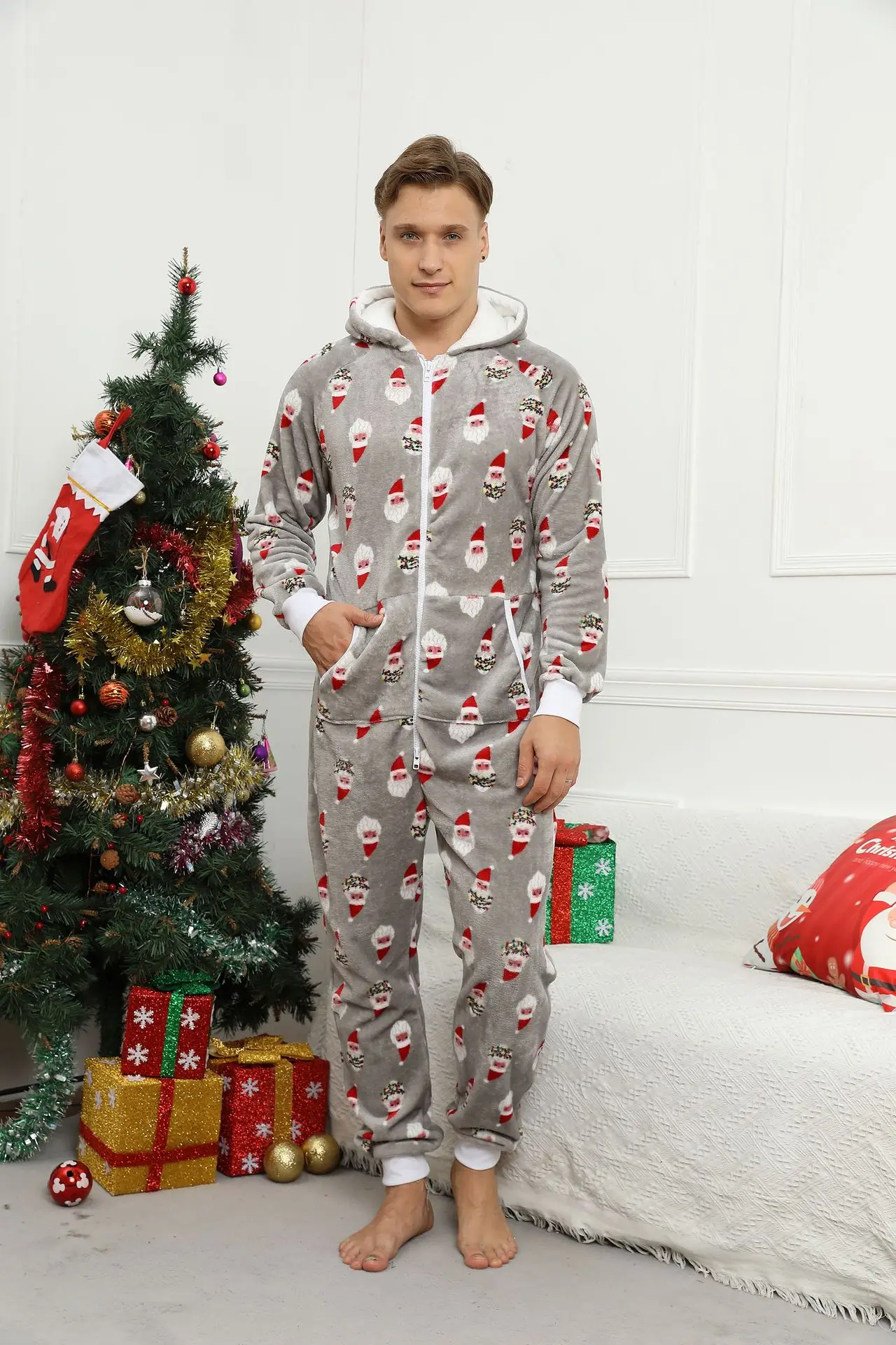 Autumn And Winter Men Christmas Hooded Onesies Winter Onesie Flannel Zipper Jumpsuit Costume Adults Sleepwear Pajamas