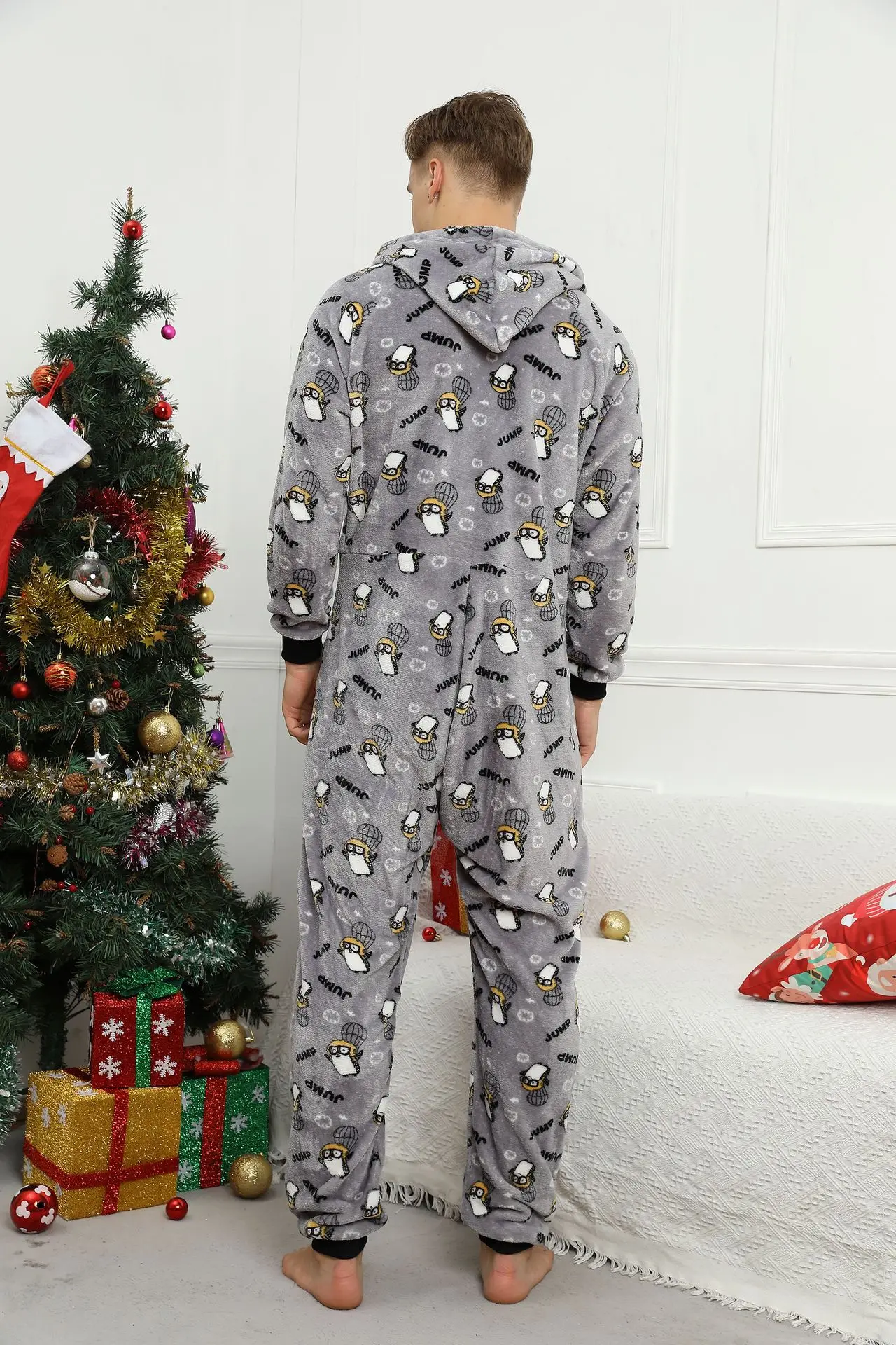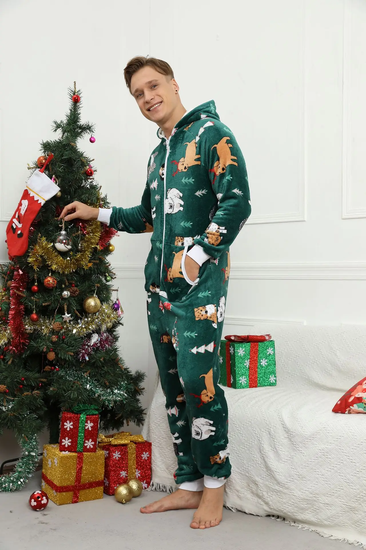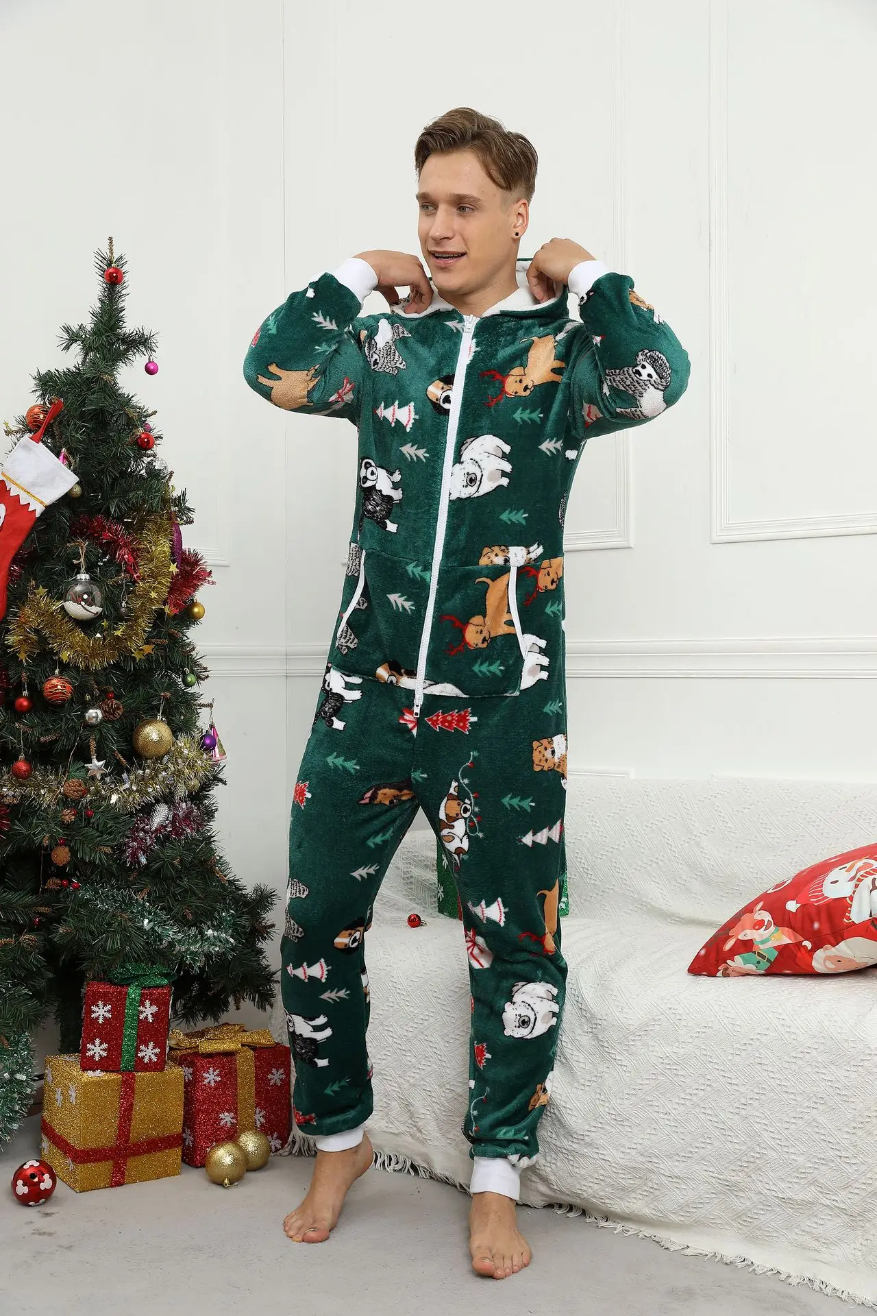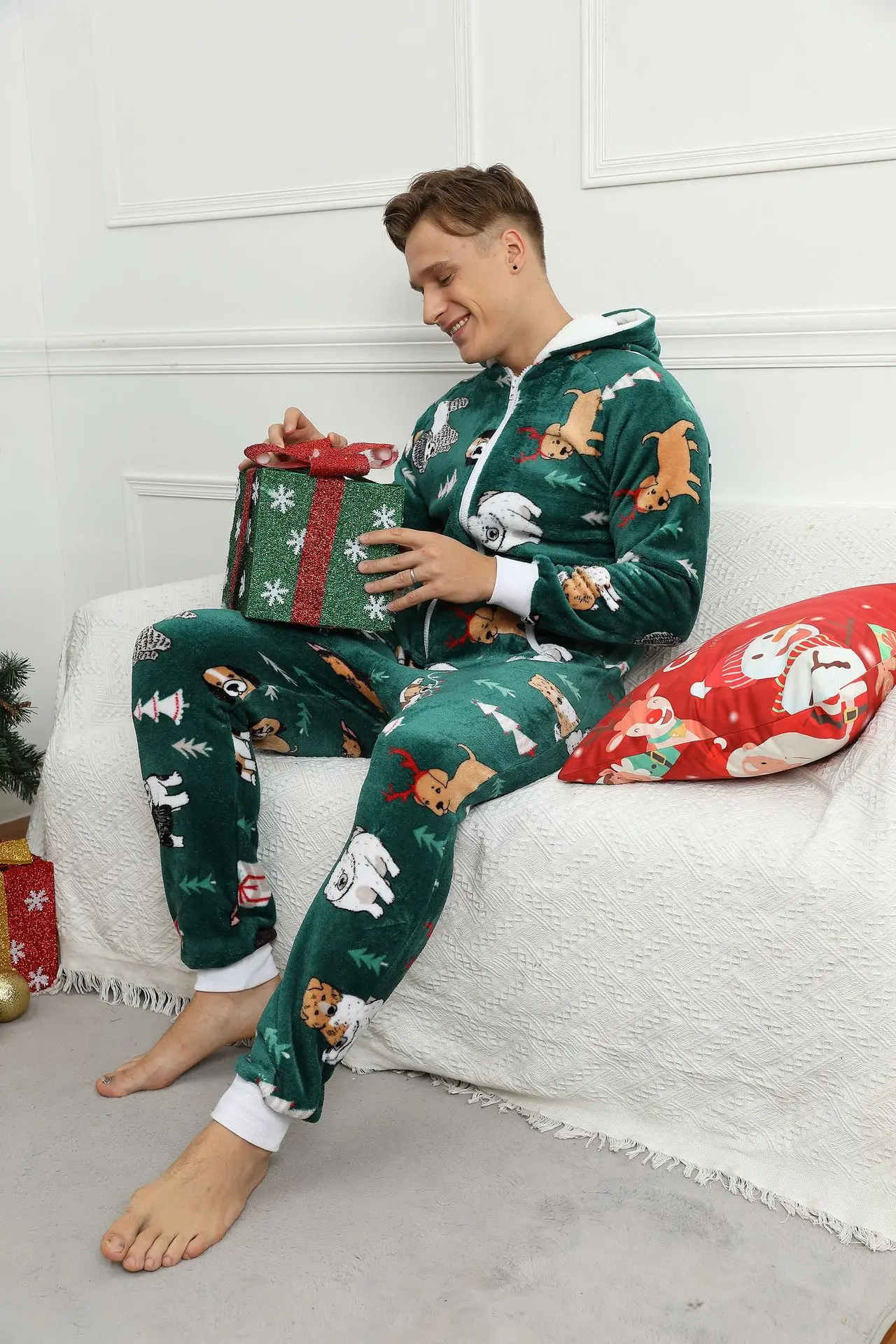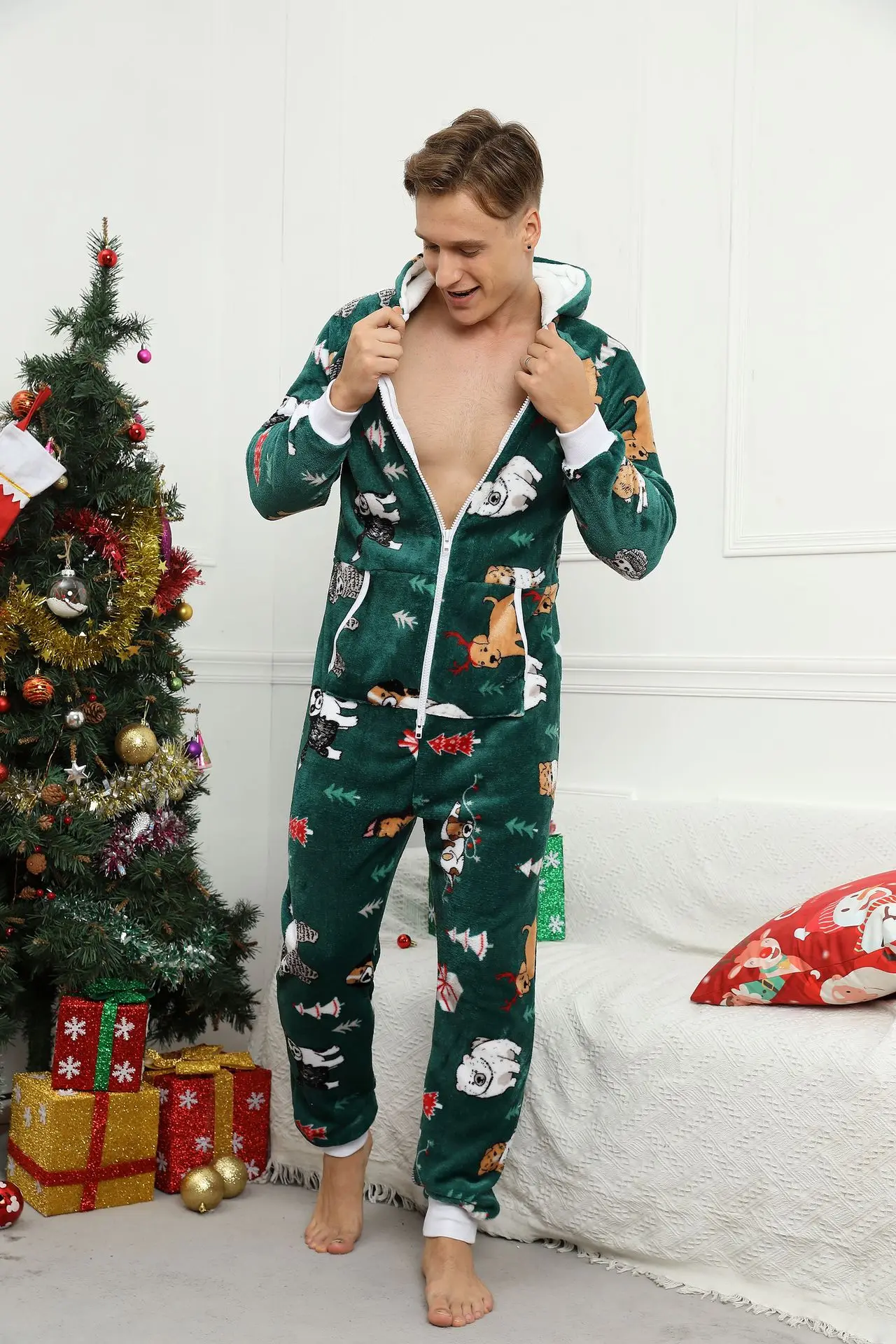 Autumn And Winter Men Christmas Hooded Onesies Winter Onesie Flannel Zipper Jumpsuit Costume Adults Sleepwear Pajamas