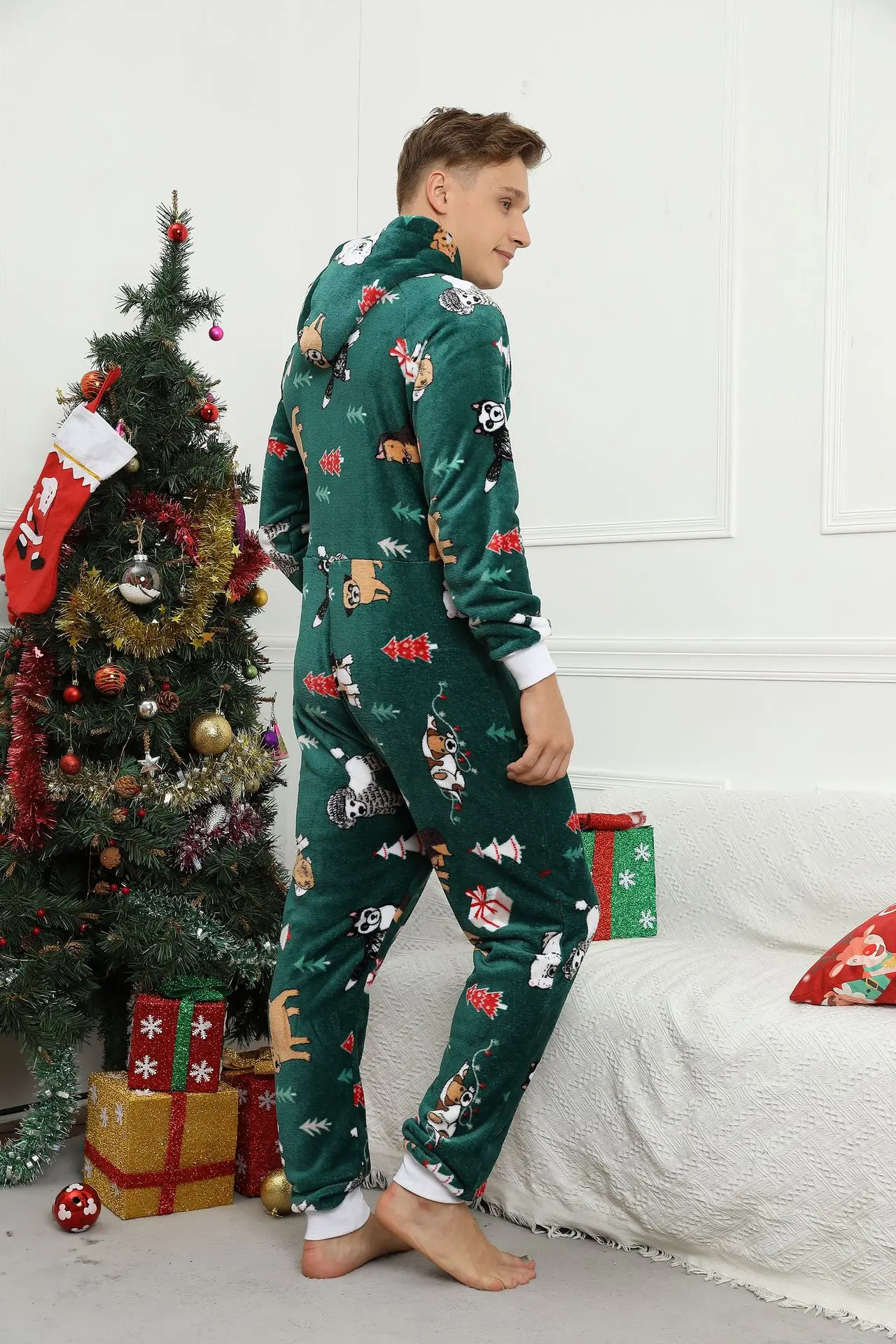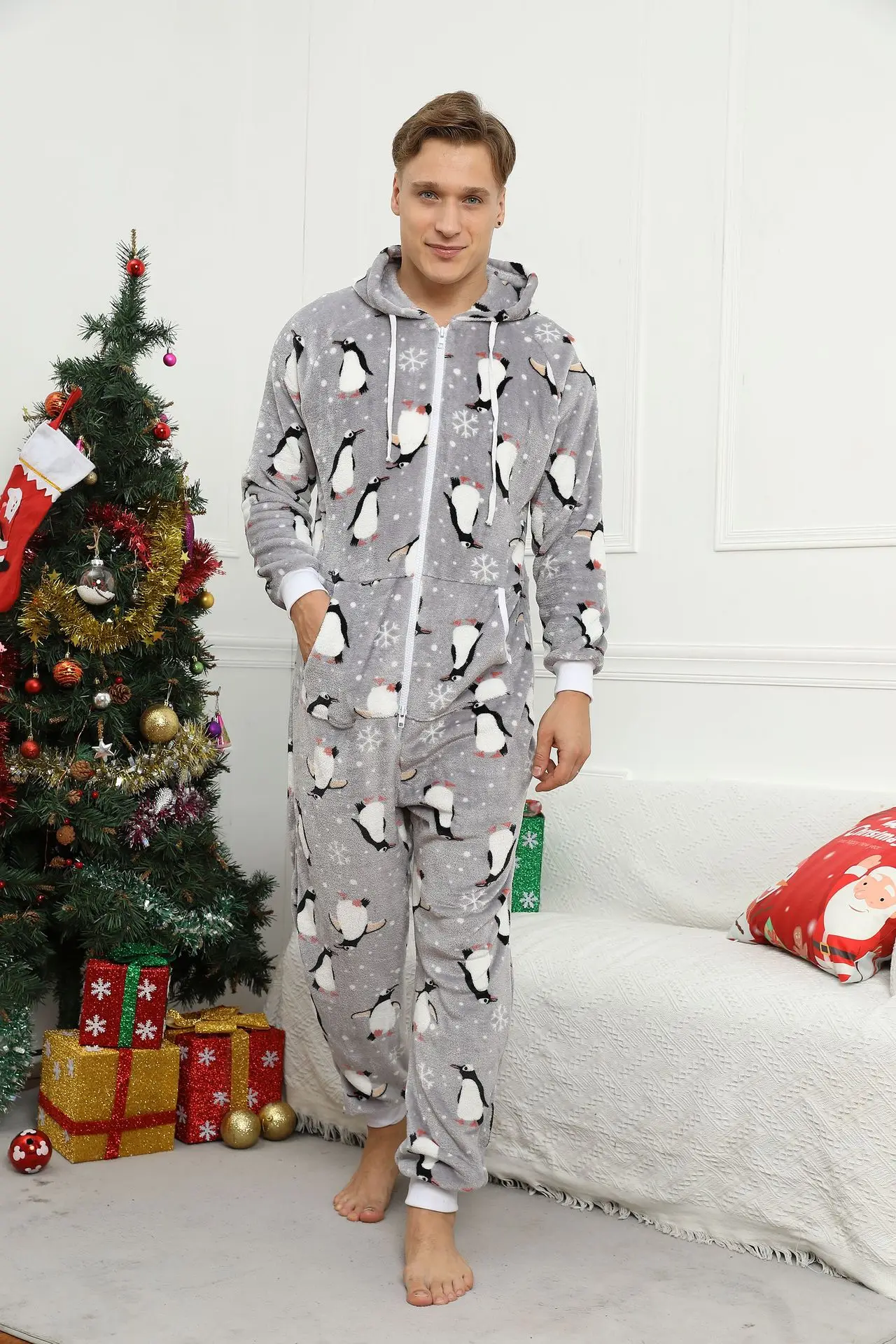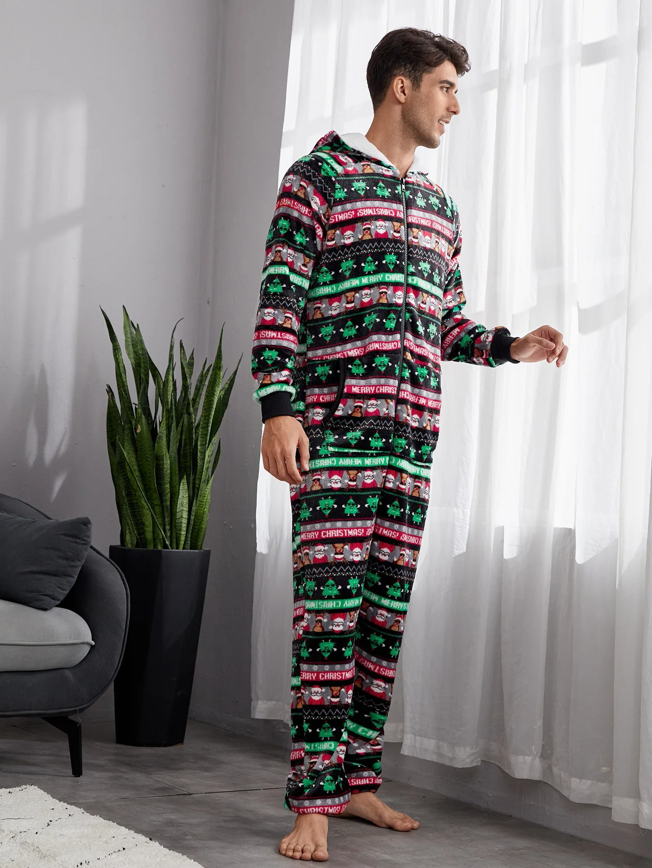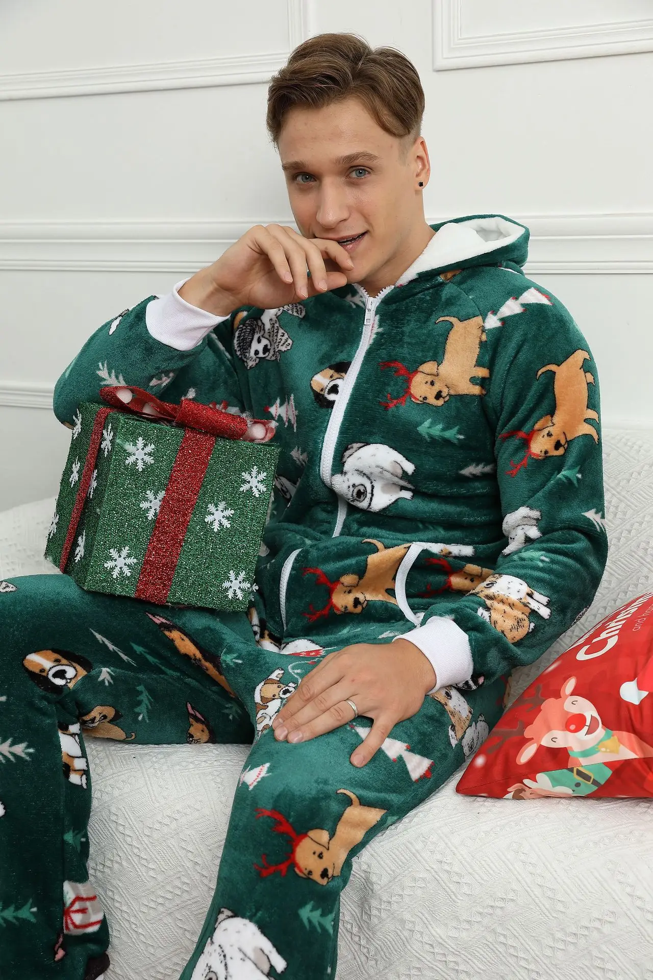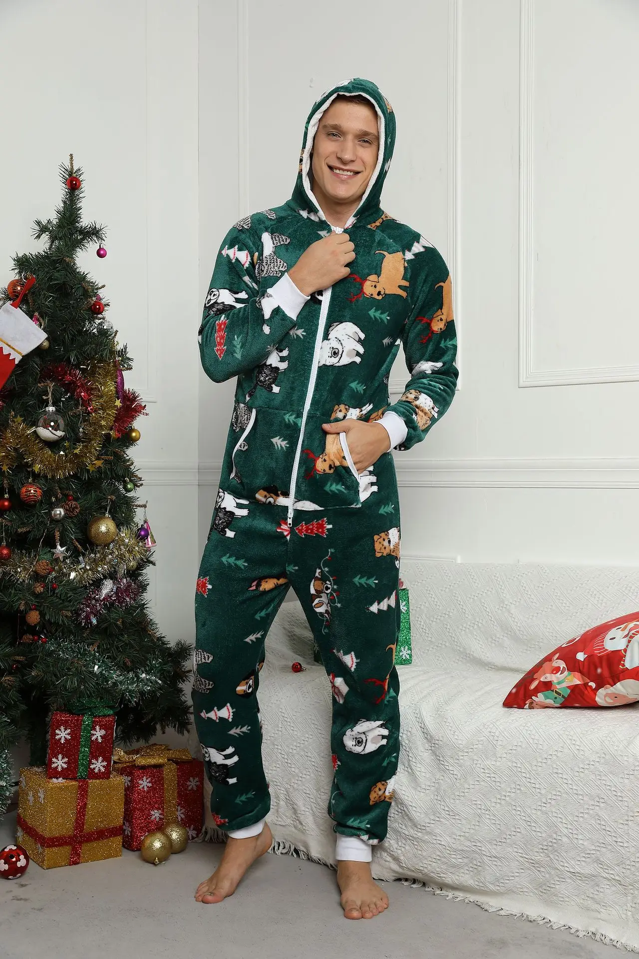 Autumn And Winter Men Christmas Hooded Onesies Winter Onesie Flannel Zipper Jumpsuit Costume Adults Sleepwear Pajamas