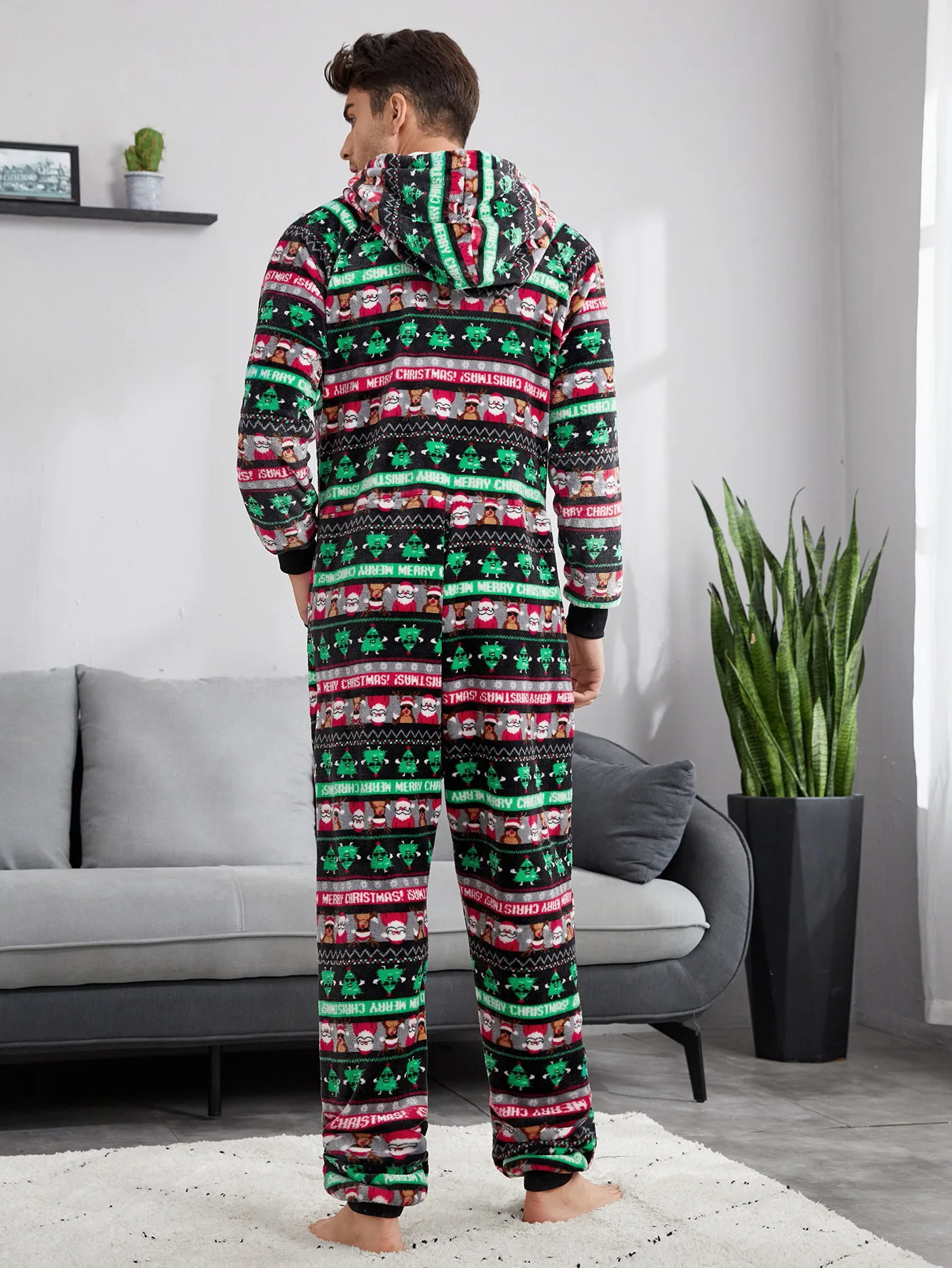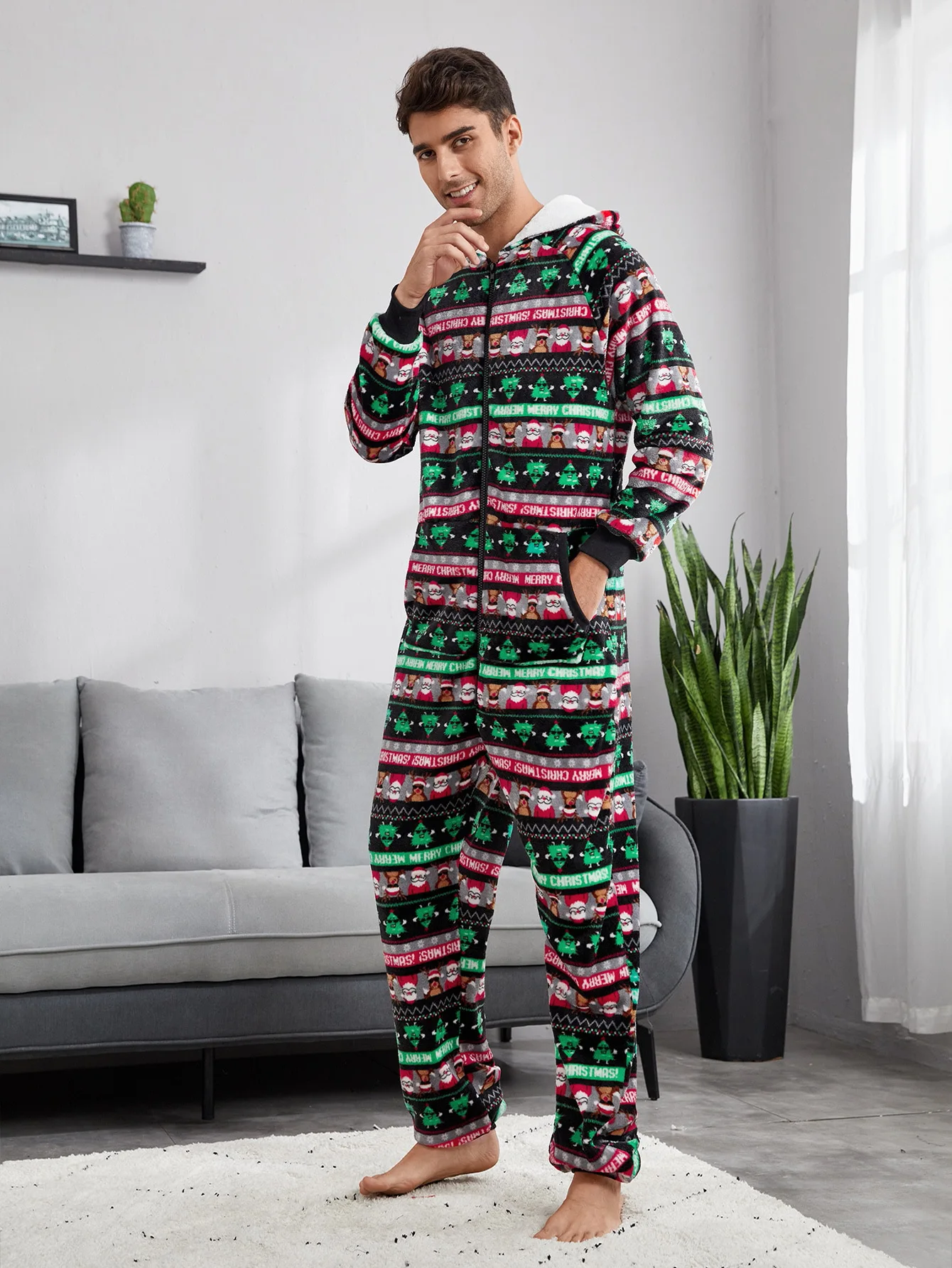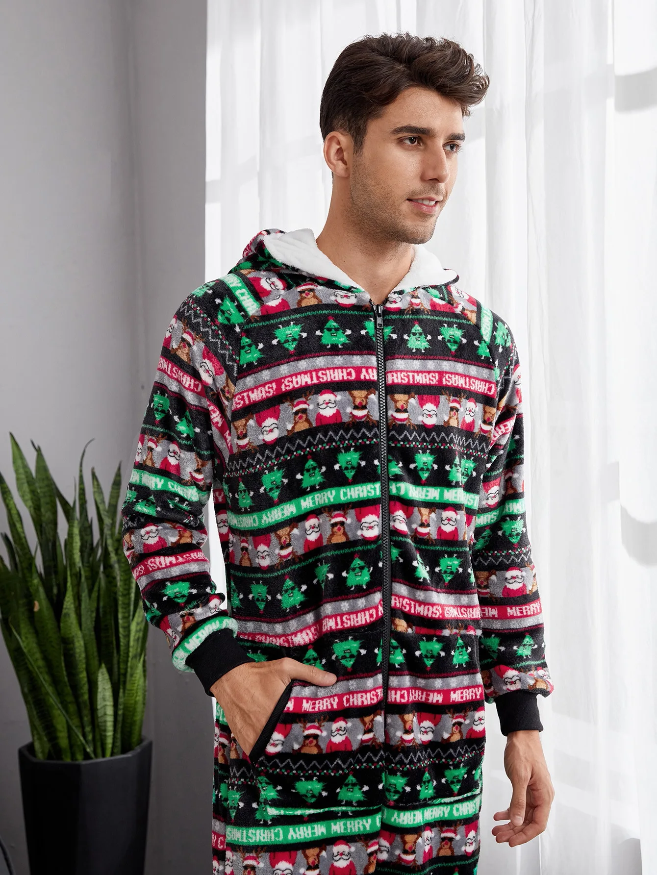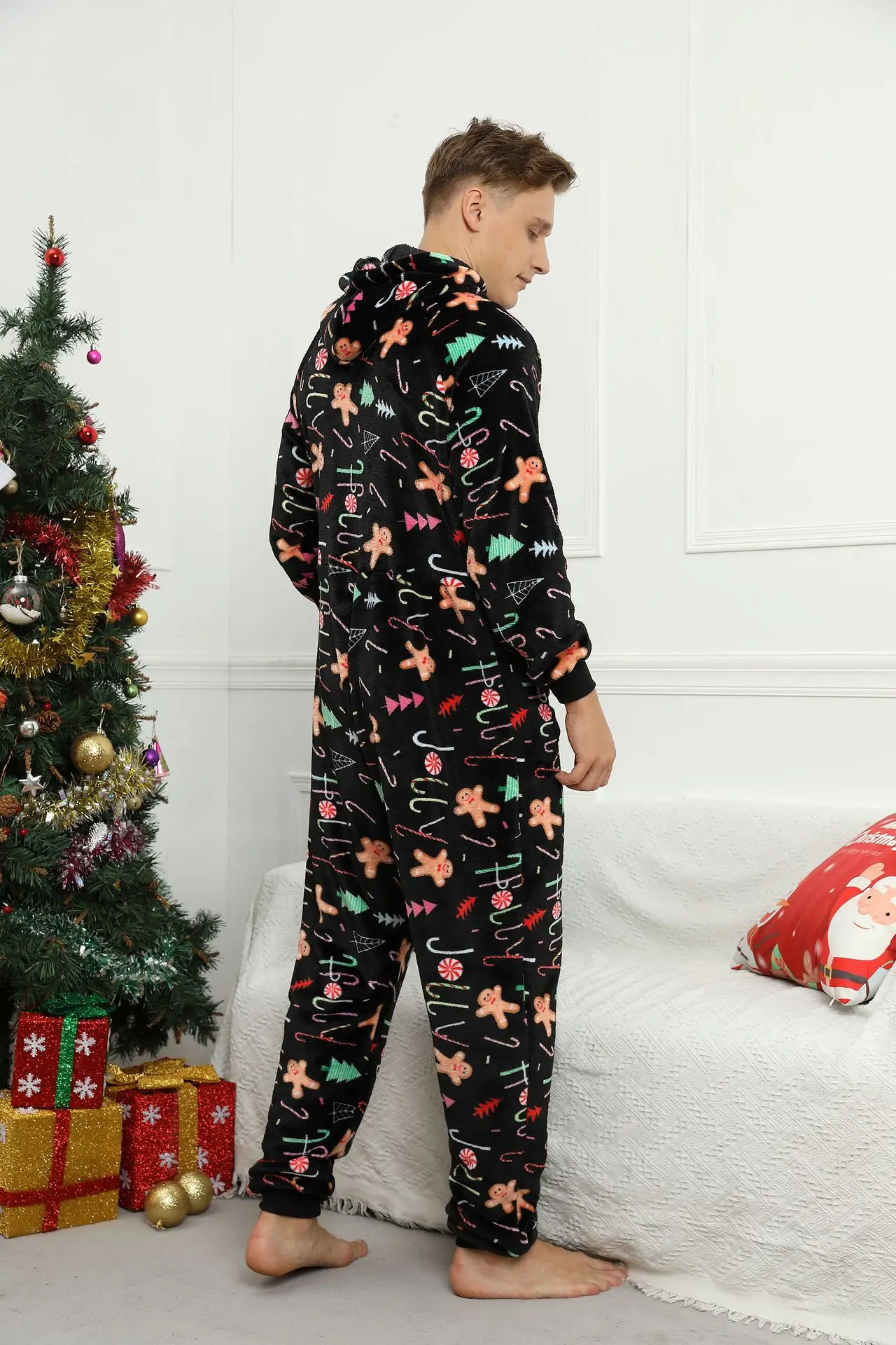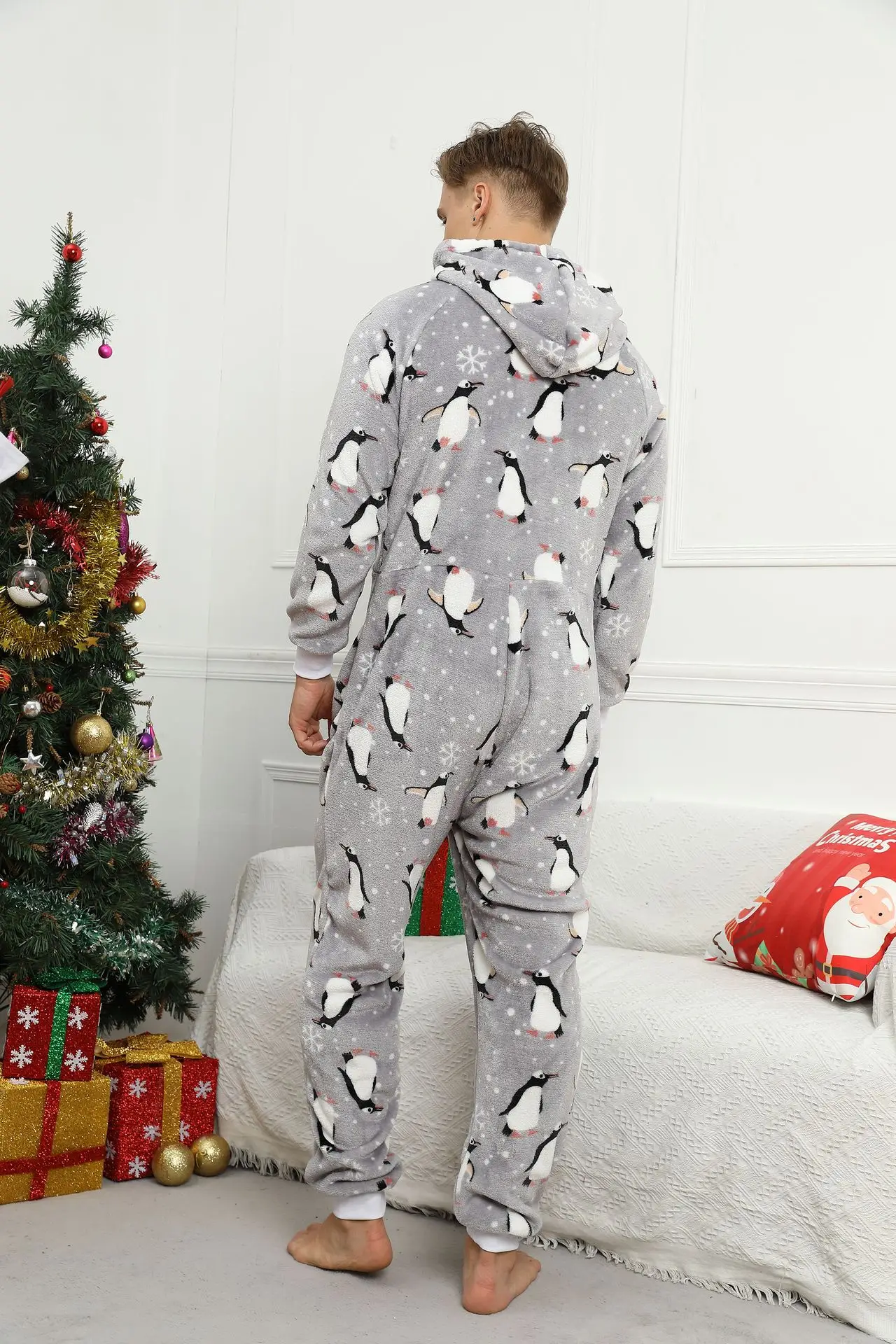 Autumn And Winter Men Christmas Hooded Onesies Winter Onesie Flannel Zipper Jumpsuit Costume Adults Sleepwear Pajamas