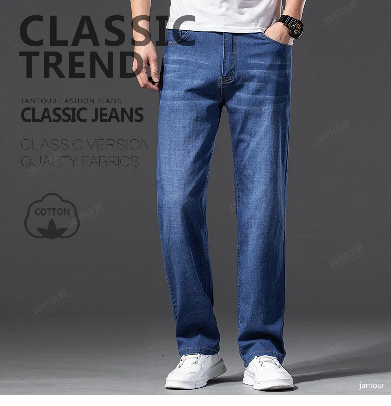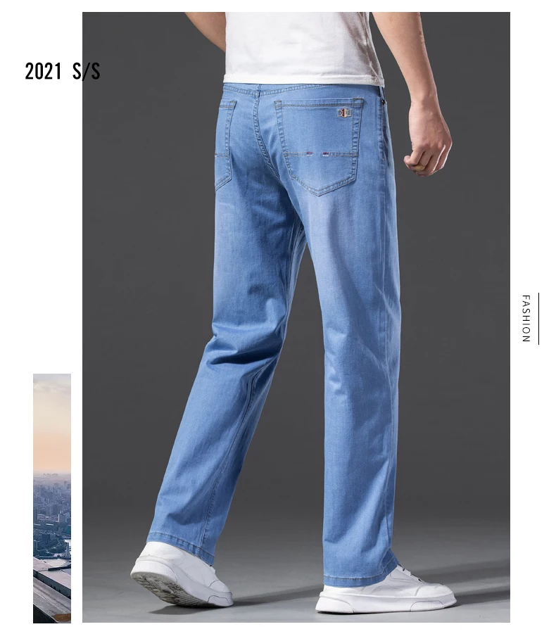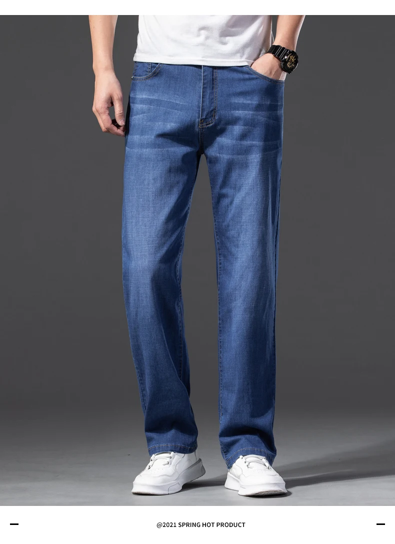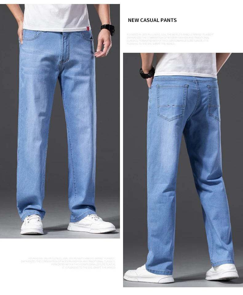 Autumn New Men's Lyocell Light Blue Jeans Plus Size 40 42 44 46 Loose Straight Denim Pants Male Classic Brand Trousers Male