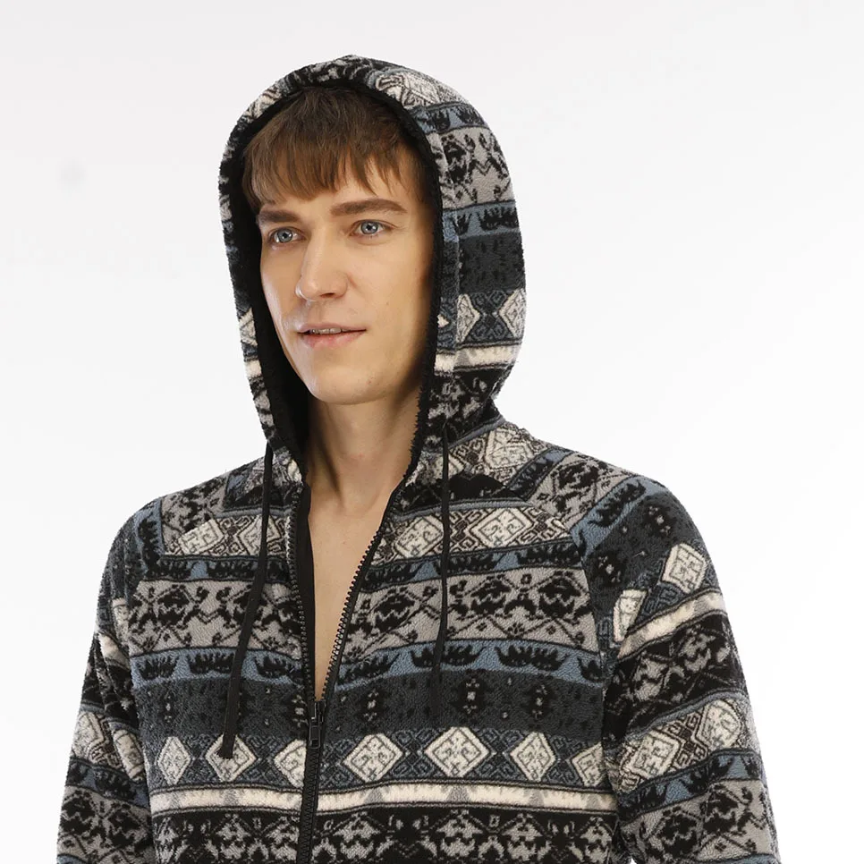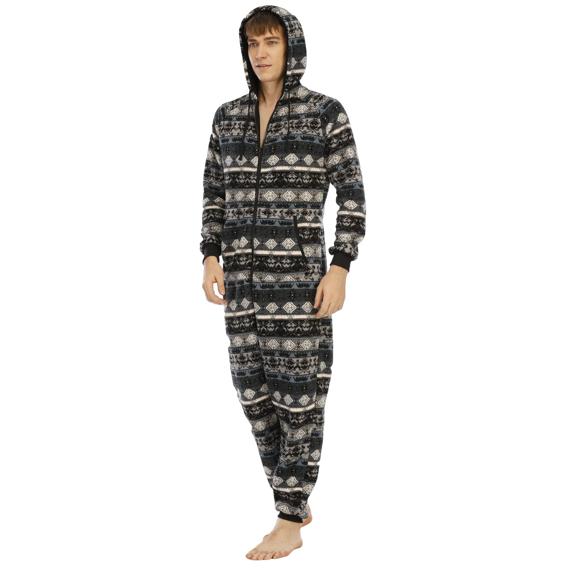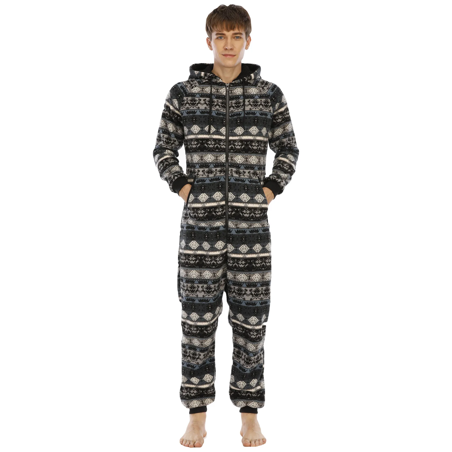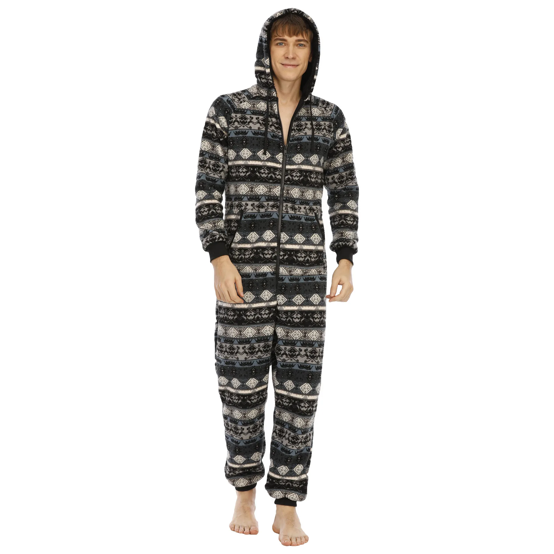 Autumn Winter Warm Men's Flannel Pajama Set Hoodies Overalls Men Christmas Onesies Zipper Jumpsuit Long Sleeve Male Clothes