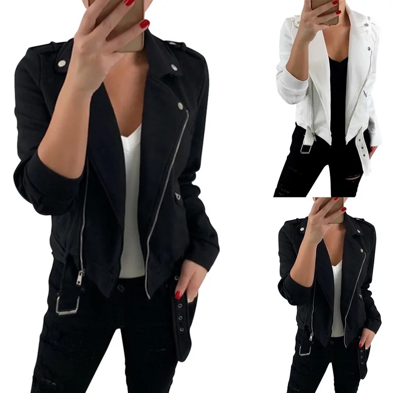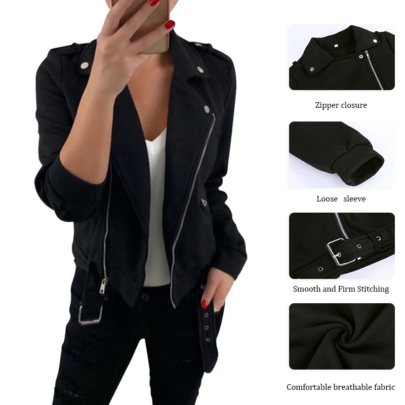 Autumn Women Basic Jackets Black Slim Lady Jacket Sweet Female Zipper Femme Outwear Plus Size Coats Long Sleeve Jackets 3XL