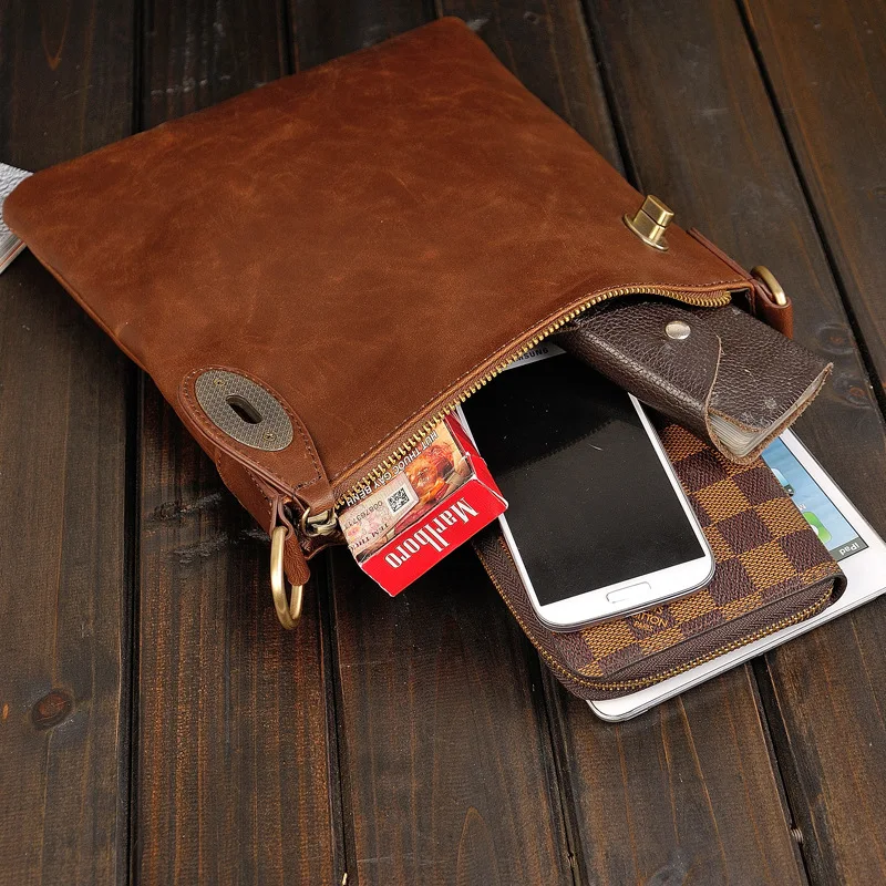 Bandolera Hombre New Fashion Man Purse Shoulder Bag Retro Leather Tote Bag Personality Lock Crossbody Designer Ipad Bags For Men