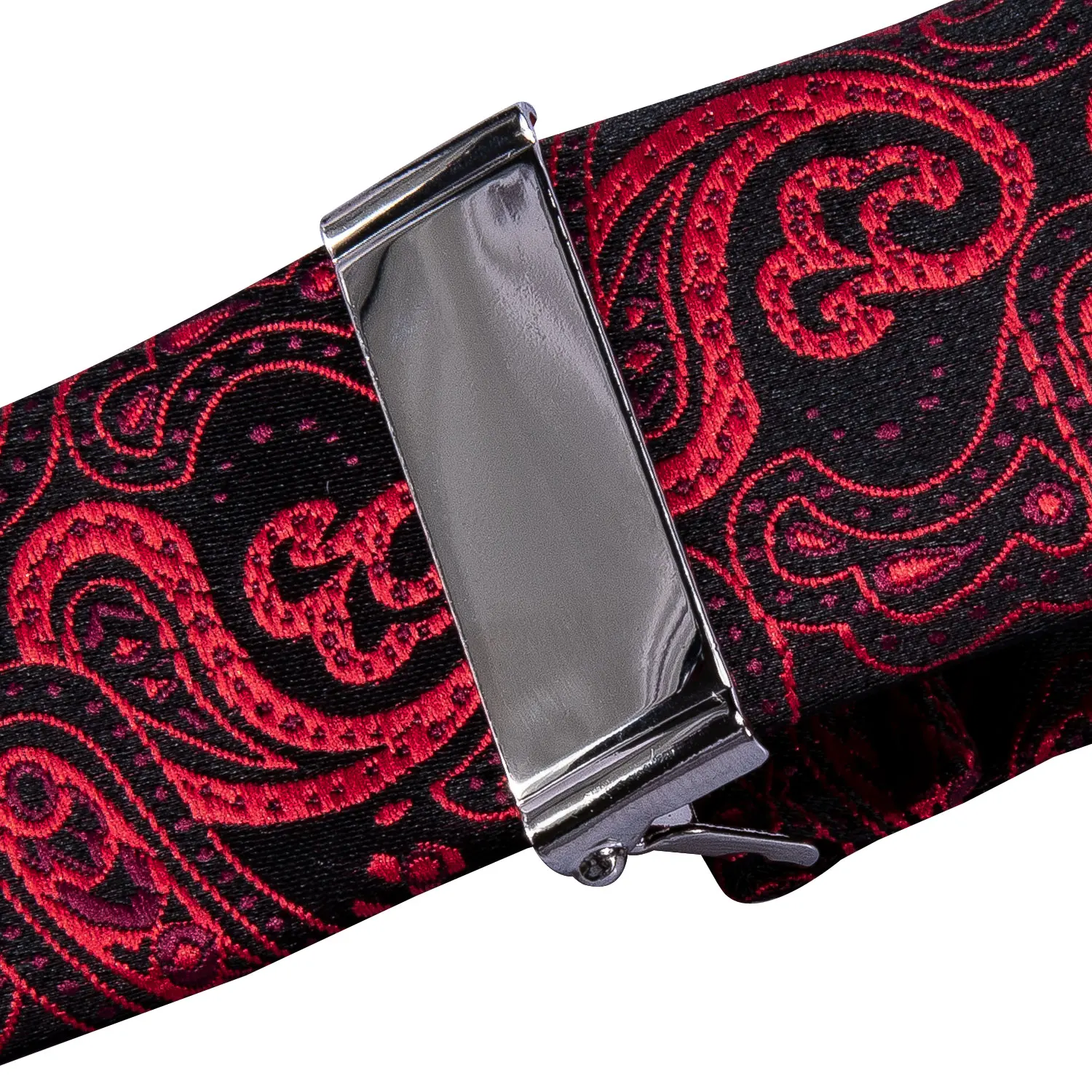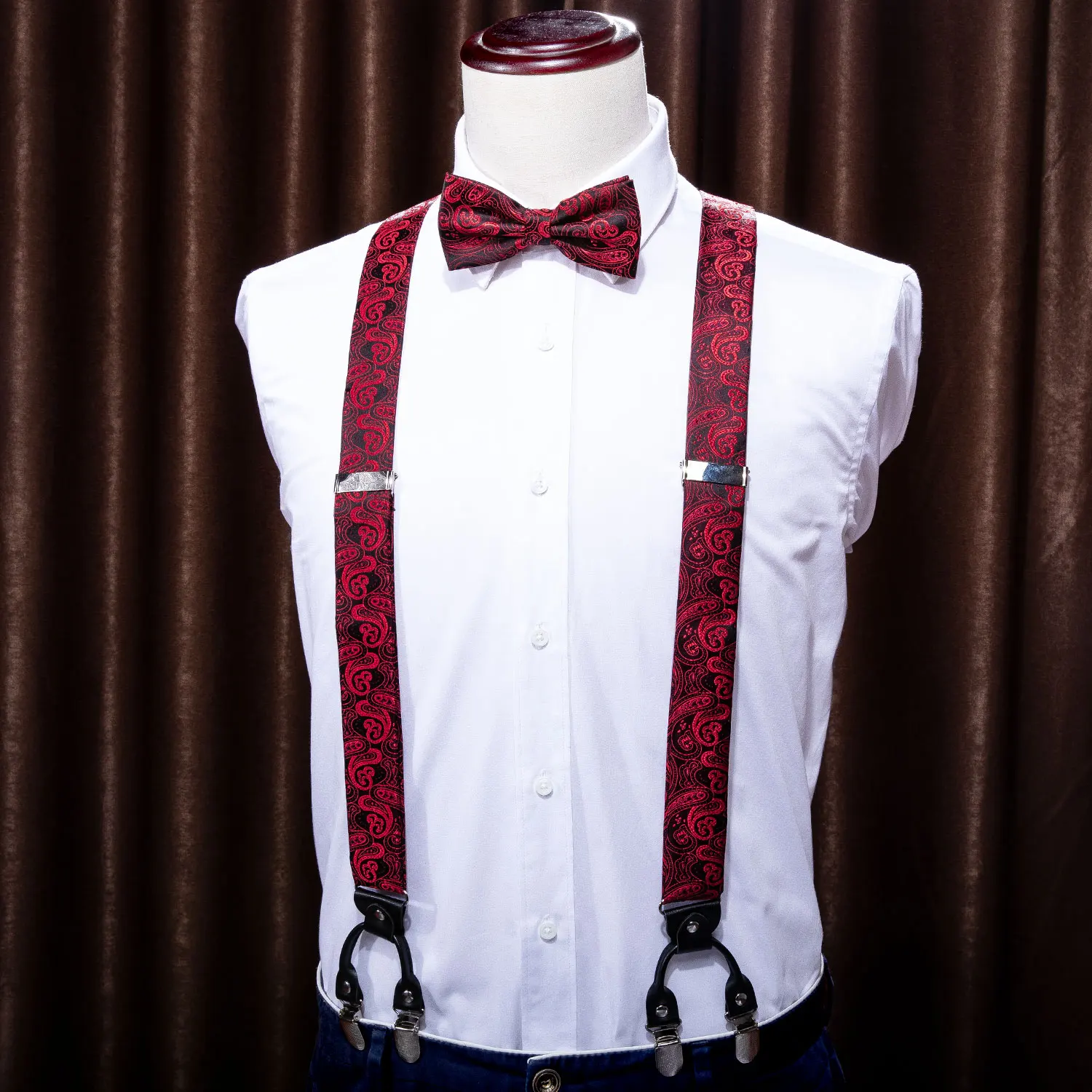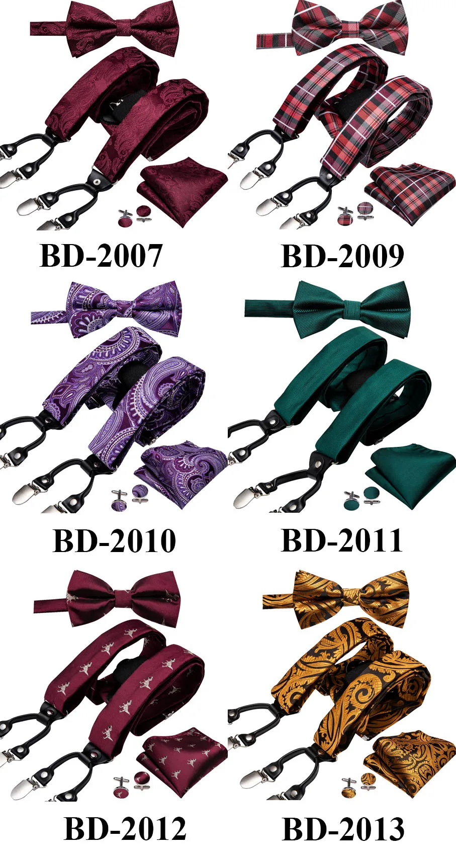 Barry.Wang Men/Women Silk Suspenders Clip-on Braces Elastic Y-Shape Adjustable Red Black Suspenders Bowtie Cufflinks Set BD-2001