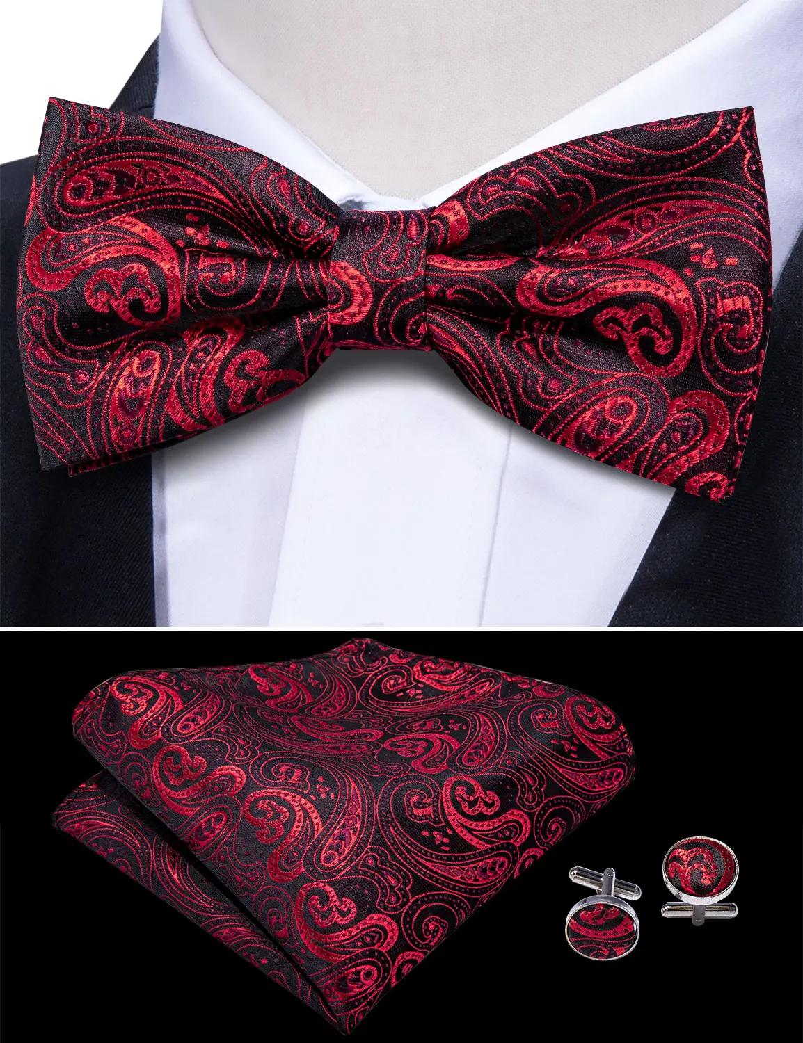 - Attached - Bow tie, Pocket Square, Cufflinks