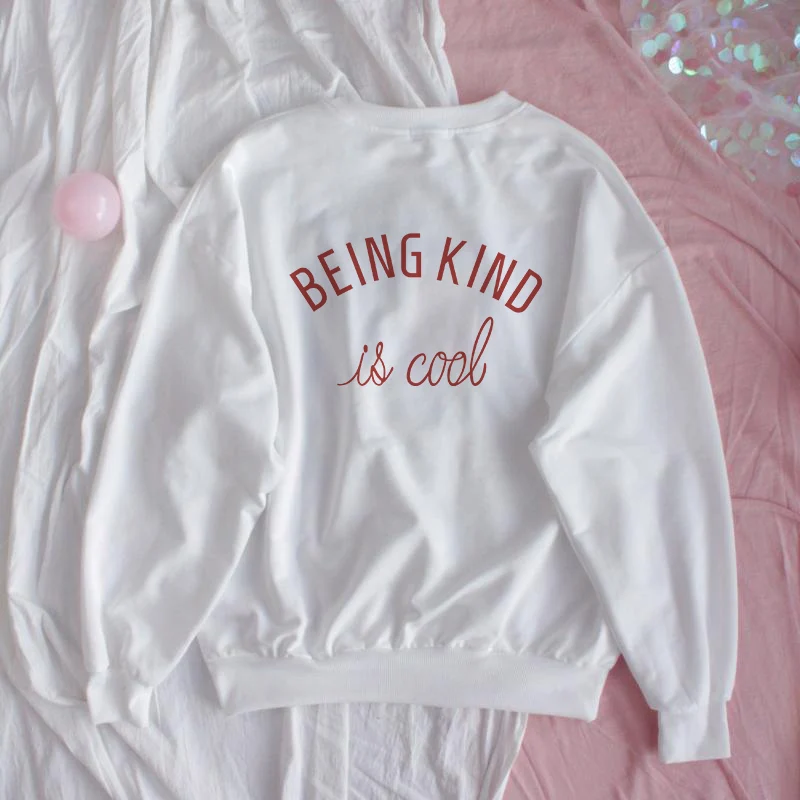 Being Kind Is Cool Letter Print Harajuku Sweatshirts Women Outerwear Clothes Woman Streetwear Causal Loose Oversized Tops