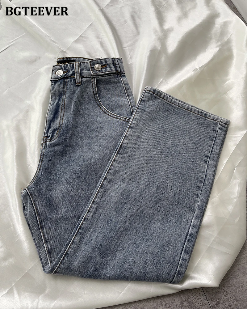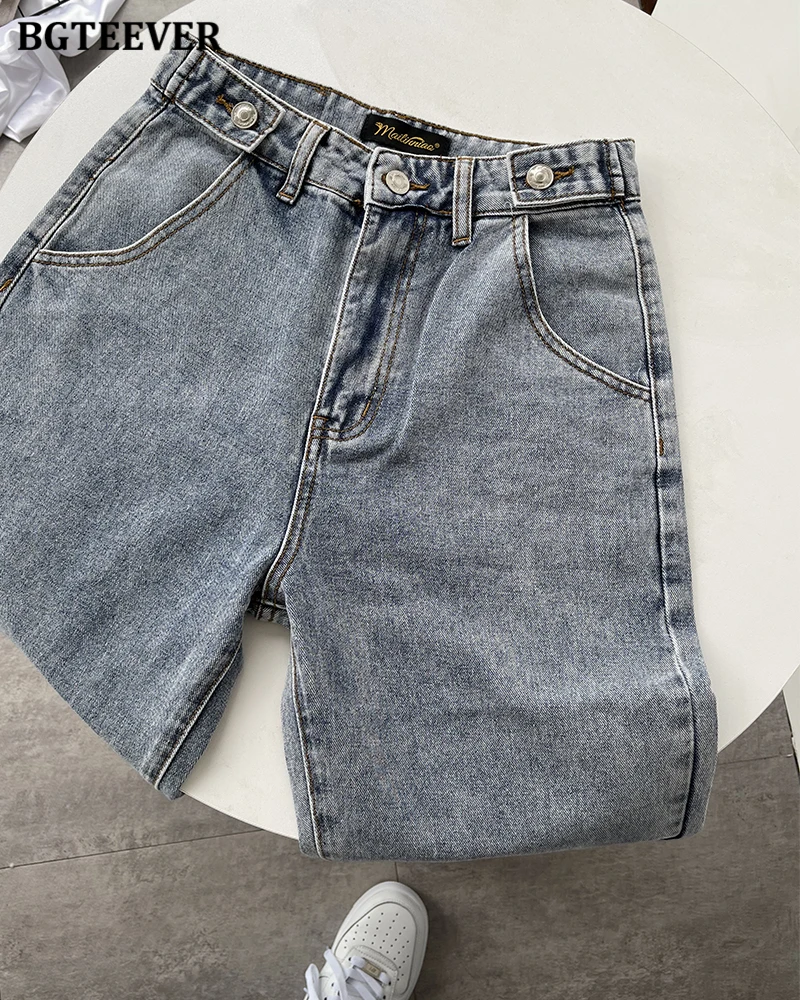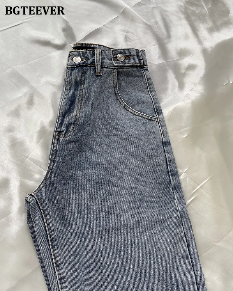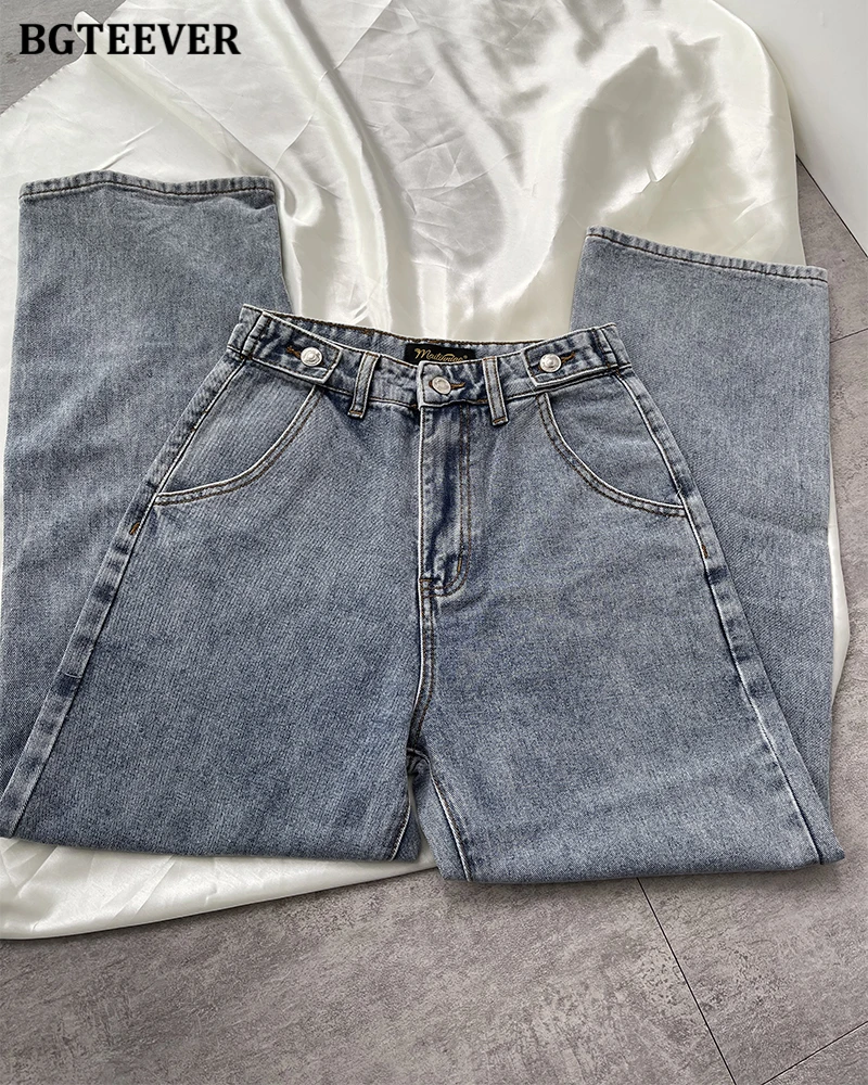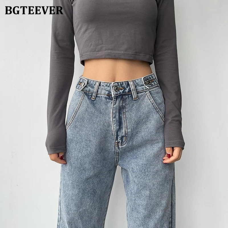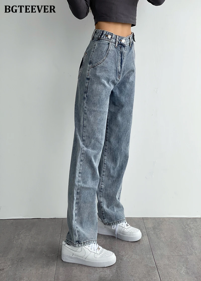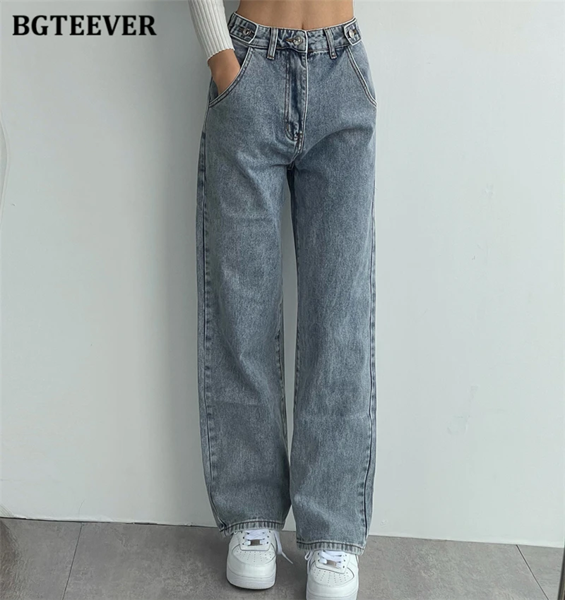 BGTEEVER Casual High Waist Heart Pockets Women Denim Jeans Streetwear Long Straight Leg Jeans Pants Female Trousers 2021 New
