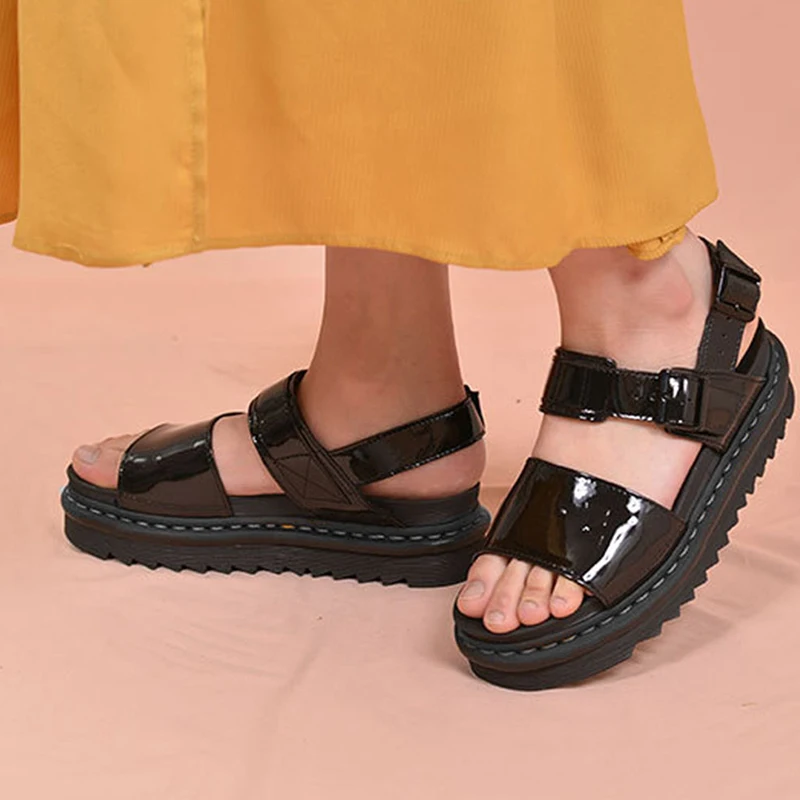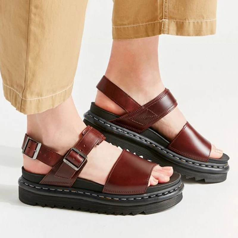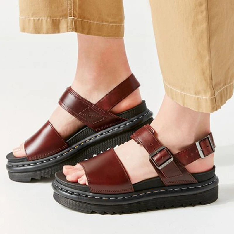 Big Size 43 Split Leather New Ladies Brand Sandals Luxury Design Punk Platform Women Sandals Med Wedges Summer Shoes Woman