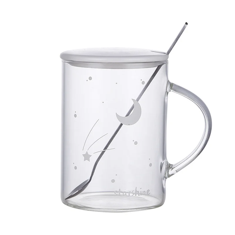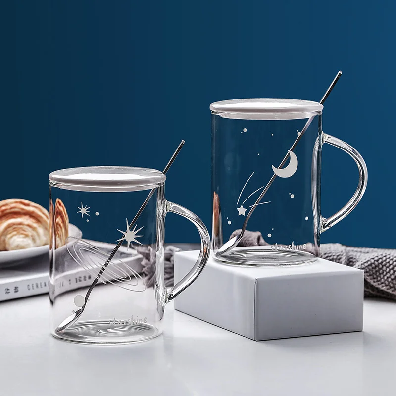 Birthday Gift For Girlfriend Boyfriend Luminous Glass Cup With Spoon And Lid Anniversary Present Wedding Valentines Day Gift