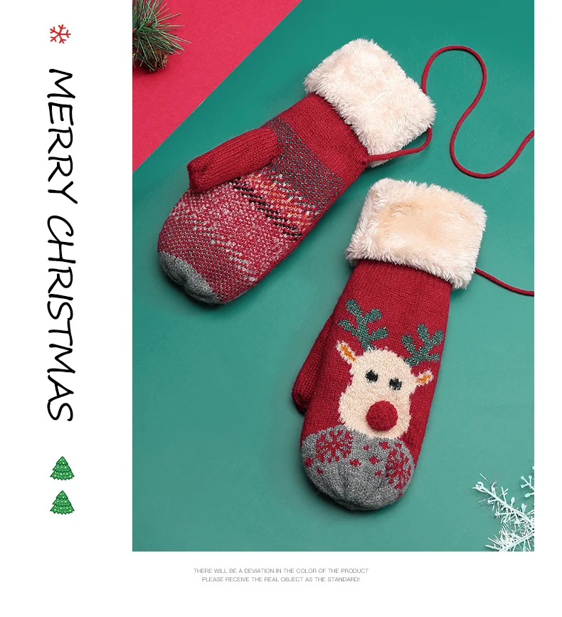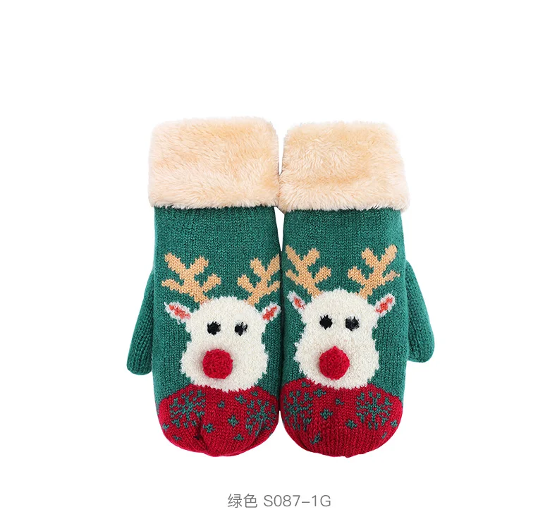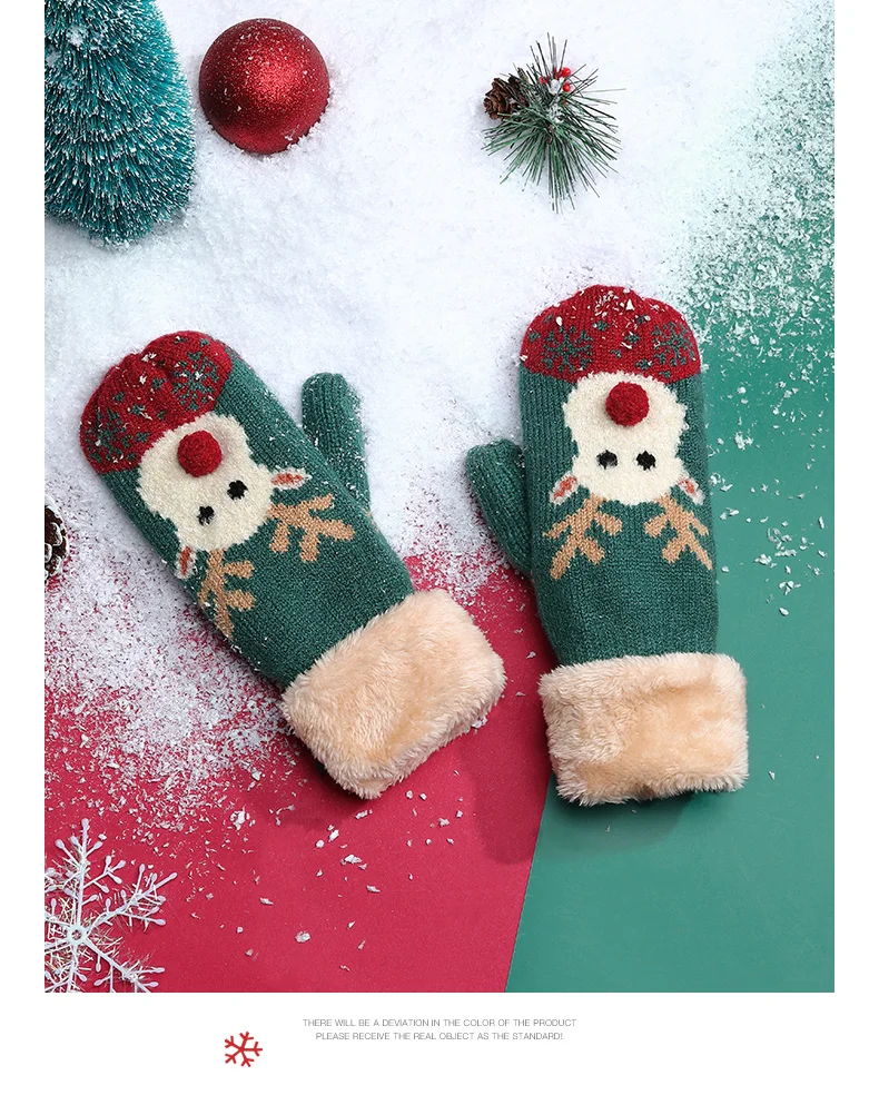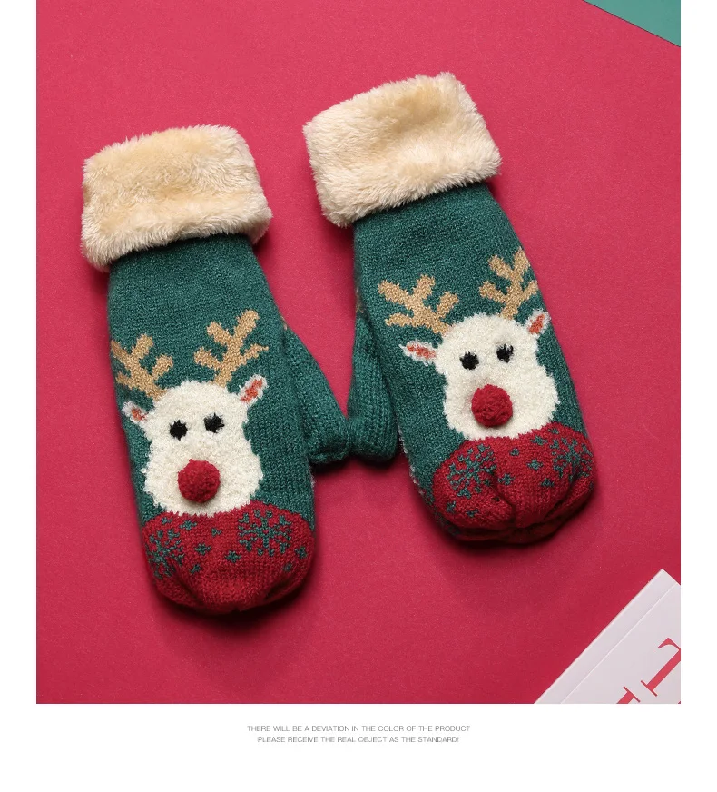 BISONDENIM Girls Christmas Gloves Elk Pattern Ladies Gloves Knitted Fleece Winter Warm Mittens S087