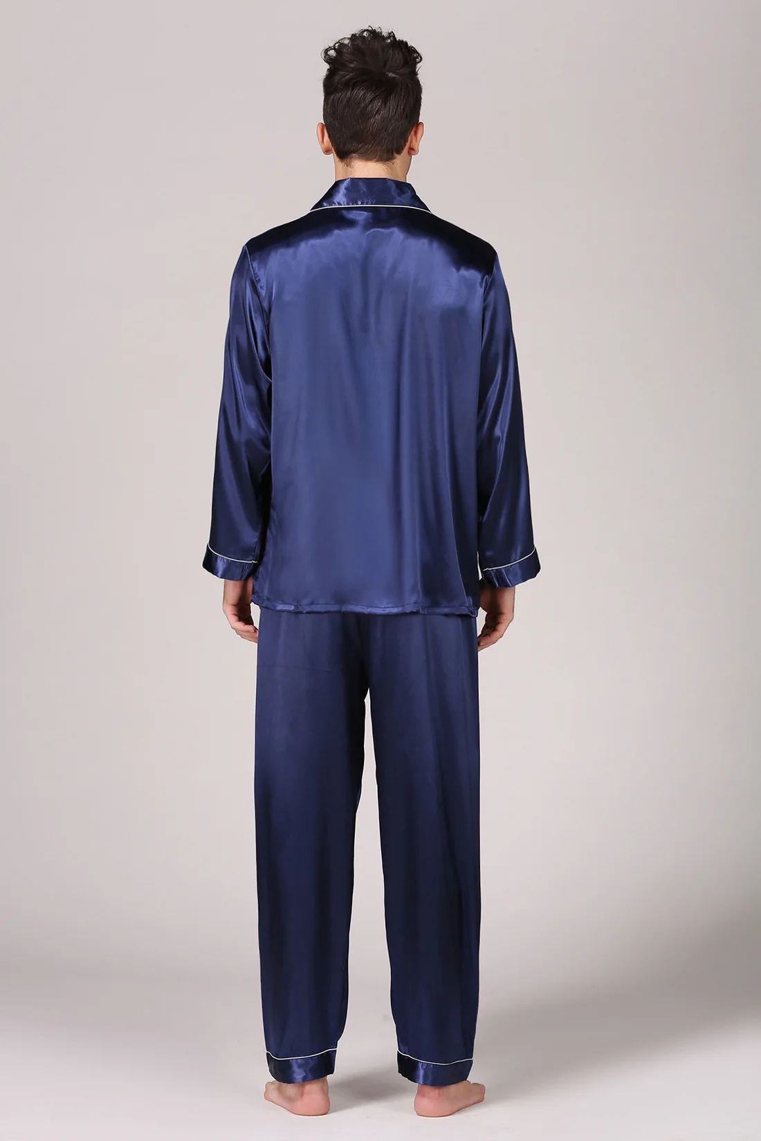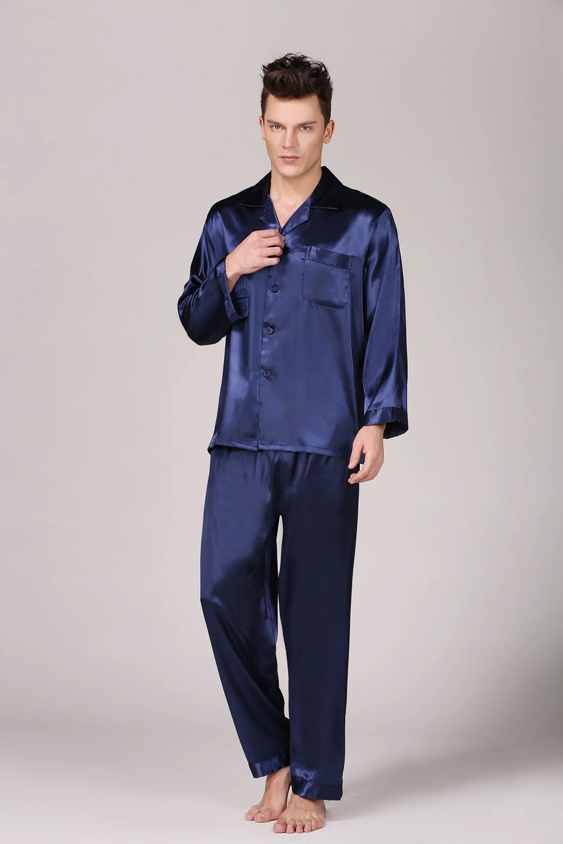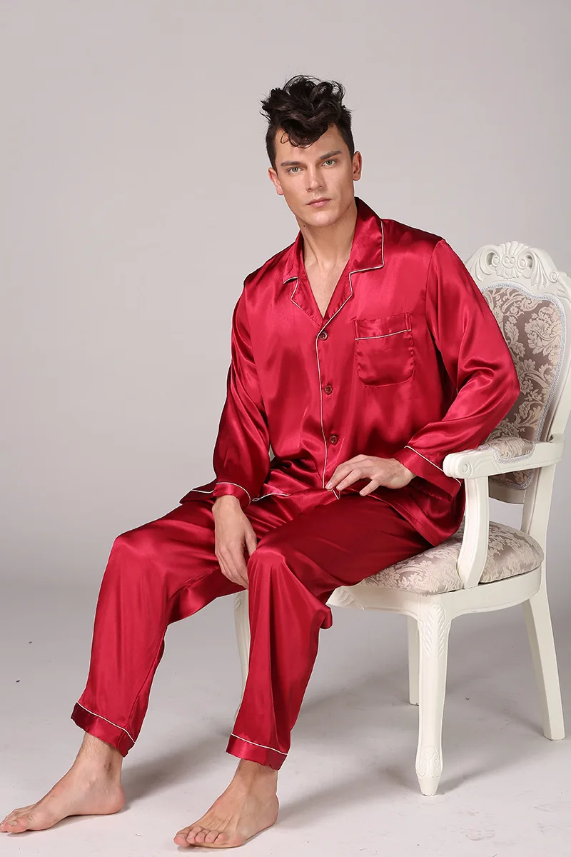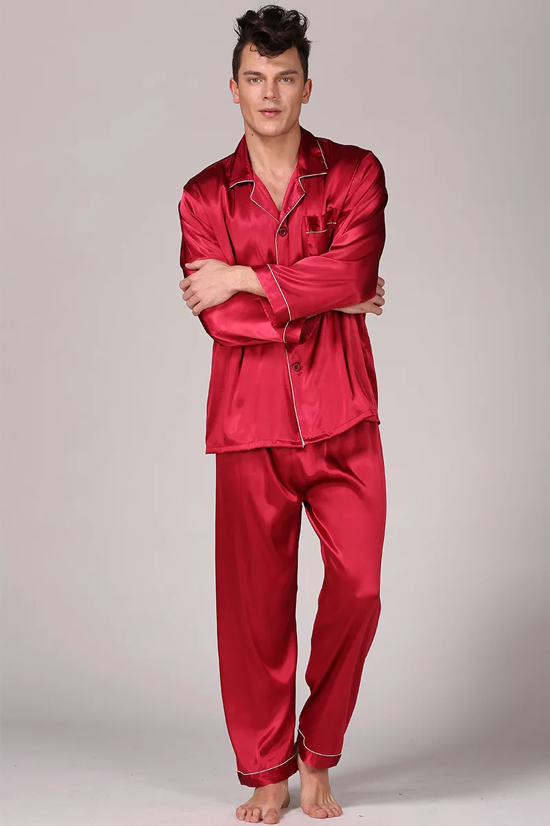 Black Men Pajamas Set Satin 2PCS Sleepwear Shirt&Pants Soft Nightwear Loungewear Casual Pijamas Home Clothes Solid PJS Suit
