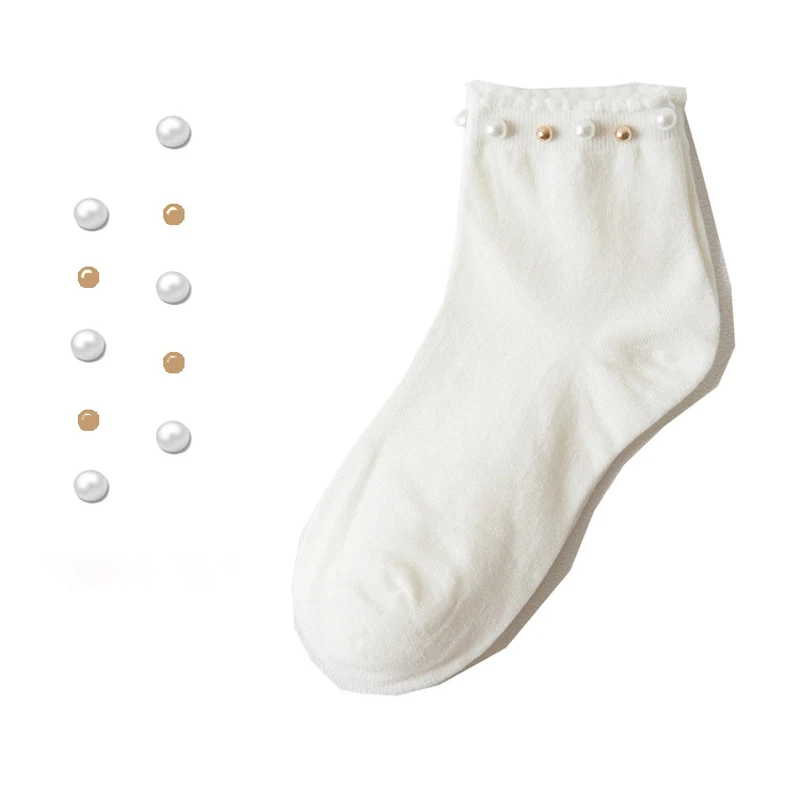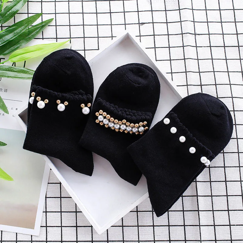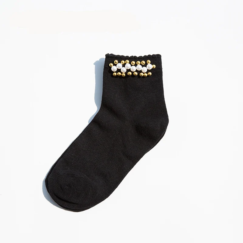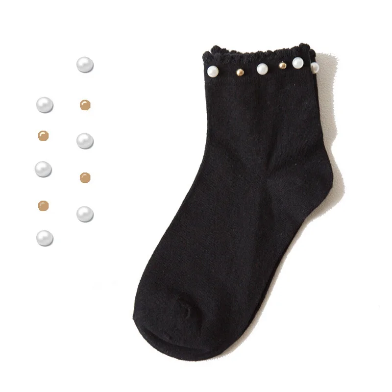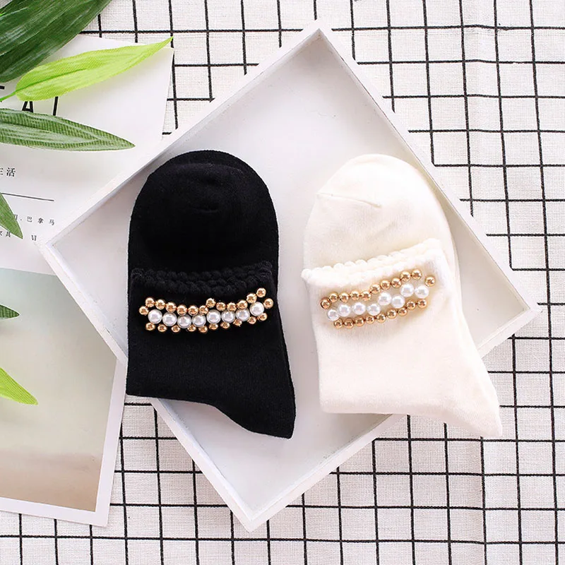 Black/White Korean Reto Pearl Socks Women Elastic Cotton Handmade Meias Creative Socks Harajuku Calcetines Mujer